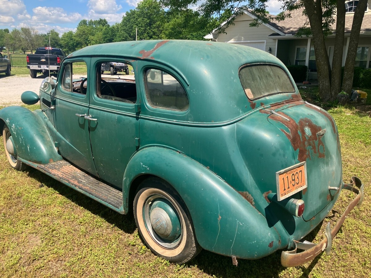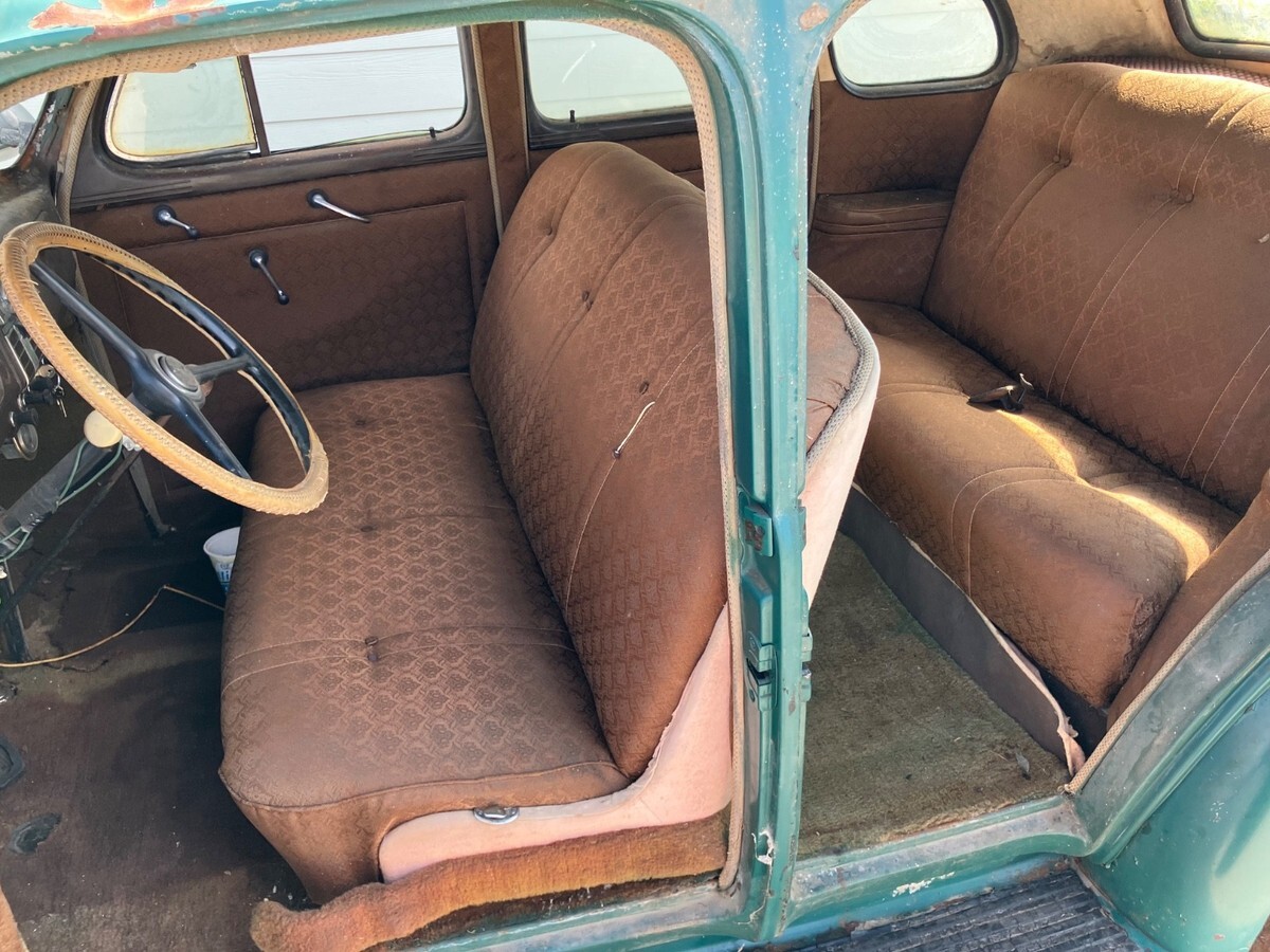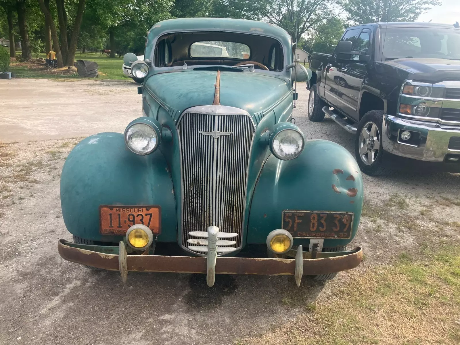 1937 suicide doors Chevy, 3 speed manual, interior is complete and in great condition, 216 original engine that runs great, this car was stored inside since 1979. I pulled it from storage replaced hoses and spark plugs and it started no problems, it is not the original color, was blue, now green and is peeling on one side, there is no rust in this car, just a little surface where paint is peeling, car was painted in California back in the seventies before being put in the collection then stored till a few months ago. I know drive it once a week or so. Put new radial tires on it and it runs great down the road.