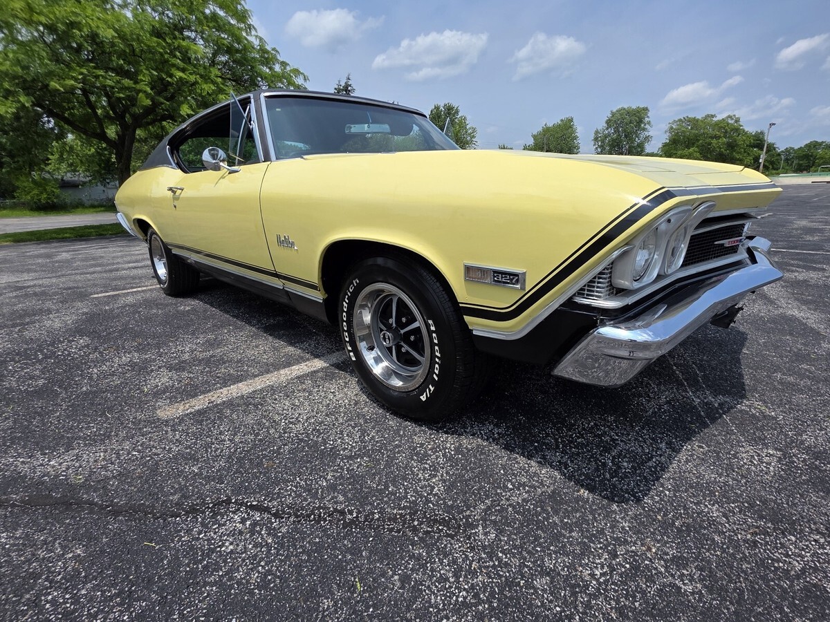 This 1968 Chevrolet Chevelle Coupe is a classic and original vehicle that has been well maintained by its owner for the past 2 years. The yellow color adds a unique and vibrant touch to the vintage car, which is mainly used for car shows. With only 59,000 miles on the odometer, this Chevelle is sure to turn heads and fetch compliments wherever it goes, making it a prized possession for any car enthusiast or collector.
