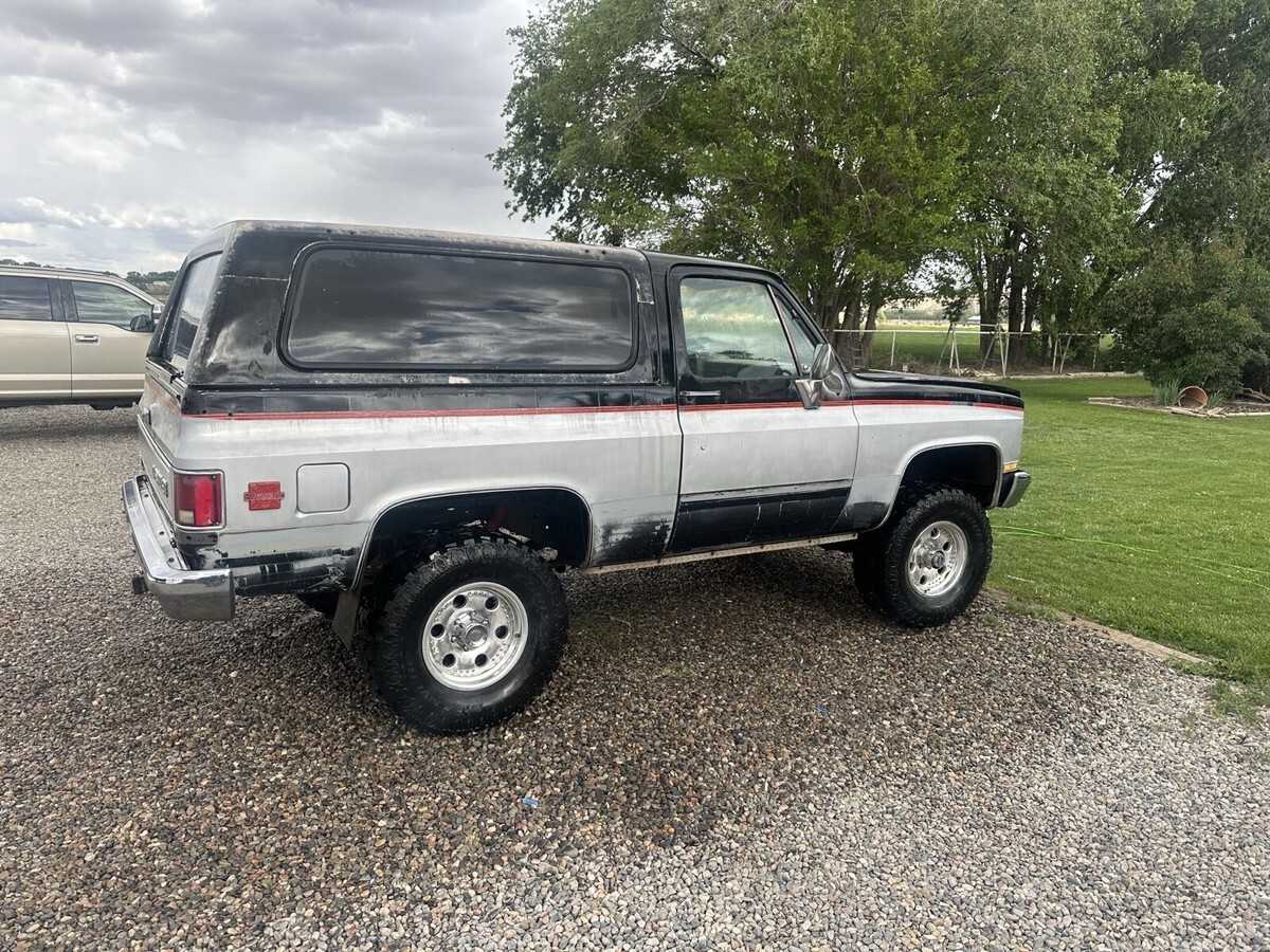 1987 K5 blazer. No rust runs but needs a good tune up. Transmission shifts good. Great builder. TBI Does need love.