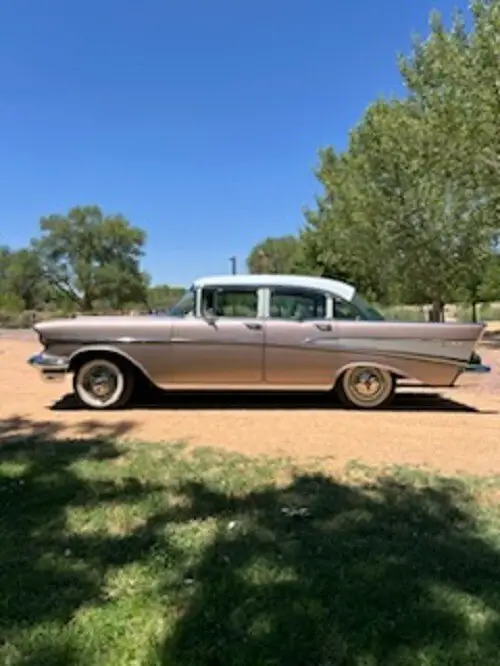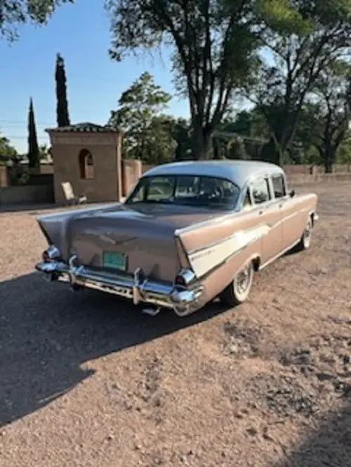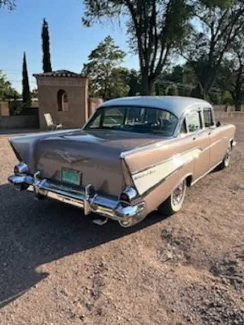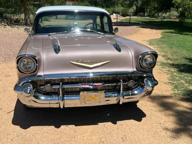 Listed here is a 1957 Chevrolet Bel Air Sedan that has been owned & enjoyed in our family for 18 years. This car is a fully documented frame off restoration to factory specifications by the original owner. The sale includes a detailed photo book of all phases of the restoration process. The car was repainted with the original color Dusk Rose with Ivory Top. The interior was reupholstered with the original fabrics on the headliner and seats in black & gray. This car also proudly displays original Chevrolet emblems and gold trim.This car features power disc brakes that were added. It also has original air conditioning & heating, power steering, tilt steering wheel, automatic 3-speed transmission with over-drive, a 283 cubic inch V-8 engine with Holley 4-Barrel carburetor (jets have been changed to accept unleaded fuel). All these extra options would come with the Bel Air package except the Holley carburetor. Additional accessories that were added are the bow-tie taillights, silver bumper bullet & custom spinner hub caps. Restored and rebuilt engine has 24,785 miles on the odometer. The doors all fit tight and close easily. This car has been driven to many shows and won many awards and trophies. It is dependable enough to be a daily driver. This car looks like new and drives like new. It has been garaged the entire time we have owned it.This beautiful car is located for inspection and pickup in Albuquerque, NM zip code 87114. This car is being sold AS-IS with no expressed warranty or guarantee. After this car is picked up the seller has no liability or responsibility for any damage during pickup or transport. Please arrange for this beautiful car to be picked up within 30 days or less. We will accommodate the buyer and shipper in any way we can to help out on the shipping arrangements. All sales are Final. A $500 deposit is required within 48 hours of the time you have committed to purchase this car. The balance monies owed are due in 7 days. Thank you for viewing our listing. We have been ebay members since 1998 with 100% positive feedback. Please call JJ @ 575-956-8438 to ask any questions you may have.