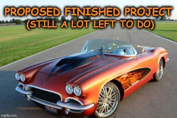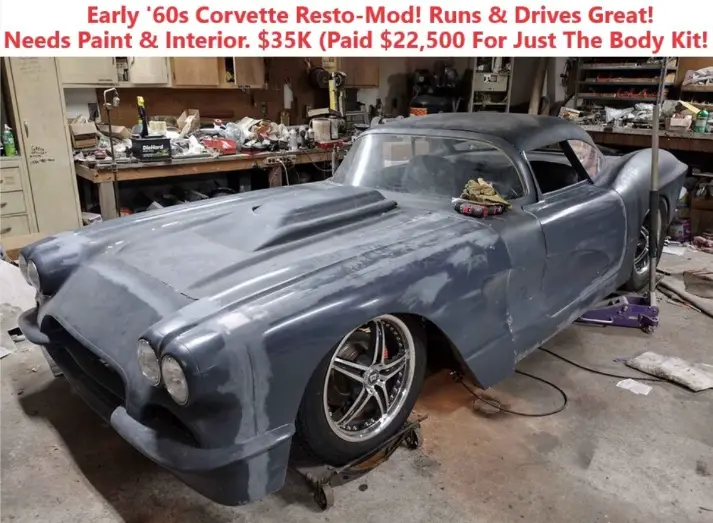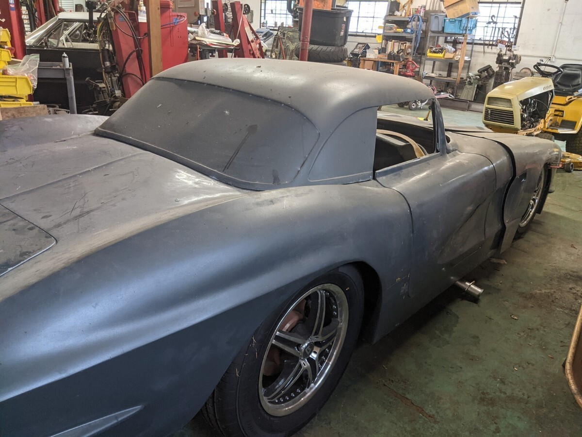 Hi there, my name is Cathy and as many of you know, I 've been scouring the countryside for classic cars and then selling them for folks here on ebay for over 25 years. During this time, I've found new owners for everything from Darrin's to Duesenberg's. Maybe you'll be the new owner of my latest find!Here's an opportunity to own a Corvette resto-mod for a fraction of what they're selling for finished.The owner started with a complete 1-piece fiberglass body from "Custom Image Corvettes." (This cost him over $25,000 with tax and freight.)He then painstakingly modified the body to stretch it a bit in the front.He then went to work custom building the frame, rear-end, special front end, etc. (Hours, and hours of meticulous work.)He purchased a small block engine, and an automatic transmission, and had them professionally rebuilt. He then installed them.The brakes were upgraded, and then new wheels and tires were added.He installed the front windshield, front and rear lights, got it running and driving perfect, and then he became ill.This is where you can take over if you're up to it:There are no bumpers or chrome work included other than what's in the parts pictures.It will need the body prepped for painting. (The body is pretty rough in some places and the tilt front end will need bonnet locks installed. The "hard top" would have to be fashioned with clasps should you ever want to use it.)Then, there's the paint. If you're not a painter, depending on what part of the country you're in, set aside at least $10,000 for a nice paint job. (I've included a picture of what the owner had in mind, however, if you prep the body well enough, maybe you could have it wrapped.)You're going to be starting with a clean slate with respect to the interior. While the dash is there, along with some gauges, you'll need seats, carpeting, and door windows if you plan on having them. An advantage might be that you can mount your seats where you want them. (The owner was going to "shave" the area where the convertible top would normally go under since he's taller and needed a little more room.)While a lot of the hard work has been done, understand that it will take someone with special skills and a bunch more money to complete this car.If you have questions just call or message me and I'll try my best to get them answered for you!Cathy Hanson419-654-3323