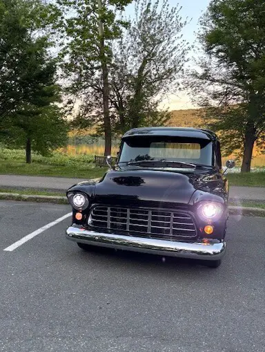 1955 CHEVY 3100 Pickup Pro StreetBurgundy Pearl4 Wheel disc brakesVintage airWeld wheels383 Stroker Motor Supercharger FiTech Fuel injectionBlack walnut bedDakota digital gaugesFord 9 inch rear 4 link coil oversHeidts front end suspensionPower steering brakesElectric wipersLED lightsAM/FM Radio and CD playerThis 1955 Chevrolet Pro Street is a classic pickup truck with a tan interior and PPG burgundy pearl exterior. This vintage vehicle features an 8-cylinder engine with 2333 miles on it (since rebuilt) running on gasoline with automatic transmission. It comes with various modern features like AM/FM stereo, CD player, air conditioning, and power steering, making it a unique and stylish addition to any collector's inventory. A clean title and a 3.6L engine size add to the appeal of this iconic Chevrolet model from 1955.