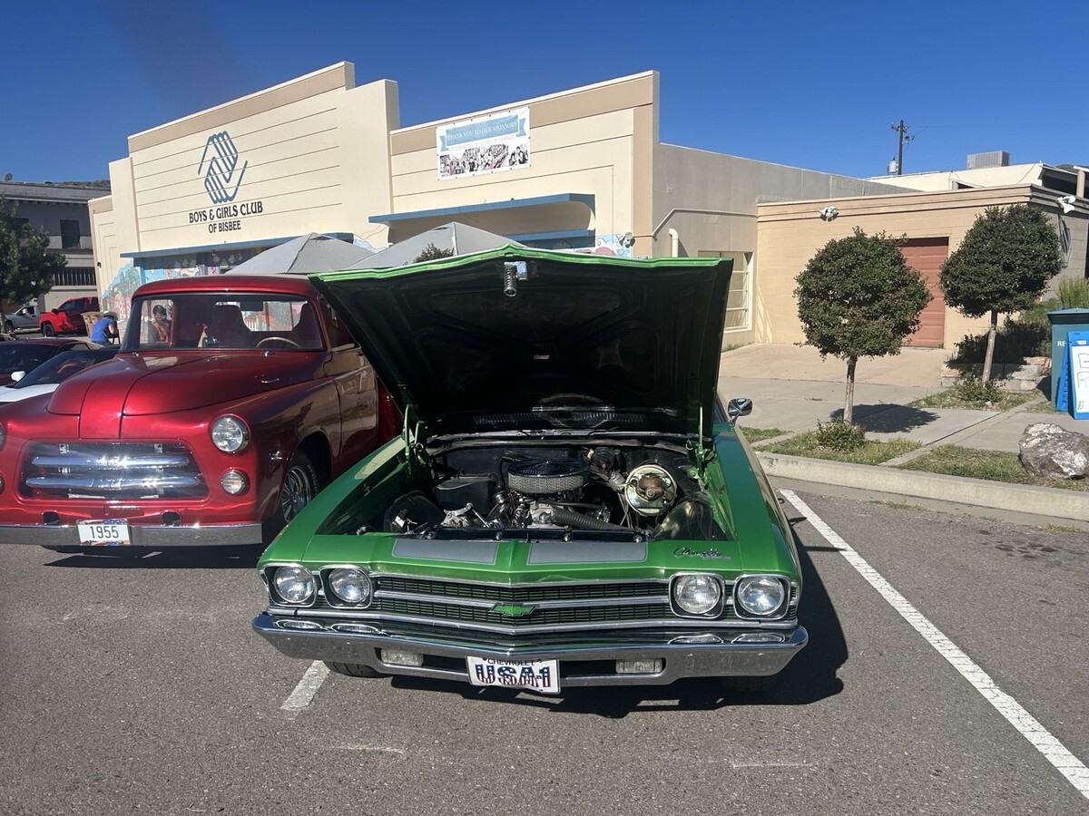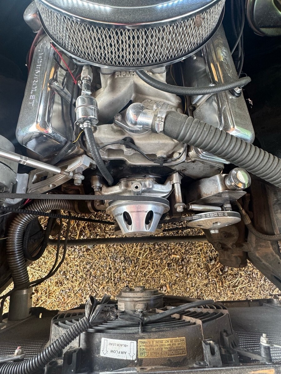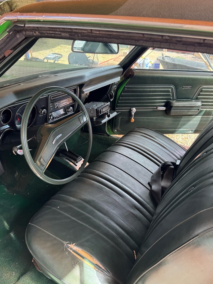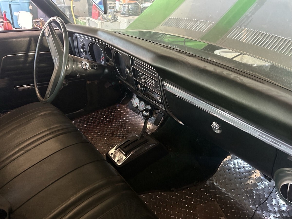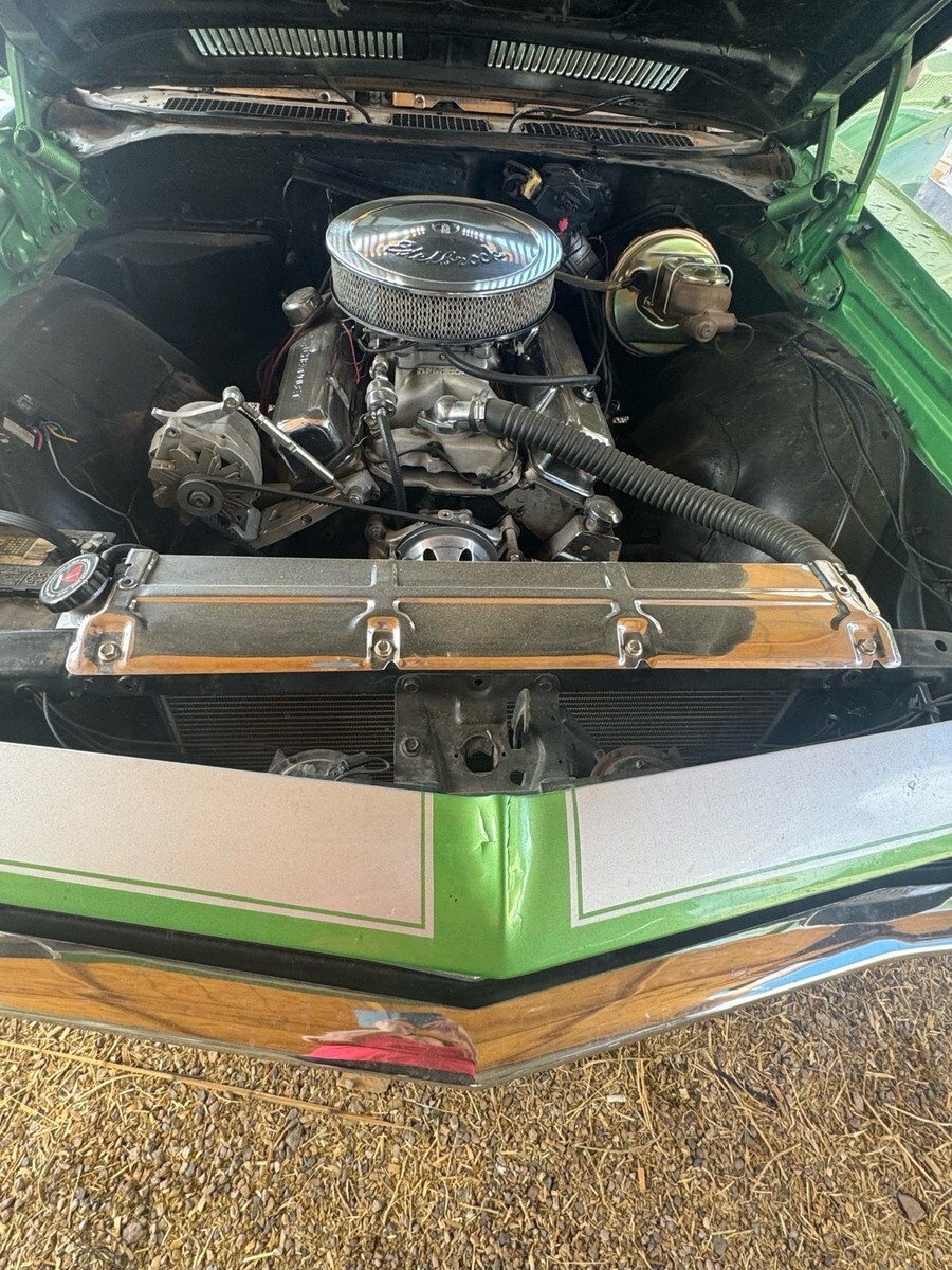 Original green interior. Newer rear Mickey Thompson tires, 4-Wheel Disc Brakes in the front, shoe brakes in the back, Beautiful Chrome & Stainless Trim Throughout, Nice Smooth Vinyl Top, Power Steering, Power Brakes, Beautiful Clean Interior, drivers seat has a tear in the seam, Clean Dash & Door Panels. Strong Built 383 Stroker - V8 Engine, Smooth Shifting Automatic Transmission, Demon Double Pumper Carb, Aluminum High Rise Intake, HEI Electronic Ignition, Polished Headers, Chrome Master Brake Cylinder, Brake Proportioning Valve, Aluminum 5-Core Radiator, Performance Electric Fan, Polished Aluminum Pulleys & Brackets, Chrome Timing Chain Cover, Chrome Air Cleaner & Valve Covers, Newer 2 1/2" Stainless Dual Exhaust Front To Back, FlowMaster Mufflers, 4-Link Rear Suspension, Front Sway Bar, Traction Bars, mechanical Fuel Pump, & Original Solid Floors & Frame. There are a chips on the exterior. Clear Arizona Title.