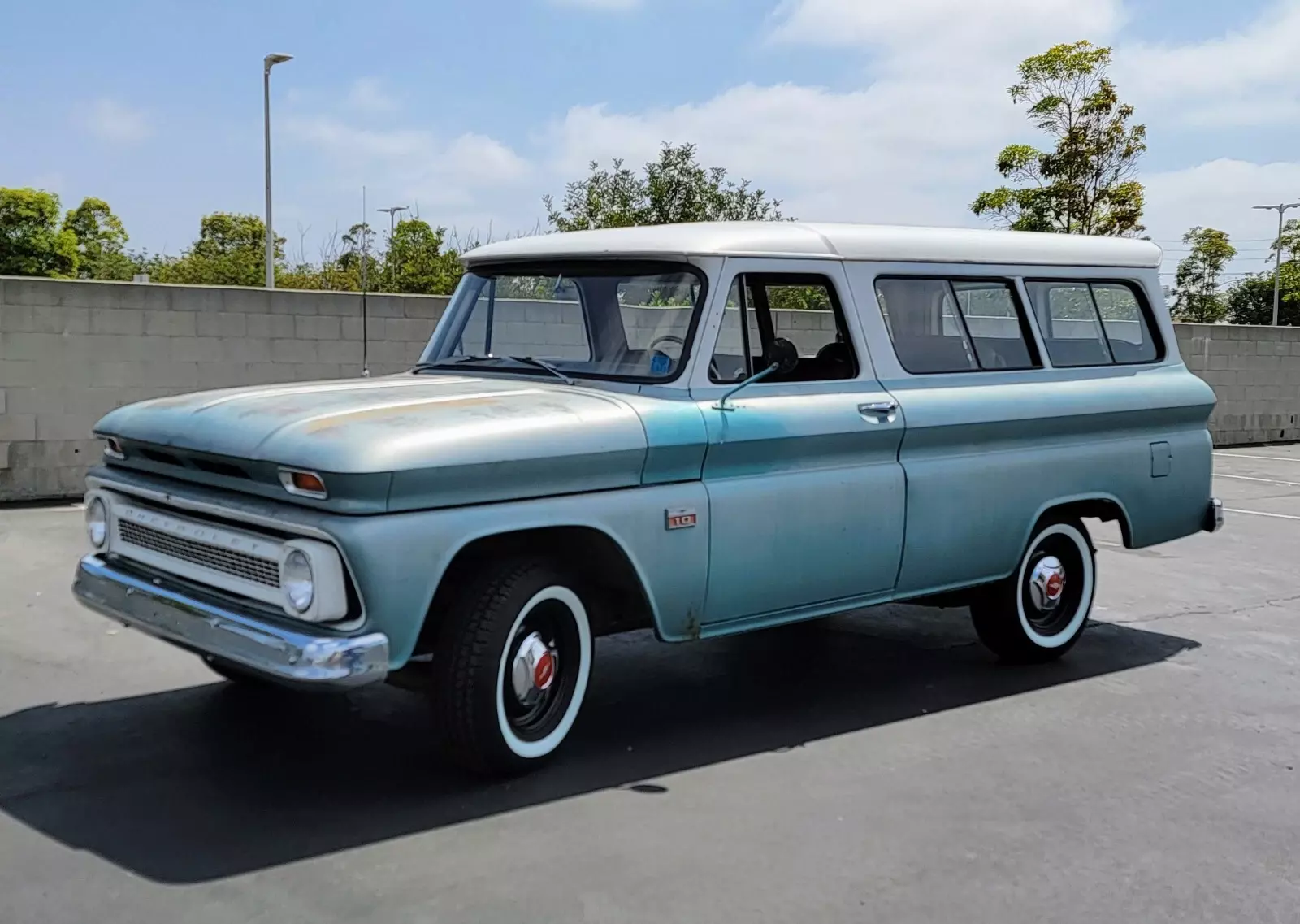 1966 Chevrolet Suburban Carryall, C10I have owned this '66 for about 12 years I am the second owner. It has been kept parked for 12 years in my shop. It is all original with the exception of the seats that have been re-covered and a minor body repair to the drivers door below the door mirror. The only rust is to both front fenders lower section (which is not bad, but that's only my opinion). It still sports the original two tone paint which is faded and patina. The body overall inside and out is in great original condition. The engine is a 292 which turns over, but I have never ran it or drove it and it has a 4 speed transmission. I have a clean California title in my name. Please feel free to contact my for any more information.