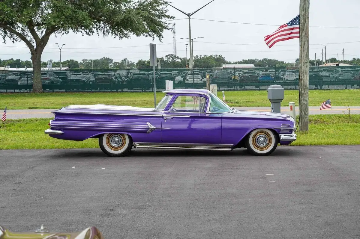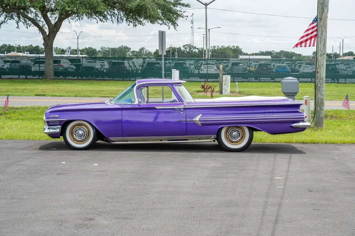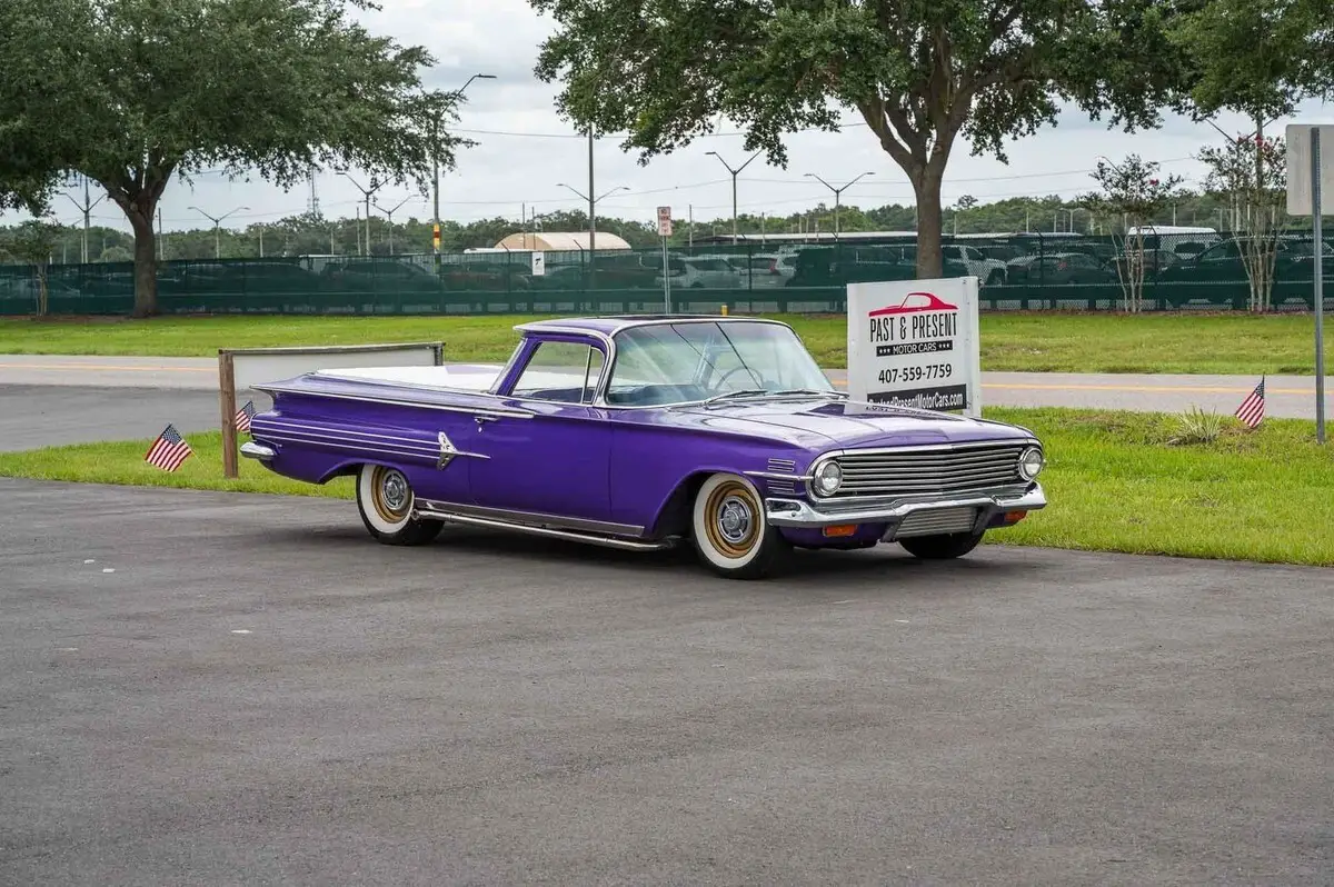 1960 Chevrolet El Camino – Custom Purple Classic with Style and Attitude This custom 1960 Chevrolet El Camino stands out from the crowd with its vibrant custom purple paint and matching custom purple bucket seats. It’s powered by a strong small block Chevrolet V8 engine paired with an automatic transmission and features a unique custom front grille with dual headlights instead of the original quad setup. Additional highlights include wide white wall tires with dog dish hubcaps, side pipe exhaust, power front disc brakes, original manifolds, and a custom bed cover. Inside, a custom center console and shifter complete the retro-meets-modern vibe. This El Camino runs and drives well and gets attention wherever it goes. A true one-of-a-kind early ‘60s custom build. While we do our best to provide the highest quality muscle cars with an honest and reliable description and realize the importance of transparency when selling vehicles. That being said, we have not built, modified, changed or personally owned this vehicle. Whether this vehicle is consigned or owned by Past & Present Motor Cars we do not know the vehicles complete history since new. We want to be clear and try to answer any questions our customers might have prior to purchasing. Additionally, we not only welcome but we encourage 3rd party independent inspections. Please inquire prior to purchase to make sure the advertised vehicle has not already been sold. We list our vehicles on multiple websites and a vehicle can sell at any time. If a customer chooses to purchase sight unseen (many of our customers choose this option) the customer accepts the vehicle AS IS and WHERE IS and understands we cannot address concerns after purchase. For this reason, it's important all concerns are addressed prior to purchase. We make every effort to present accurate and reliable information, but use of this information is voluntary, and should only be deemed reliable after an independent review of its accuracy, completeness, and timeliness. It is the sole responsibility of the customer to verify the existence of options, accessories and the vehicle condition before time of sale. Financing is Available with low rates and Vehicle Shipping is available from our Showroom to your Garage. A Classic Car Warranty is Available for Purchase from a 3rd Party. Please speak to our Sales Associate or Company Representative for more information. Our team is working and available anytime by Phone or Text for your convenience at 407-559-7759. Thank you for your interest!