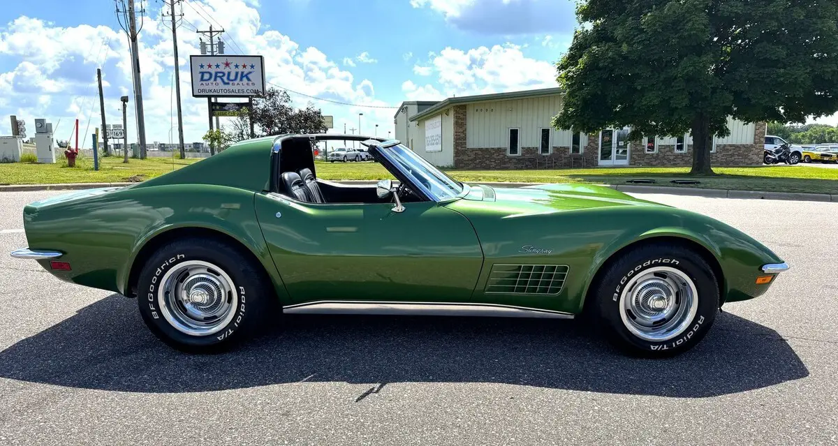 1971 Chevrolet Corvette Stingray. Powered with a 350 V8 engine and 4 speed manual transmission. Miles are shown at only 67,265 on the odometer. This is a mostly original car, but the engine was changed out some years ago. Very nice body and paint. Great chrome on the car! The interior is original and in excellent condition. The headlamps work up and down great. Wipers work, blower motor works, radio works. The removable T Top are very nice and easy to remove. Great tires and rims. What a beautiful muscle car that will turn heads wherever you go! Clean title. Make this unbeatable deal yours before its gone.Look at all the pictures and videos on our website. www.DrukAutoSales.comSHIPPING AVAILABLE * FINANCING AVAILABLE * Warranties Available **FaceTime walk around are available!You can put a deposit on this car on our websiteInspectors Welcome to Come on your behalf if not able to make it in.To Inquire about this car, please call us at : 763-355-5511 or email us at DrukAuto@gmail.comLOOKING TO SELL A CAR? WE TAKE CONSIGNMENTS! SEE FULL INVENTORY at www.DRUKAUTOSALES.comSubscribe to our YouTube Channel to get the alerts of the latest vehicles www.youtube.com/user/DrukAutoDruk Auto Sales8000 Highway 10 NWRamsey, MN 55303763-355-5511www.DrukAutoSales.comJust 30 minutes from Minneapolis / St. Paul, Minnesota.Vin # 1943715115089DISCLAIMER: This site and all advertising information may be updated without notice whenever new information is obtained and may contain mistakes and inaccuracies. Information is provided to the best of our knowledge about the vehicles, and we make no warranty or representation regarding the accuracy, truth, or reliability of such information. Each potential purchaser understands it is their responsibility personally or through a third-party (not Druk Auto, LLC.) to inspect any vehicle for potential purchase, and is relying solely on their own inspection, knowledge and judgment about any vehicle purchased. It is the responsibility of the buyer to either inspect the vehicle personally or via a 3rd party, to ensure satisfaction to the condition and value, prior to purchase. We cannot be responsible for any errors, omissions, or inaccuracies contained in information provided by third parties. Druk Auto, LLC. is not an expert in the construction, engineering, finishes, materials, and componentry of every single vehicle we have for sale or sold. Druk Auto, LLC. strives to perform extensive visual inspections on all vehicles we represent but we do not disassemble vehicles or components for inspection purposes and therefore it is always possible that there is hidden damage that is not readily apparent. All vehicles are sold AS-IS with no warranties expressed or implied. Aftermarket warranties are available one certain Make, Model, Years.