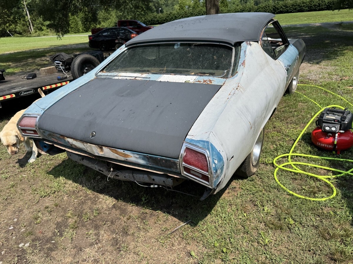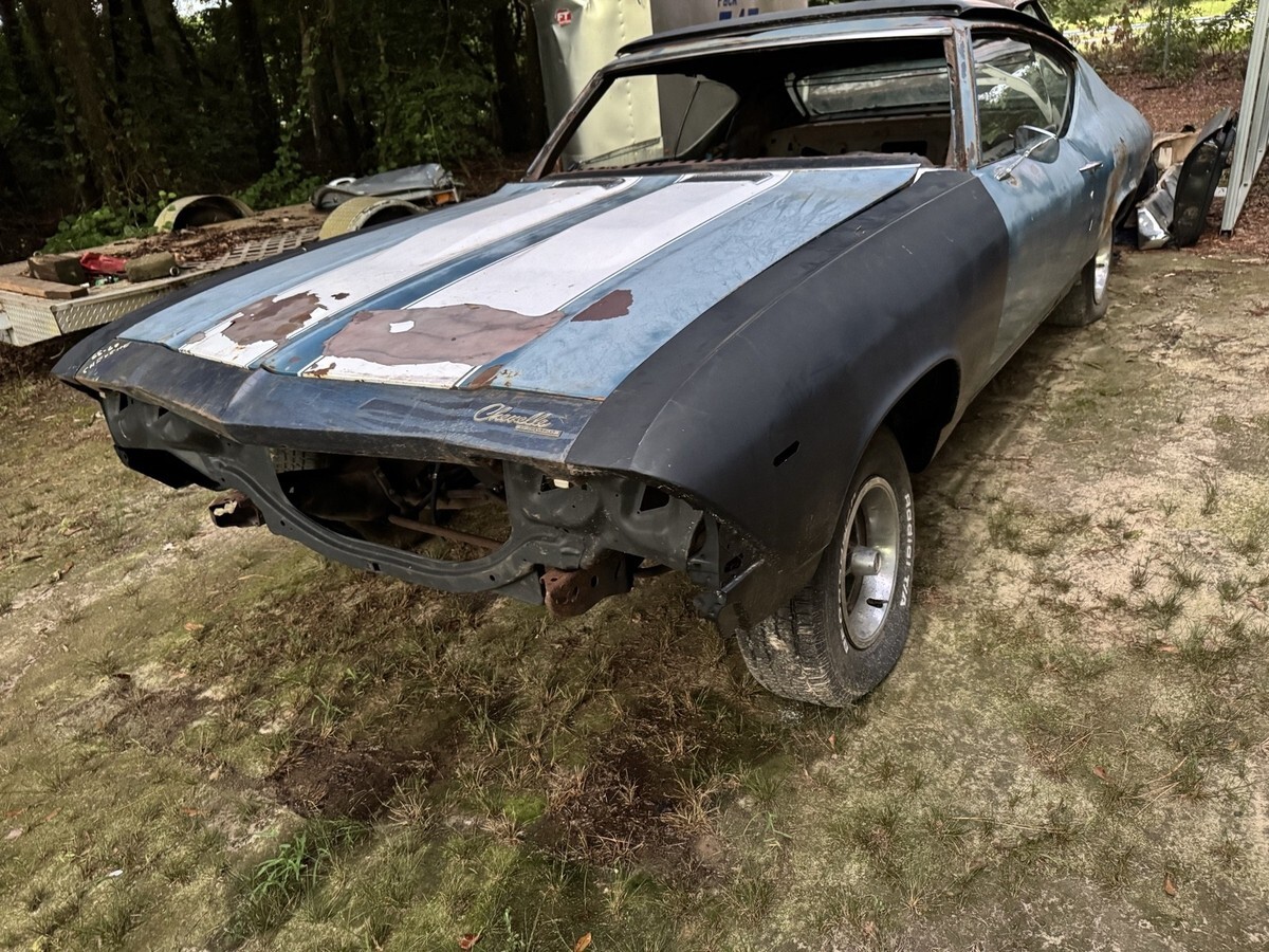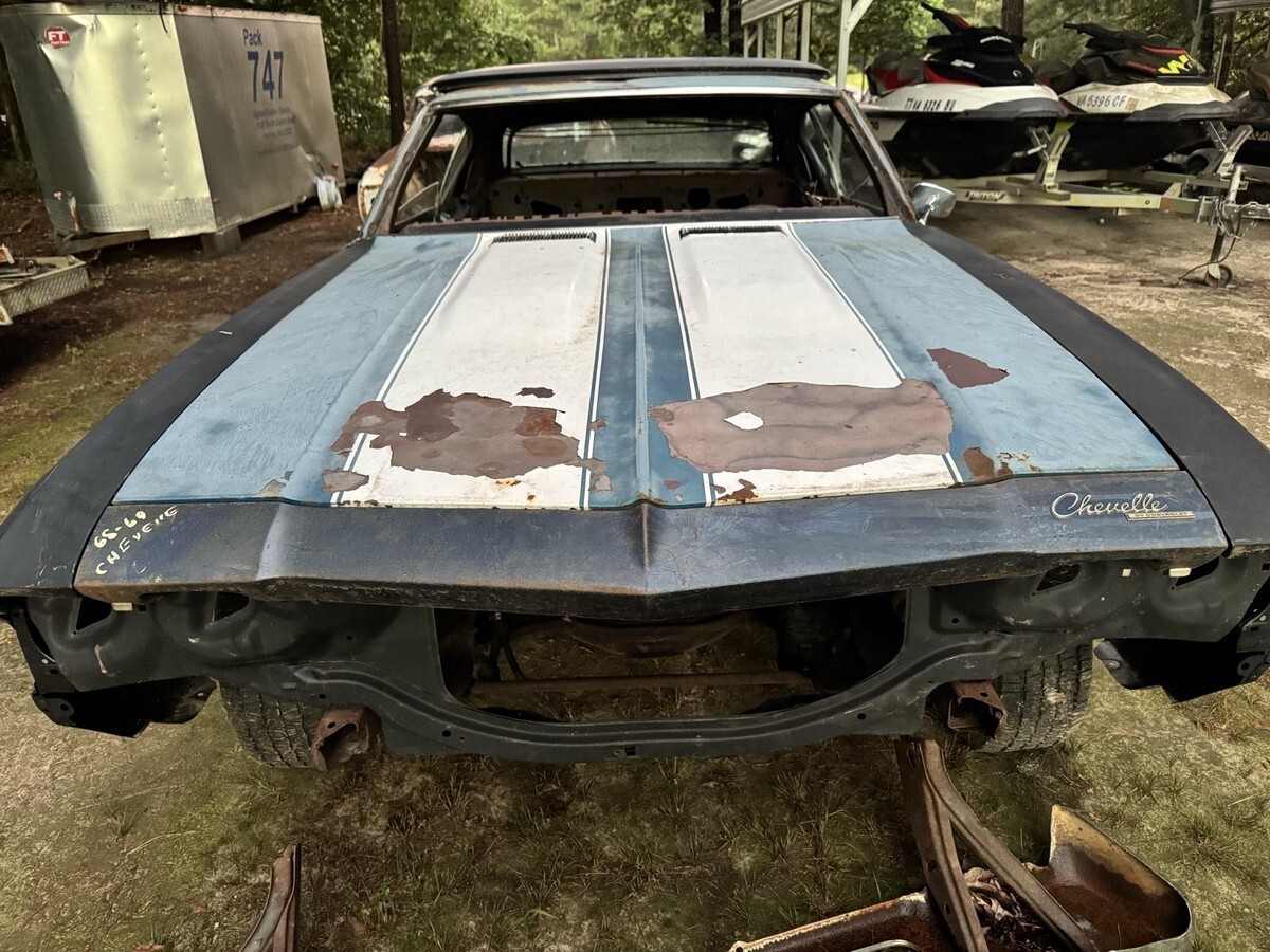 Chevelle is in decent shape. I have a lot of extra parts that come with the car it will need full restoration. It is a factory super sport car. It originally came with bench seat for speed, but I have purchased some nice bucket seats that go with the car the quarter panels are from a 68 but they will work . I have a new passenger door and a roof skin that goes with the car. I have all the stainless and miscellaneous parts and even extra parts that go with the car, the car has a factory tech dash.