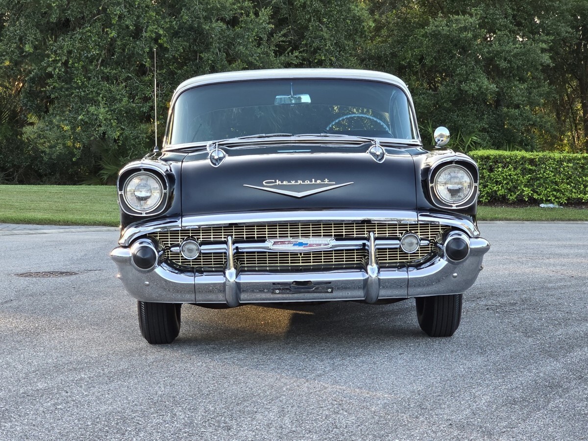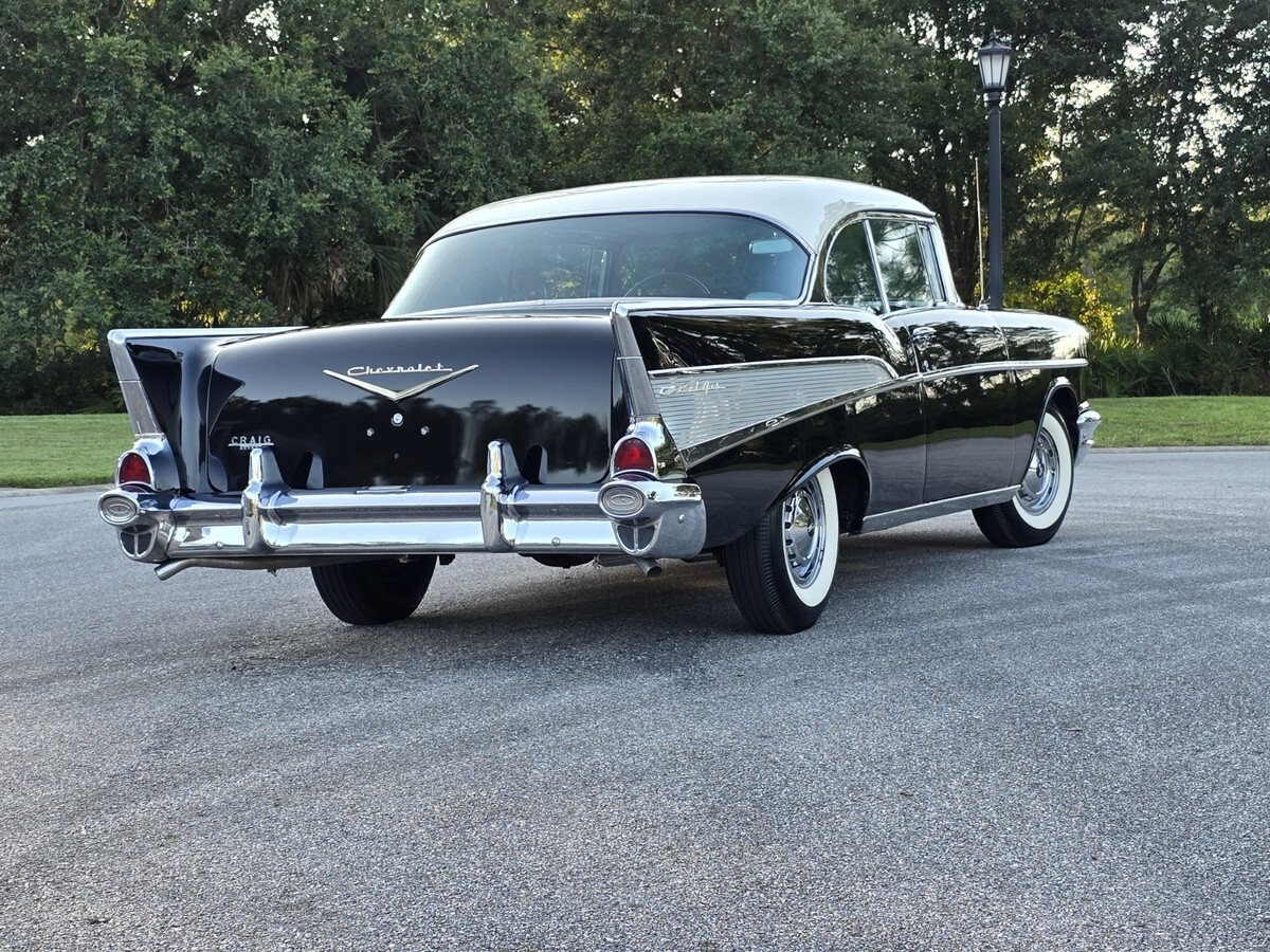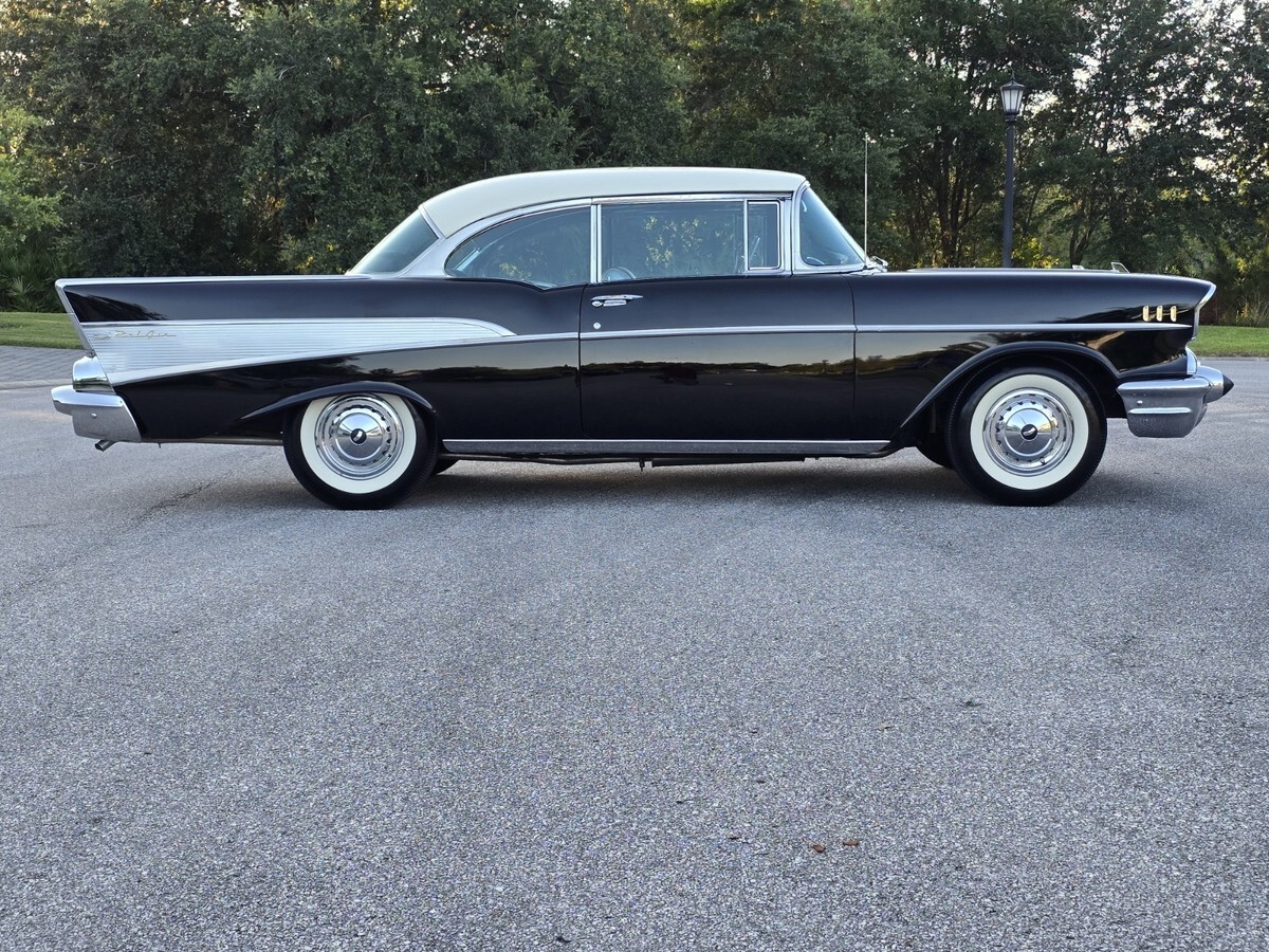 1957 Chevy Belair 2dr Hardtop : onyx Black / Indian Ivory . 283 Powerpac, Automati, Power steering and brake, AM Radi, Electric Wiper, Bumper Guard, Tinted Glas, 45,000 mile, Highly Original Condition including Chrom, Stainles, Glass and interior . All 4 original Spiral shocks are present . Sold new at Craig Chevrolet in Arvada CO . Recent maintenance includes new US Royal Bias tire, full brake overhau, exhaust and battery . Everything is in working order minus the clock . I have personally driven this Belair over 100 miles as it run, drives and performs excellent . A no disappointment car for the purist . Serious inquiries only . I can be reached at 845 453 0442 or kenpascoe@verizon.net