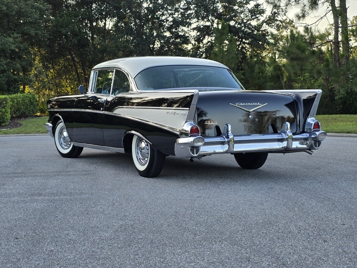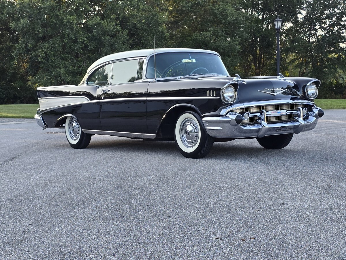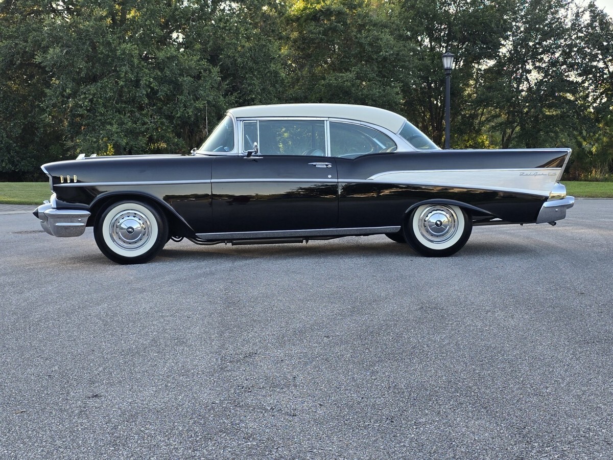 1957 Chevy Belair 2dr Hardtop : onyx Black / Indian Ivory . 283 Powerpac, Automati, Power steering and brake, AM Radi, Electric Wiper, Bumper Guard, Tinted Glas, 45,000 mile, Highly Original Condition including Chrom, Stainles, Glass and interior . All 4 original Spiral shocks are present . Sold new at Craig Chevrolet in Arvada CO . Recent maintenance includes new US Royal Bias tire, full brake overhau, exhaust and battery . Everything is in working order minus the clock . I have personally driven this Belair over 100 miles as it run, drives and performs excellent . A no disappointment car for the purist . Serious inquiries only . I can be reached at 845 453 0442 or kenpascoe@verizon.net