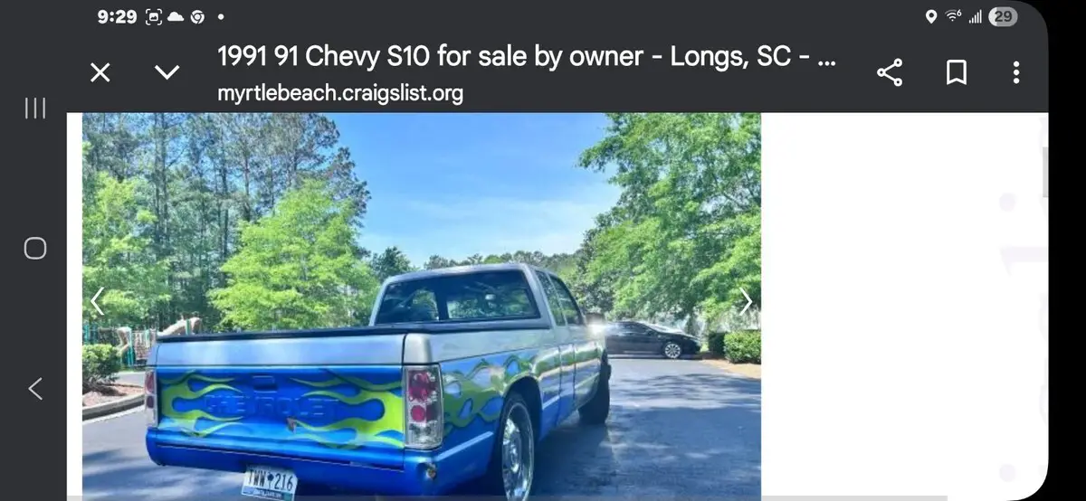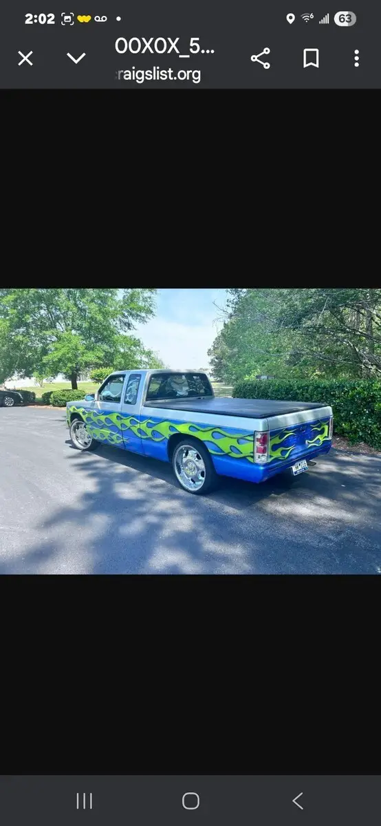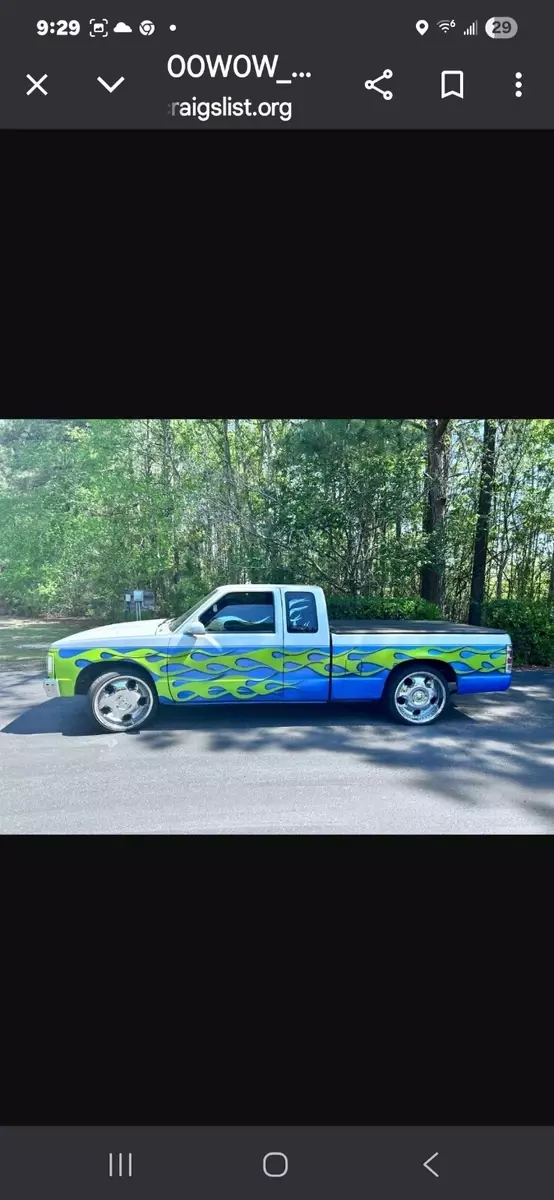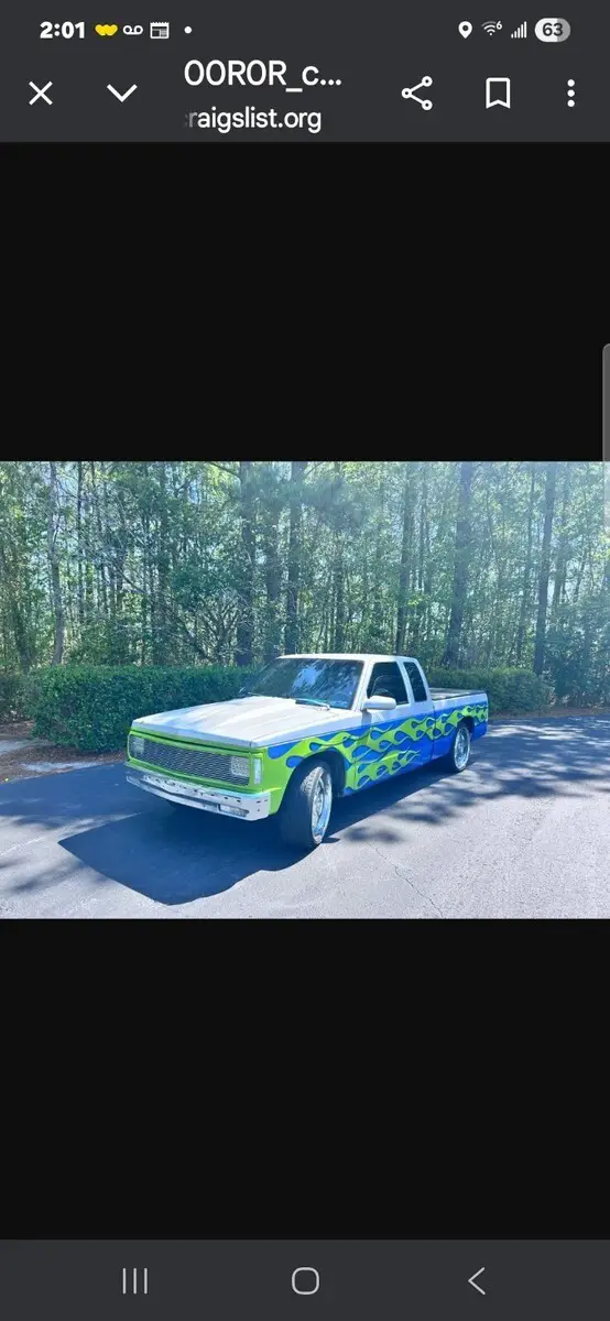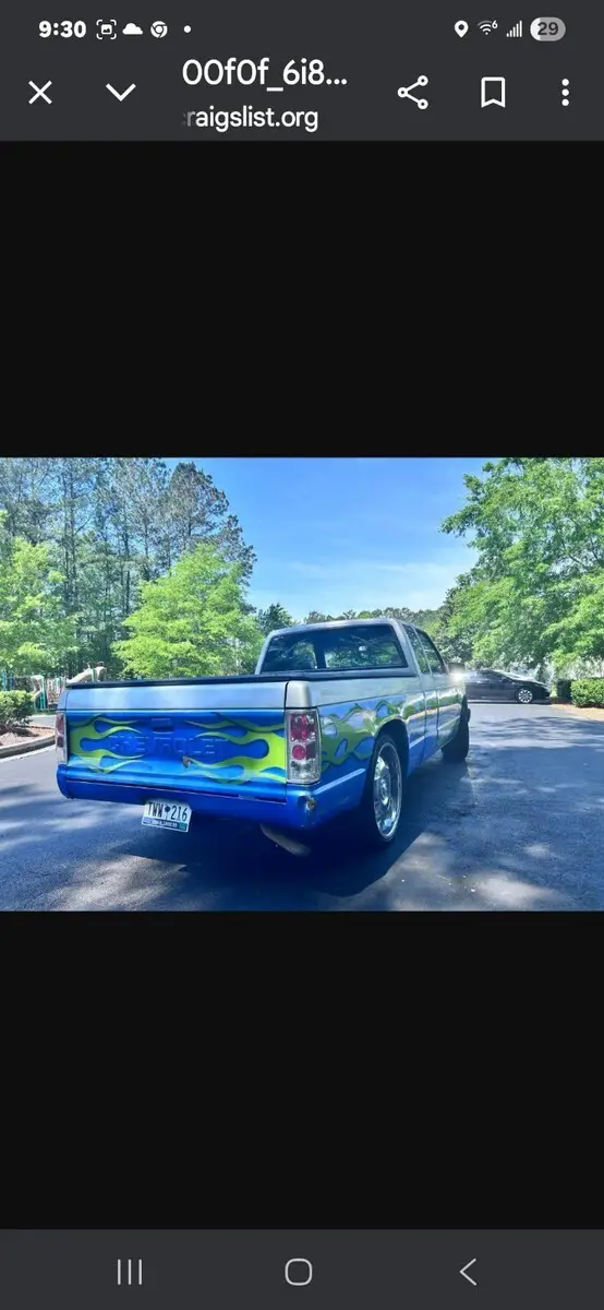 This One of a kind 1991 Chevy S-10 Extended Cab Pickup Truck is automatic 4.3 V6 lowered with new under frame, interior new upholstery, execllent sound system, complete extensive tune up, new head lamps, customized flame with metallic blue paint. The truck runs and drives everyday. No problems with the engine nor transmission. Due to it's age and some dings and other stipulated issues it is being sold as is. Currently, the air & heat do not work nor the odometer. I have a clean clear title. With odometer not working it appears that there is an issue with the title in the listing and prior owner misplaced title and upon ordering a new title it arrived as rebuilt due to it's age. Please see report. Buyer will need to arrange transportation and delivery.