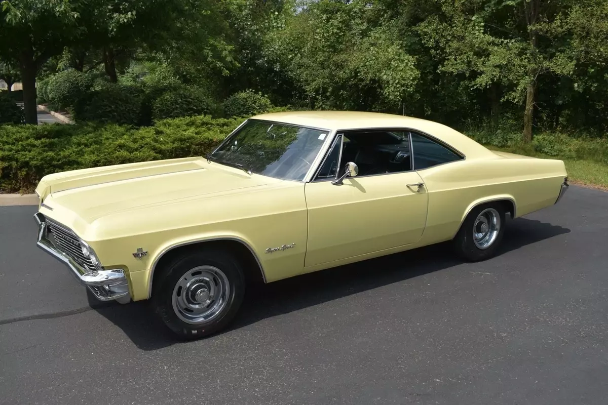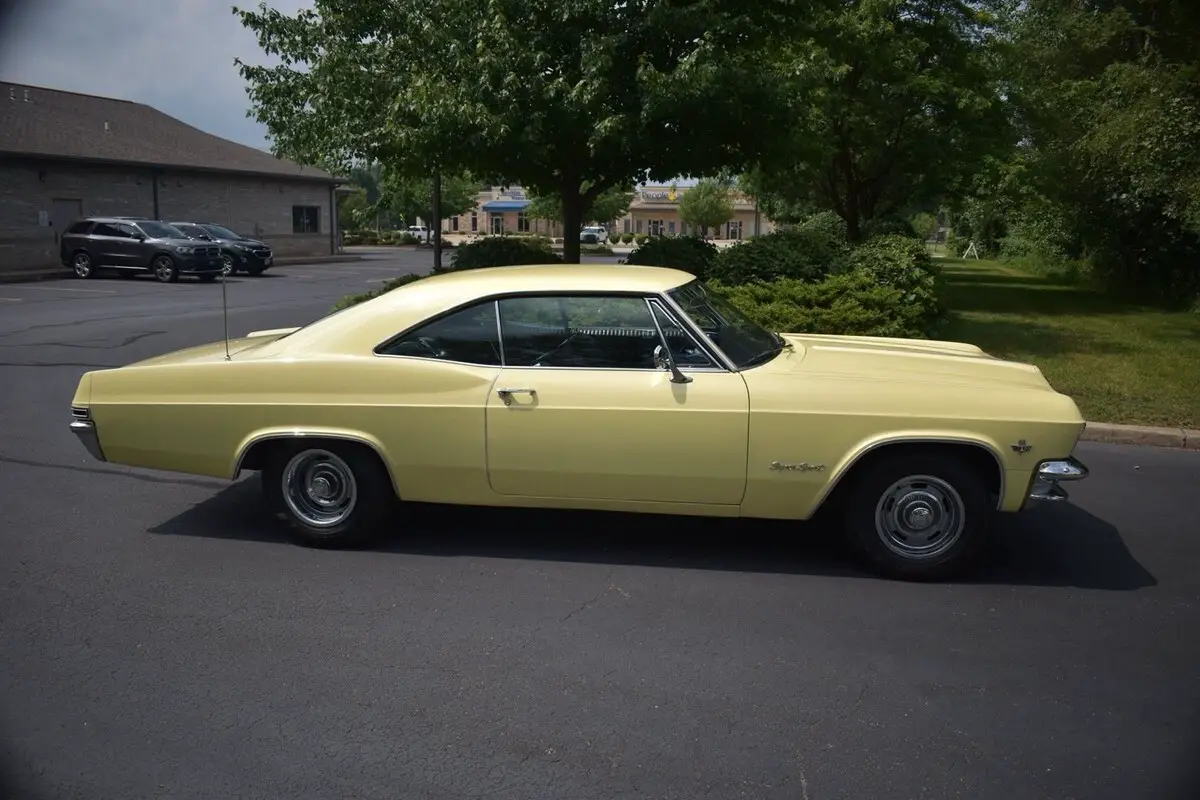 This 1965 Impala SS is an excellent example of a unique one year only model year. This Impala is a true 166 vin-coded super sport with just over 46,000 actual miles. This great Impala SS began its life with a 327 cubic inch small block V8 but was replaced with a correct, date-coded 409 cubic inch V8. The 409 was rebuilt and modified by Bussard Automotive & Performance Specialties in Warsaw, IN. During the build, the 409 received a 4" forged, stroker crankshaft and was bored .030" over, bring the total displacement up to 477 cubic inches. The 477 cubic inch V8 was further upgraded receiving: forged Eagle I-beam rods, forged pistons with chromoly rings, hydraulic Comp Cam camshaft, Crane roller rockers, MSD distributor, Edelbrock Performer RPM heads, Edelbrock Victor water pump, Edelbrock Performer RPM intake, and dual 500cfm Edelbrock carburetors. Backing the very powerful, 477 cubic inch V8 is a rebuilt Turbo Hydramatic 350, 3-speed automatic transmission with a 2200 rpm stall and a mild shift kit. Both the engine and transmission perform excellent with no issues and a complete build list and receipts for the built are available upon request. The factory correct, Crocus Yellow exterior shines excellent and is in very nice condition with only minor defects and age present in the older paint. The Crocus Yellow exterior is complimented nicely by the correct SS trim, "409" fender badges and a set of GM Rally wheels wrapped in Kumho Solus tires. The Black vinyl interior is in excellent condition with minimal defects to note. This great, Impala SS is nicely optioned with features such as: power steering, power front disc brakes, factory air-conditioning, column-mounted tachometer, center console, GM tri-volume horn, AM/FM Pioneer stereo with Aux, and variable speed wipers. You will not want to miss out on this excellent and well-built example of a 1965 Impala SS. Additional work has subsequently been professionally done by Hotrod Hegarty in Gardnerville, Nv. including an aluminum radiator with dual electri fans, new fuel tank, MSD-6A box, upgraded front dual cylinder disc brakes, and much more. A one of it’s kind beauty.