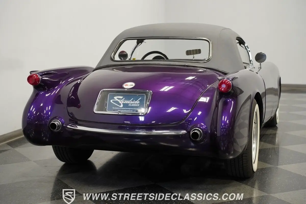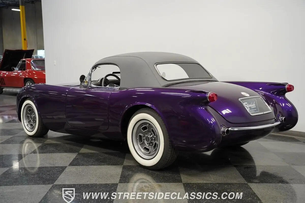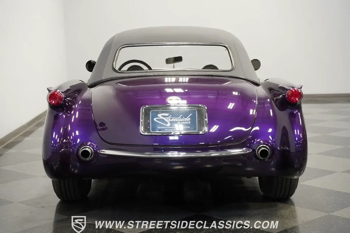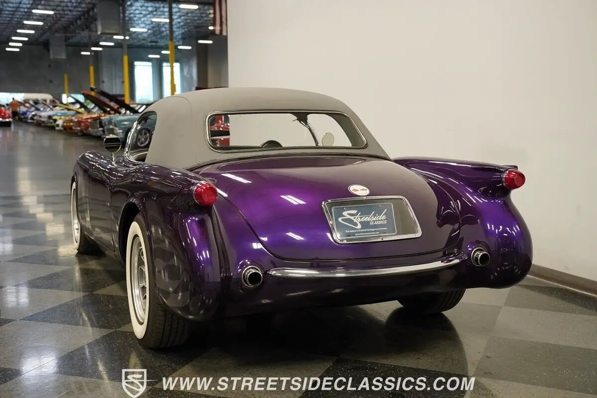 American sports car legacy comes alive in this 1953 Chevrolet Corvette Replica finished in vibrant purple. The fiberglass body captures the flowing lines and elegant proportions that made the original Corvette legendary. Vision aluminum wheels wrapped in 215/70R15 tires with wide white rings provide both classic style and modern performance. Chrome dual mirrors and distinctive eyelids over the headlights create perfect contrast against the purple paintwork. The custom hood with flame cutouts reveals the triple carb setup, giving this roadster a unique personality while maintaining those iconic Corvette design cues that have fascinated enthusiasts for generations.