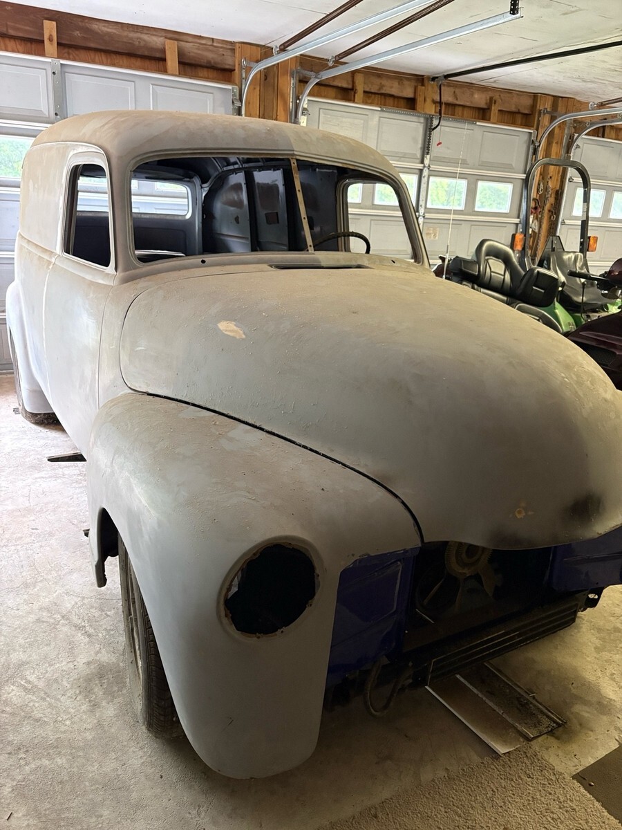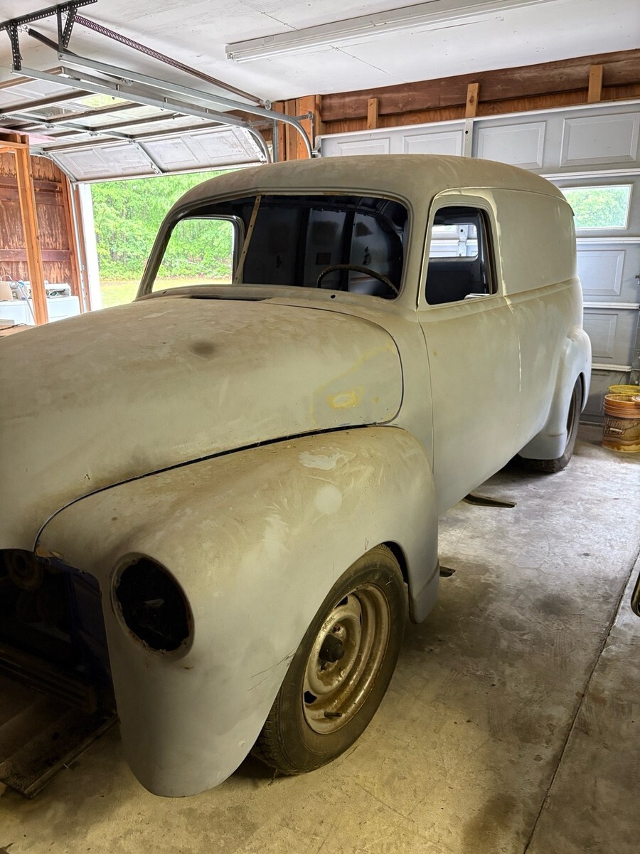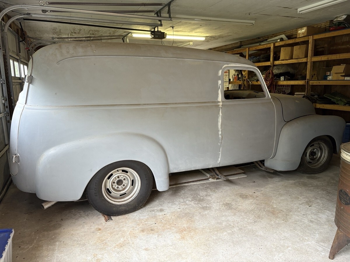 3100 Panel Truck. Subframed with a 1981 z-28 front end. Engine is a warmed up 350 from a 1970 Chevelle. Turbo 400 transmission, 10 bolt posi rear that was freshened up, all new brakes installed and rear installed in truck. Custom made driveshaft. I have all new glass for truck, all new rubber seals for reassembly. I also have electric wiper assm. All parts and pieces are included. Brakes are done with “in the frame” booster master cylinder to keep firewall clean, exhaust was custom built and is done with twin flow masters. Trans cooler installed. Engine has not run in a long time. Fuel tank is installed, custom made radiator shield, Truck has been smoothed. I have owned the truck for 35 years. Body was striped, frame off. Front end all rebuilt,the body is real close to paint. It has been sitting a long time and I know that I will not finish it. There is a lot of money sitting there and I just have to let it go. 609-335-6683. I have driven the truck with a wire to the carb sitting on a milk crate, probably 30 years ago.