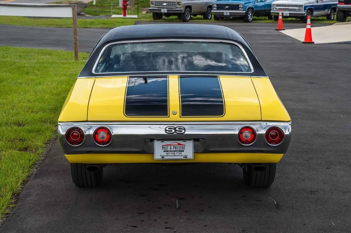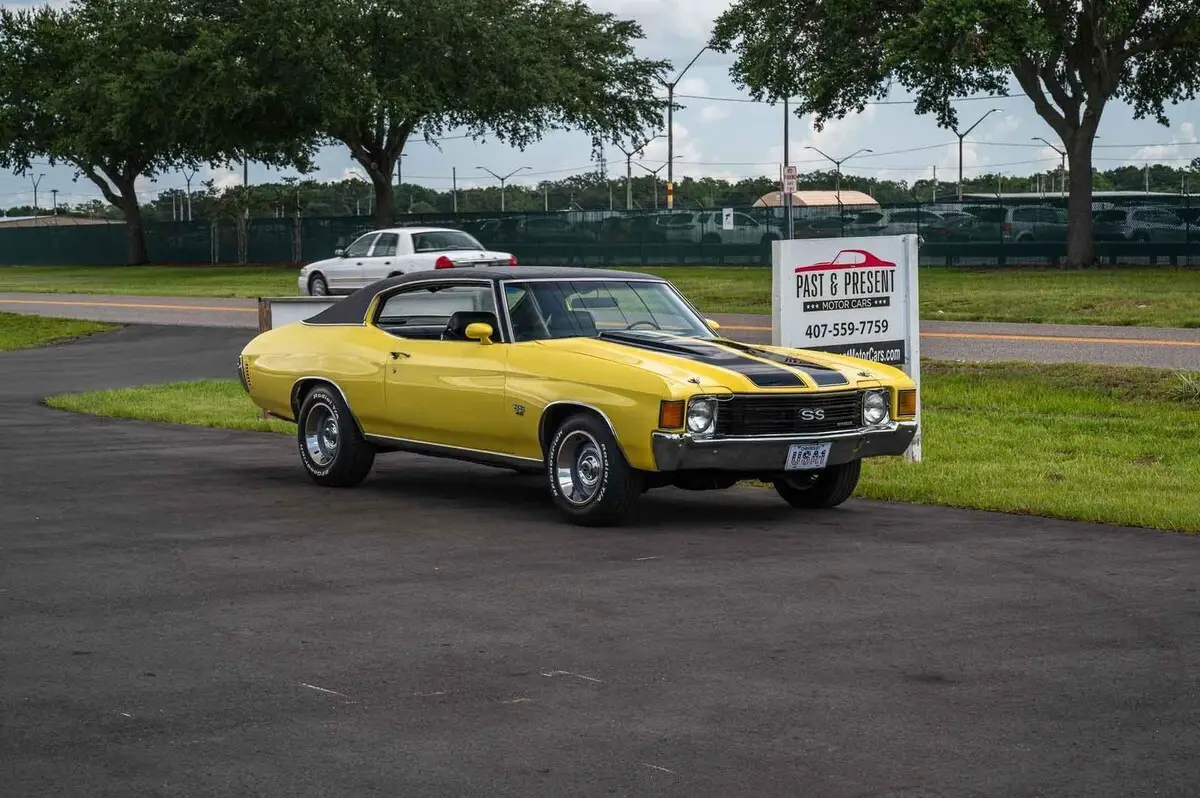 1972 Chevrolet Chevelle SS – True SS, Matching Numbers, Documented This 1972 Chevrolet Chevelle SS is a true Super Sport, verified by the U code in the VIN, confirming its original big block SS status. It is powered by its matching numbers 402/396 Big Block V8 engine, paired with a Turbo 400 automatic transmission. This car delivers strong performance and classic muscle car appeal. The exterior is finished in factory-correct Color Code 56 Cream Yellow with a black bucket seat interior and center console. Inside, it features a factory tach and full gauge package, adding to its original Super Sport character. It rides on 15-inch Rally wheels wrapped in BF Goodrich Radial T/A tires for a period-correct look and solid road feel. The car retains its original exhaust manifolds and is equipped with great sounding dual exhaust. This is a documented real SS and comes with the original owner’s manual and what appears to be the original window sticker (authenticity of window sticker not verified). The car runs and drives great, making it an excellent choice for weekend cruising, local shows, or as a solid addition to any muscle car collection. While we do our best to provide the highest quality muscle cars with an honest and reliable description and realize the importance of transparency when selling vehicles. That being said, we have not built, modified, changed or personally owned this vehicle. Whether this vehicle is consigned or owned by Past & Present Motor Cars we do not know the vehicles complete history since new. We want to be clear and try to answer any questions our customers might have prior to purchasing. Additionally, we not only welcome but we encourage 3rd party independent inspections. Please inquire prior to purchase to make sure the advertised vehicle has not already been sold. We list our vehicles on multiple websites and a vehicle can sell at any time. If a customer chooses to purchase sight unseen (many of our customers choose this option) the customer accepts the vehicle AS IS and WHERE IS and understands we cannot address concerns after purchase. For this reason, it's important all concerns are addressed prior to purchase. We make every effort to present accurate and reliable information, but use of this information is voluntary, and should only be deemed reliable after an independent review of its accuracy, completeness, and timeliness. It is the sole responsibility of the customer to verify the existence of options, accessories and the vehicle condition before time of sale. Financing is Available with low rates and Vehicle Shipping is available from our Showroom to your Garage. A Classic Car Warranty is Available for Purchase from a 3rd Party. Please speak to our Sales Associate or Company Representative for more information. Our team is working and available anytime by Phone or Text for your convenience at 407-559-7759. Thank you for your interest!