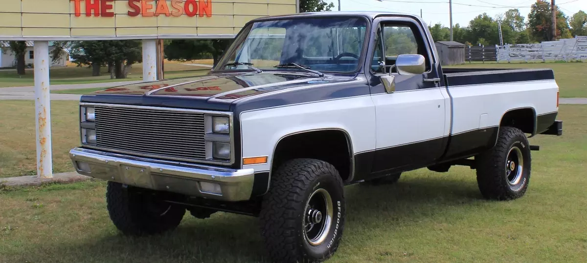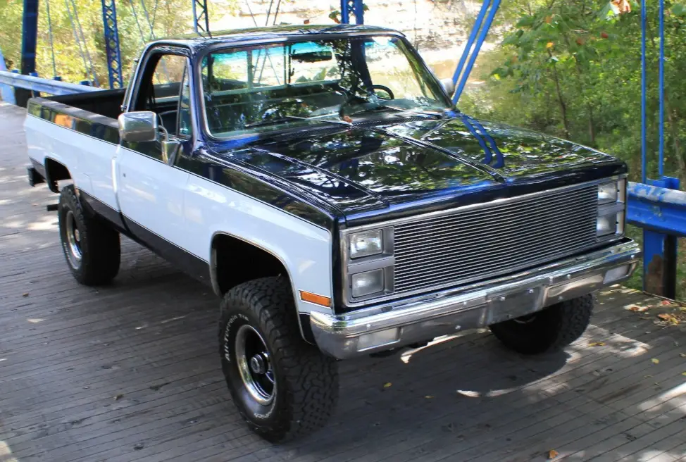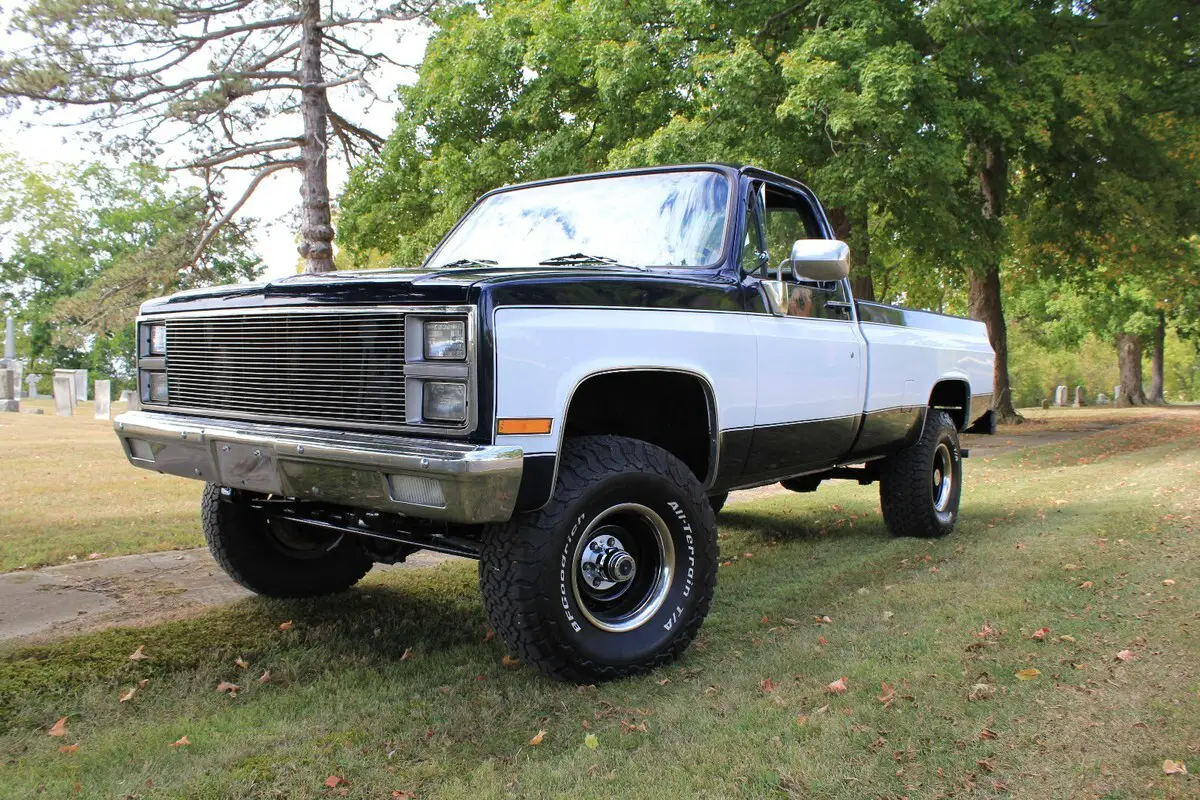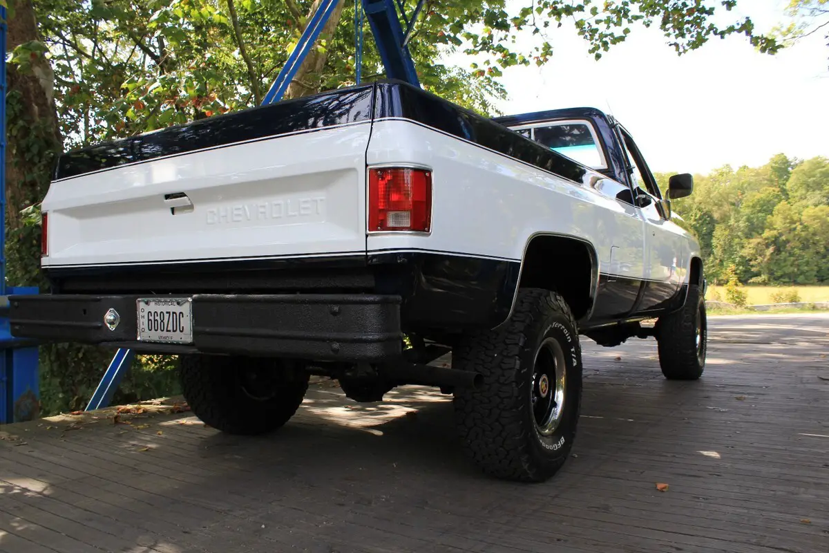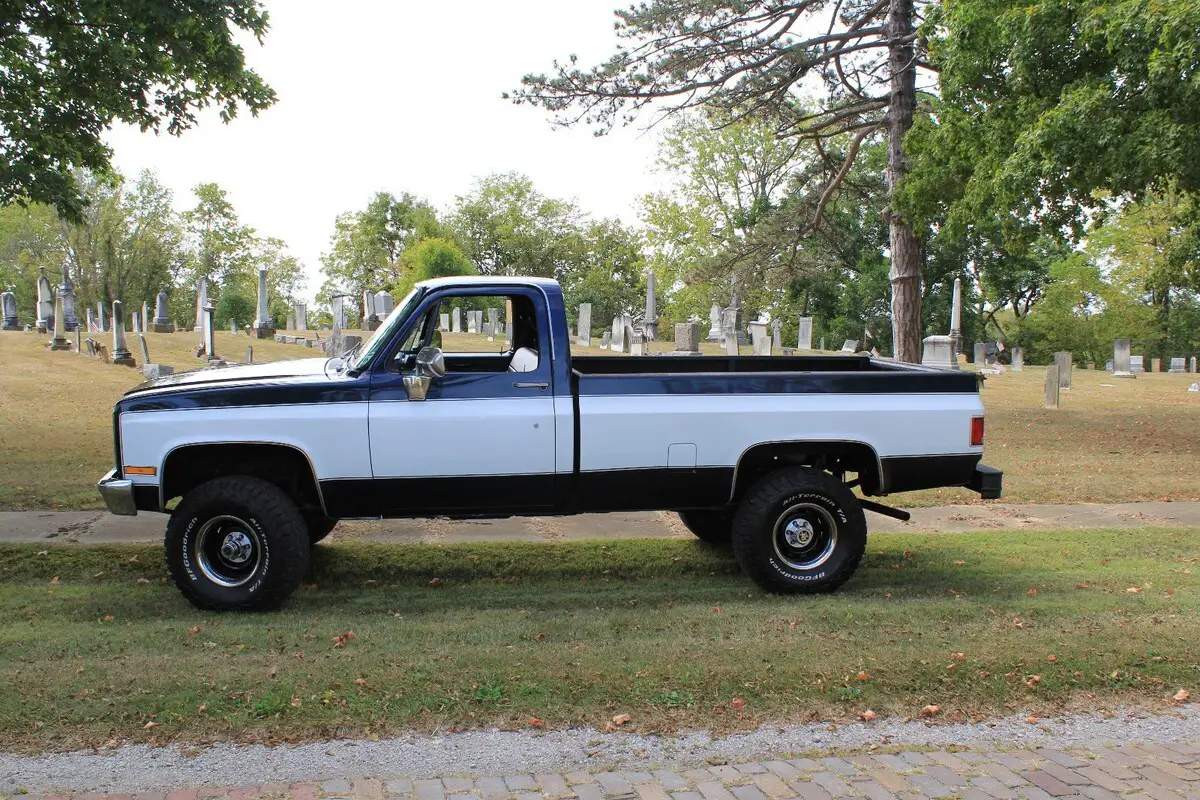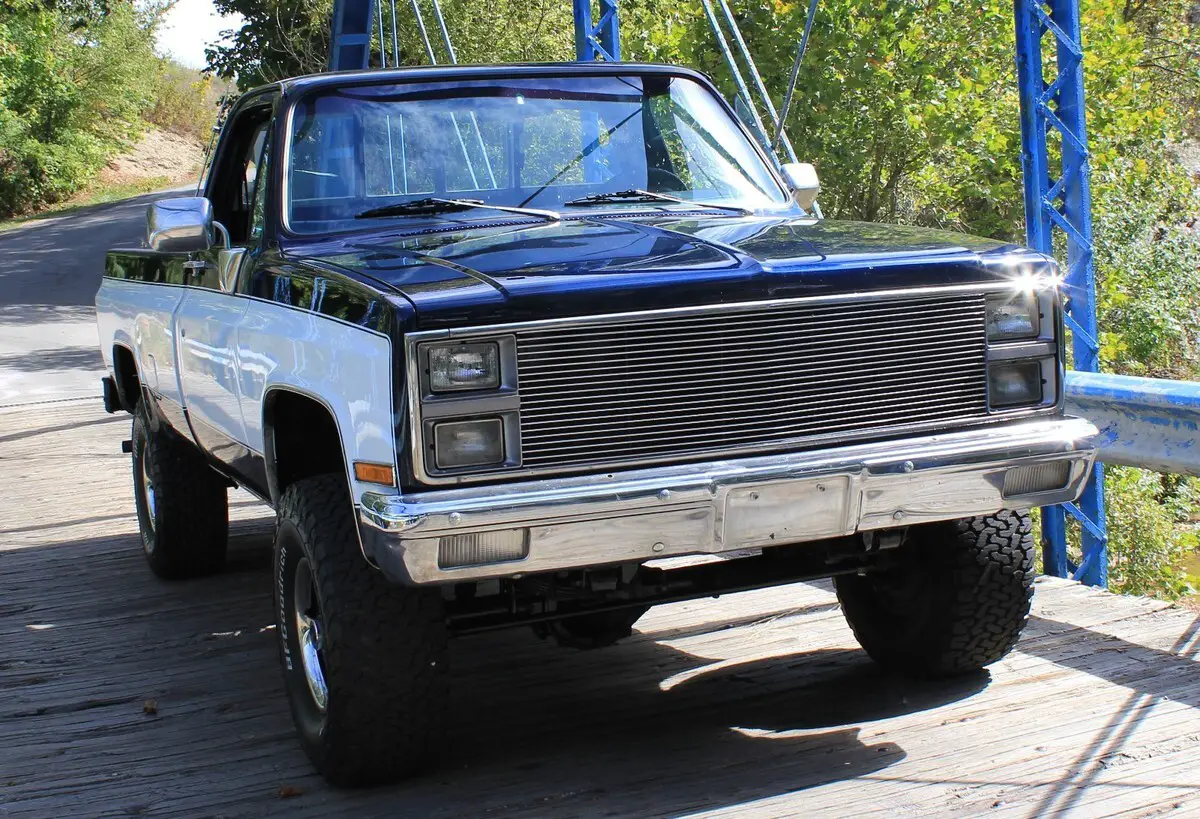 BEAUTIFUL 1982 CHEVY K10 4X4, SUPER CLEAN SUPER STRAIGHT BODY, NEVER SEEN A WINTER.HIGHLIGHTS:350 4 BOLT MAIN700R TRANSMISSIONNEW NP208 TRANSFER CASEBRAND NEW 33" BF GOODRICH TIRESTWO TONE BLUE & WHITE PAINTNEW DASH PAD SEAT BELTS & BENCH SEATUNDERCARRIAGE COATED WITH POR 15DUEL FUEL TANKS DUEL EXHAUSTSPRAY IN BEDLINERSHOTGUN RACK!!!RUST FREE TRUCK!!!LED LIGHTS IN DASHNEW EDELBROCK CARB.EXTRA TOUCH UP PAINT AND PARTS GO WITH THE TRUCK.SPARE RALLY RIM.TWO REPAIRS WERE DONE TO THE BODY, A COUPLE SMALL BUBBLES IN THE ORIGINAL PAINT WERE GROUND OUT, NEW SMALL PATCH WELDED IN. AN AREA CLOSE TO THE DRIVERS CAB CORNER HAD A SOFT SPOT THAT WAS ALSO ADDRESSED BY CUTTING OUT METAL AND WELDING A NEW PIECE IN.AC DOES NOT WORK BUT I HAVE THE PARTS MINUS INTER-COOLER.WIPERS WORK BUT WASH JUST STOPPED WORKING, GO FIGURE. LOLTEMP GAUGE NEEDS HOOKED UP. ALSO, THE STOCK RADIO MOUNT IS STILL IN TACK! NO RADIO, PICK YOUR OWN STYLE.THIS IS A VERY SOLID TRUCK. PLEASE GO TO MY YOUTUBE CHANNEL TO SEE A VIDEO ON THE TRUCK.YOUTUBE @michaelhill2402PLEASE FEEL FREE TO ASK ANY QUESTIONS!!