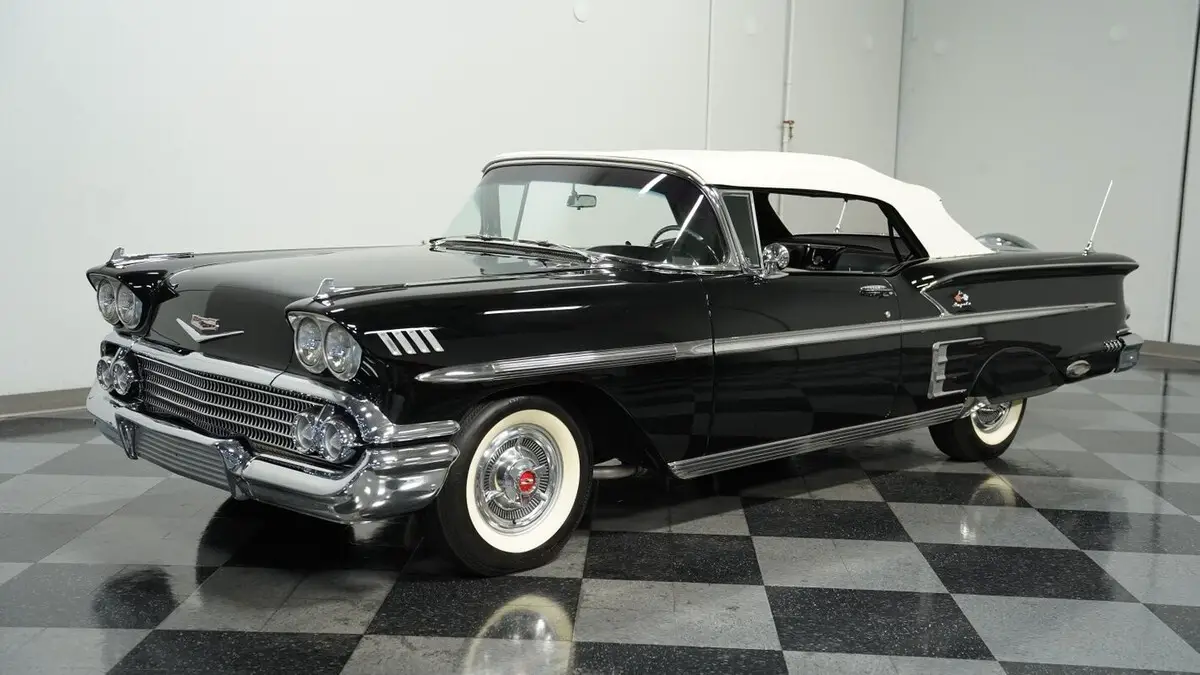 Vehicle Original VIN : F58L167783*First Year Impala *One Year Generation *Rare Convertible *Power Top *Professionally Frame Off Restored *Rear Fender Skirts *Faux Side Exit Exhaust Bezels *Dual Aerials *Continental Kit *348 CID V8 *3x2 Carter Carburetors *Two Speed Powerglide *Power Steering *Stock Style Interior *Wonderbar Radio *Hidden Pioneer AM/FM/CD *Power Brakes *White Wall Tires *Stunning Car