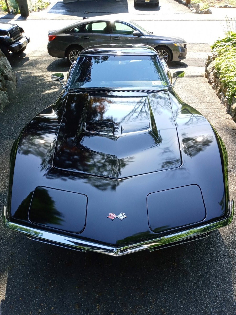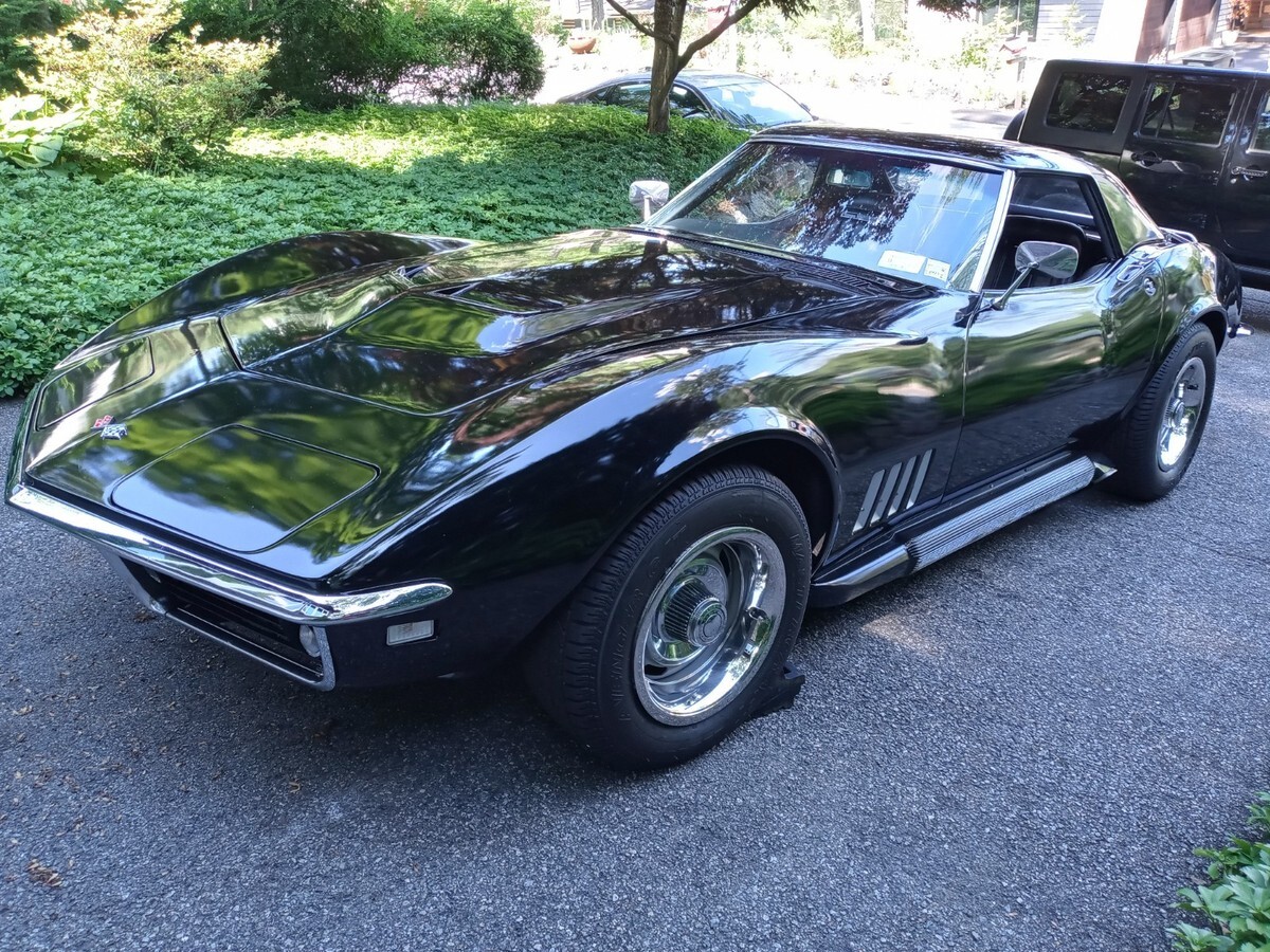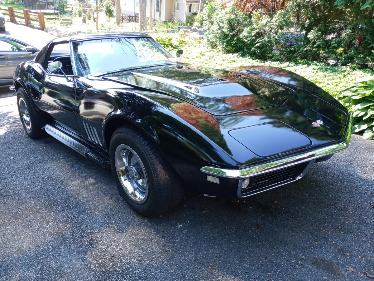 1968 Corvette Convertible, 4spd, 350 motor. Pictures do not do this car justice. Has a very nice original body with all original bonding strips. Car was painted black a few years ago and looks great but not perfect and was never buffed out. 95% of the Interior has been replaced and looks beautiful. Motor was completely rebuilt years ago probably doesn't have a 1,000 miles on it. Hasn't been driven much in the last 12 years. Carburetor is burning a little rich and probably could use to be rebuilt otherwise motor runs fine. Engine compartment is extremely clean. Has new front and rear bumpers, gas tank, tail lights, license plate bezels, chrome luggage rack, trim rings and center caps. New black mahogany steering wheel and so much more. Car comes with two tops but needs a new convertible top. Has side pipes with black fiberglass covers and a very nice original 427 big block hood. Extremely clean frame and bird cage. The car has a transferable New York registration. New York does not issue titles 72 and under so PLEASE do your homework and don't waste your time with low ball offers. This isn't a fire sale. Car is being relisted because the buyer decided not to make the trip from Louisiana. I WILL NOT USE CARAMEL ON EBAY!