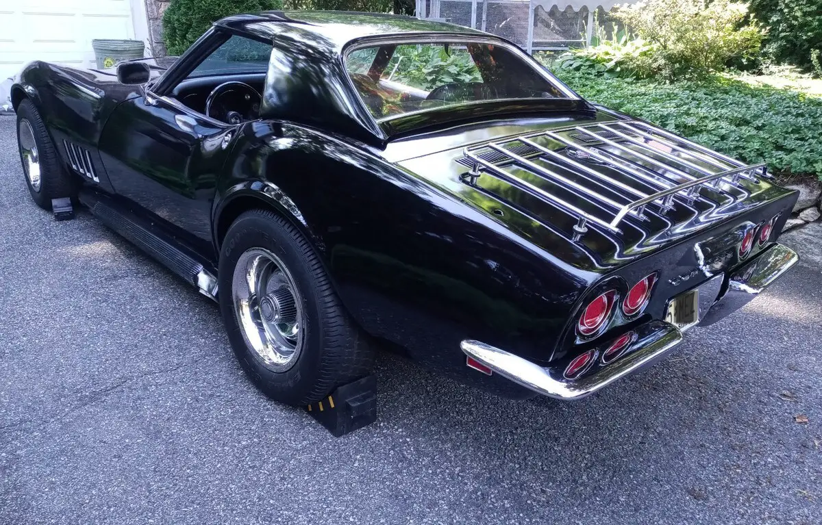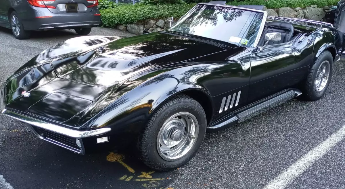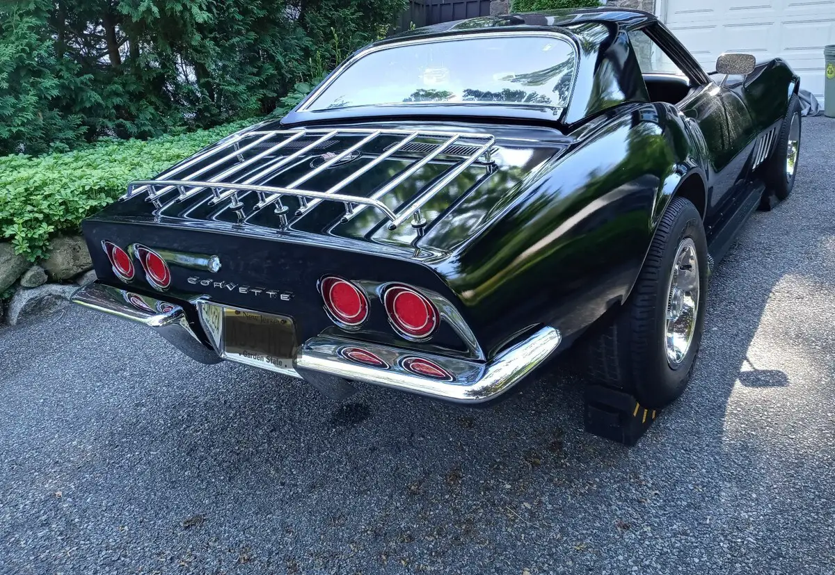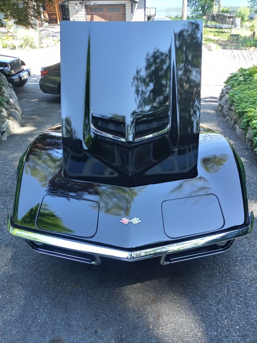 1968 Corvette Convertible, 4spd, 350 motor. Pictures do not do this car justice. Has a very nice original body with all original bonding strips. Car was painted black a few years ago and looks great but not perfect and was never buffed out. 95% of the Interior has been replaced and looks beautiful. Motor was completely rebuilt years ago probably doesn't have a 1,000 miles on it. Hasn't been driven much in the last 12 years. Carburetor is burning a little rich and probably could use to be rebuilt otherwise motor runs fine. Engine compartment is extremely clean. Has new front and rear bumpers, gas tank, tail lights, license plate bezels, chrome luggage rack, trim rings and center caps. New black mahogany steering wheel and so much more. Car comes with two tops but needs a new convertible top. Has side pipes with black fiberglass covers and a very nice original 427 big block hood. Extremely clean frame and bird cage. The car has a transferable New York registration. New York does not issue titles 72 and under so PLEASE do your homework and don't waste your time with low ball offers. This isn't a fire sale. Car is being relisted because the buyer decided not to make the trip from Louisiana. I WILL NOT USE CARAMEL ON EBAY!