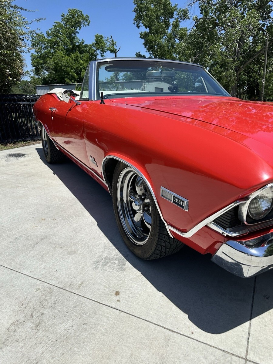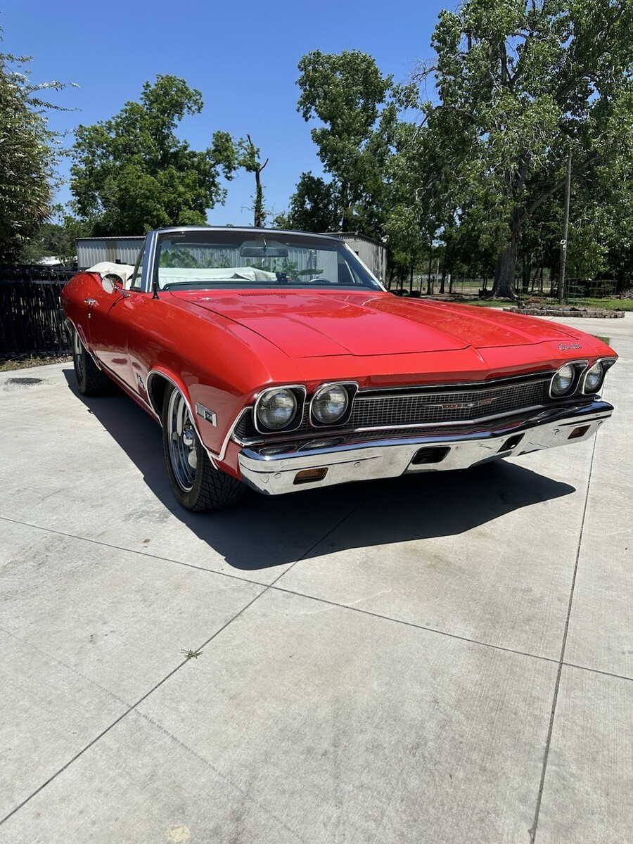 1968 "1 of 140" Very Rare convertible!Appraisal for $47,500.370 HP Engine Rebuilt by Drive Train Source - 2,505 milesNew Transmission - 350 turbo with horseshoe shifter in center consoleNew Ceramic headersAluminum intake with 650 Elderbrock carburatorCHROMEWater pump, Alternator, air filter, radiator cover, break master cylinder and oil panPower top with glass back window(needs fluid top off)Power Steering and Power disc brakes200 wat Radio with cassettTorq Trust II wheelsFactory Air conditioning(needs conversion to 4-134a refrigerant)VIN: 136678Z110828350 cubic inch, 5.7 liter, V8 motorAluminum intake manifoldCeramic coated headersMSD distributorChrome valve coversAutomatic transmissionPower steeringPower front disc brakesFactory air conditioningSun Pro tachometerBillet steering wheelCenter consoleWhite vinyl upholsteryAmerican Racing wheelsPower operated white vinyl soft top10 bolt rear end