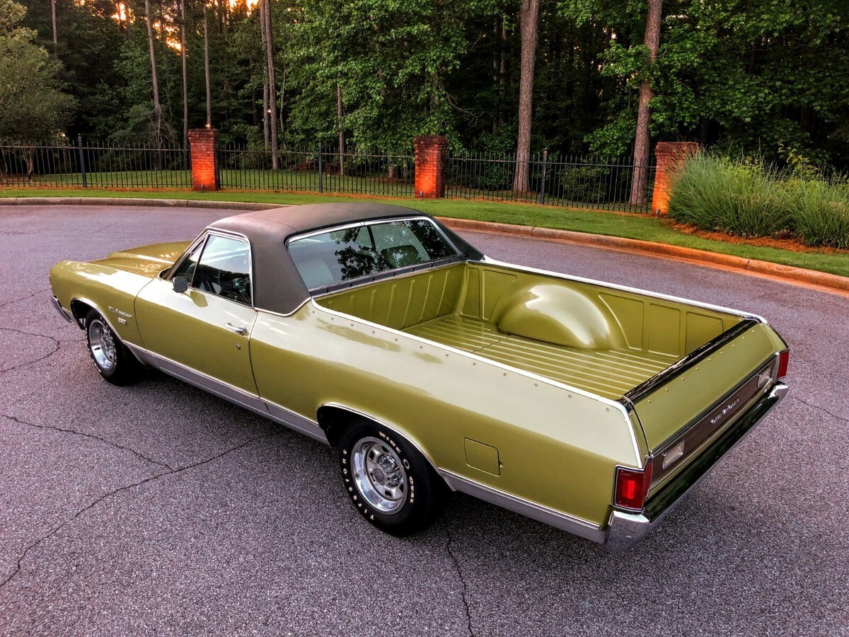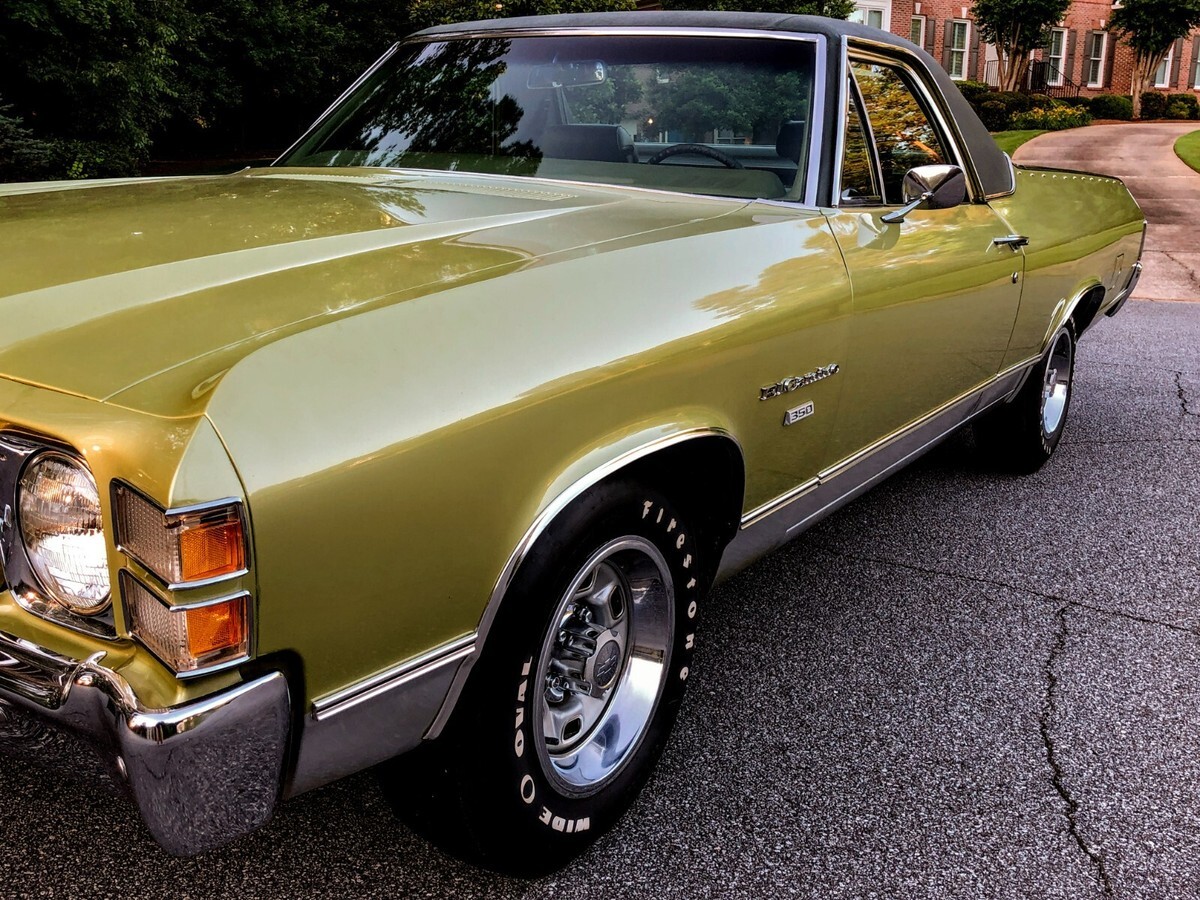 PRESENTED FOR YOUR CONSIDERATION...ONE OF THE ABSOLUTE BEST UNRESTORED ULTIMATE SURVIVOR 3rd GEN (68-72) EL CAMINOS TO EXIST! They are ONLY ORIGINAL ONE TIMEFROM THE FACTORY!!! The number of "True Survivor" vehicles is only getting smaller as time goes on. It is already extremely rare to come across any survivor vehicles of this caliber so don't miss out on this rare opportunity to get the best!Call me with questions or to schedule an inspection, Kurt (626) 602-4054Benchmark "survivor tent" show grade vehicle with only 22K original milesMiles are fully documented by an affidavit from the original ownerOnly two owners since new (original owner 1971 to 2020, second owner from 2020 to present)Original GM factory applied paint from 1971 including the cargo bed area that has been verified by paint gage readingsOriginal interiorOriginal vinyl topOriginal chrome, stainless, lenses and trimOriginal Uniroyal F78X14" spare tire / rim /complete jacking assembly, including the original assembly-line jacking instruction stickerOriginal GM factory assembled and #s matching motor and drivetrain that has never been apartOriginal build-sheet, a rare find that is highly valued and only way to prove / document what options came on a GM vehicleOriginal benchmark undercarriage is untouched still having all its original part tags, paint marks, stampings, finishes, etc.. presentOriginal gas tank paint-stampings still presentOriginal hoses, belts, clamps, wire looms, tags, stamps, paint dabs, etc in the engine compartment mostly appear to still be presentOriginal assembly-line installed spark plug wires set that was still on this car when purchased is includedOriginal front and rear shocks, rear shock air lines and suspension parts still on vehicleOriginal factory glove-box owner's manual plus its original plastic protective sleeve still presentOriginal factory '71 dealer brochure that pictures an identical El Camino to this one on the cover includedOriginal 1971 GM factory repair manual will be included with the purchaseOne of the most original and unmolested TRUE SRVIVOR 70's Chevrolet's to exist bar none!Sold new in Roswell GA living its entire life in mild climate always garaged and fully protected from the elementsFactory: 350-V8 / 3 speed automatic / pwr steering / pwr disc brakes / AirconditioningDrives like a dream and just like a 22K mile vehicle shouldAC system has been upgraded to R34Water pump and heater core have been replacedOriginal factory installed single exhaust system was replaced with a professionally installed dual exhaust system, sounds perfect and just right!This 1971 El Camino is registered in state of Georgia to the listing seller. Winner of auction will receive a bill of Sale from registered owner plus theORIGINAL PINK SLIP issued in 1971 signed by the original ownerNOTE: seller has 100% ebay rating and has been a member for over 20 years selling several high dollar collector vehicles over the years with 100% satisfaction.