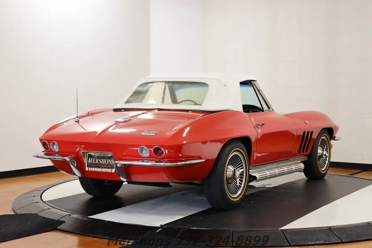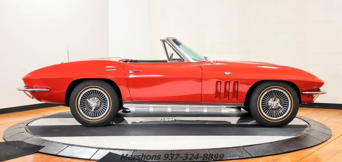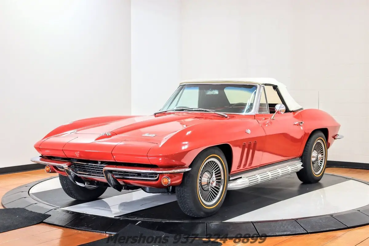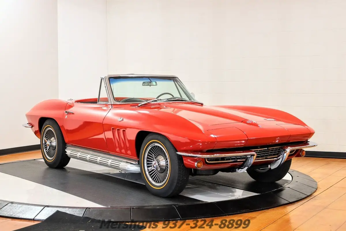 1966 Chevrolet Corvette Convertible Protect-O-Plate! 350 HP 327!! Fun to Drive '66 Corvette! Side Exhaust! Four Speed!! Color Code 974 Rally Red over Black Interior with a White Convertible Top. Casting Number '3892657'. 327 350 HP 4 Speed. Many Factory Correct type components including ignition shielding, air cleaner, Harrison radiator and expansion tank, Reverse Lockout shifter and more. Features Include Side Exhaust, Power Brakes, Knock Off Wheels and Goldline Radials. Who doesnt love a Rally Red Corvette! And it doesnt get better than a 4 Speed with Side Exhaust! It makes it a dream to drive out on the road!You will find yourself looking for excuses to take it out on the road! And this car has its Protect-O-Plate showing it was born a 350 HP Car! So please give us a call today for more detailed information! We KNOW our cars because We OWN our cars! Call today for more information! Financing and Door to Door Delivery Available, We take trades! Call Today! Now Accepting ALL Trades... Of Course We Prefer Corvettes and Classics, What Do You Have?