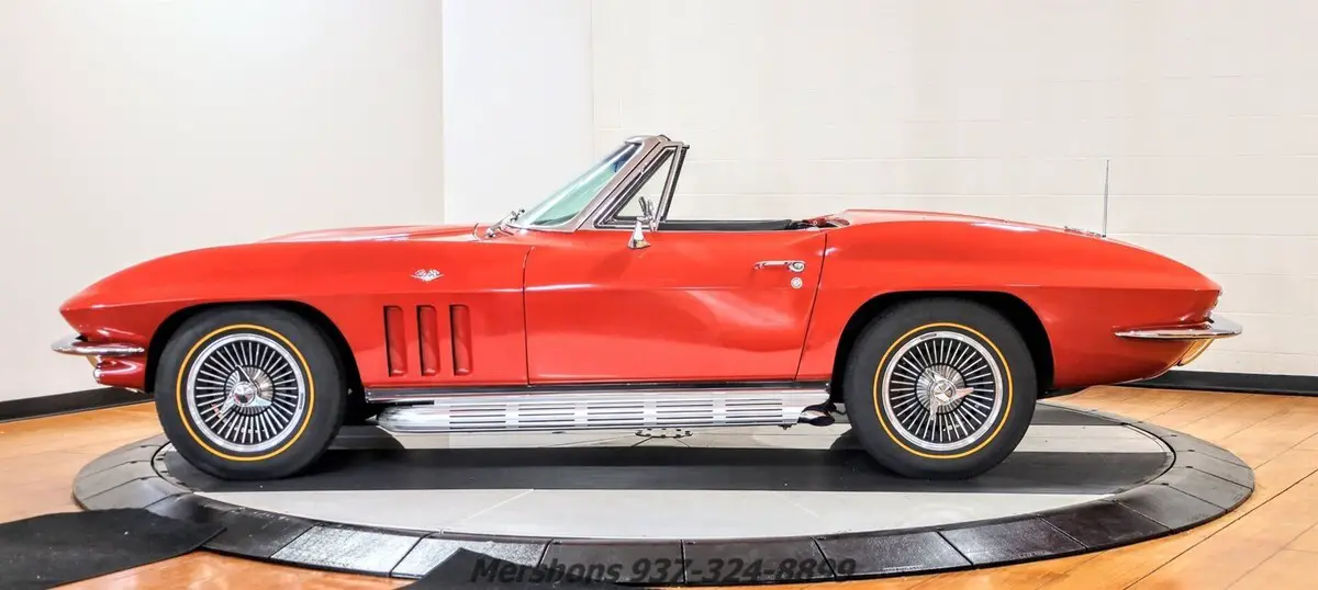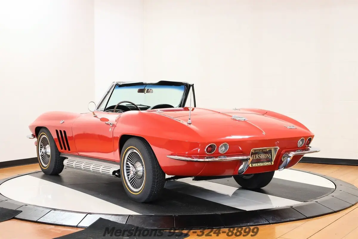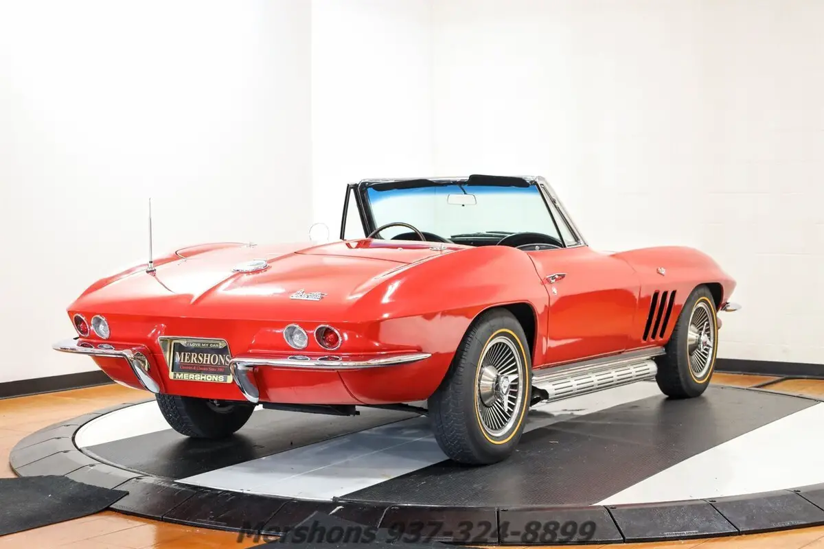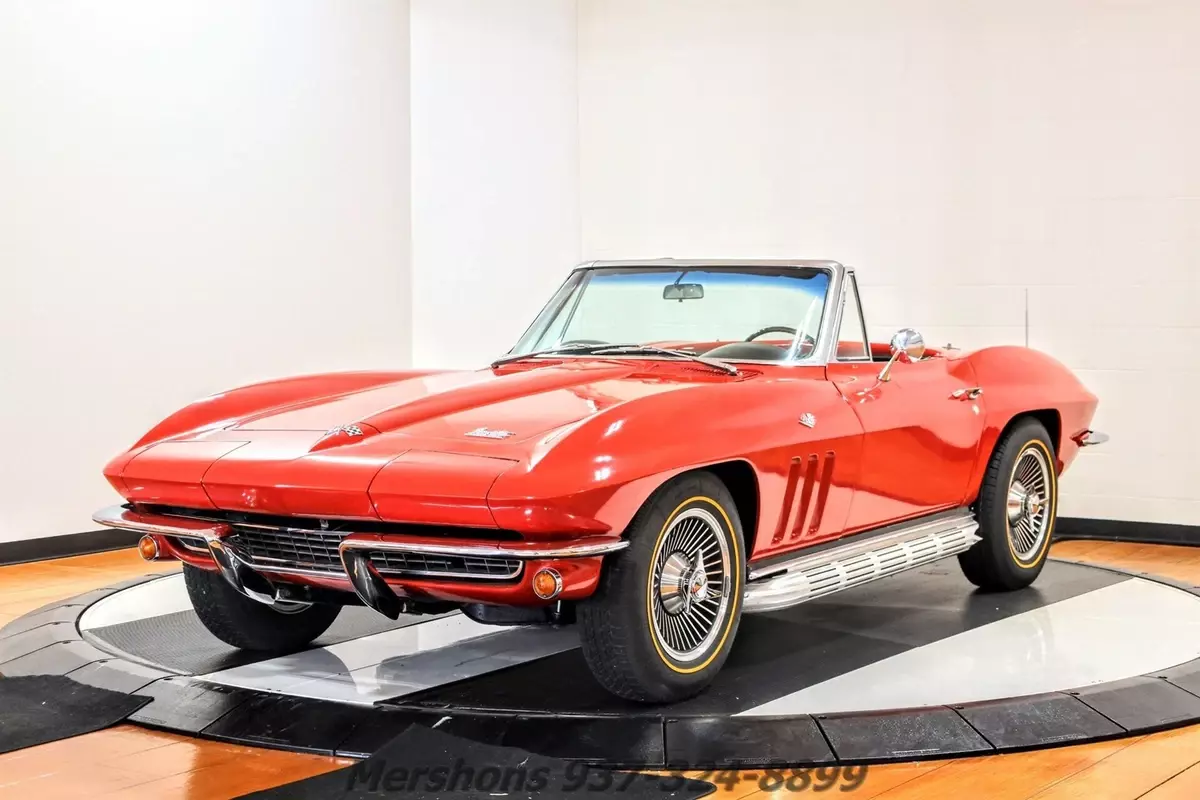 1966 Chevrolet Corvette Convertible Protect-O-Plate! 350 HP 327!! Fun to Drive '66 Corvette! Side Exhaust! Four Speed!! Color Code 974 Rally Red over Black Interior with a White Convertible Top. Casting Number '3892657'. 327 350 HP 4 Speed. Many Factory Correct type components including ignition shielding, air cleaner, Harrison radiator and expansion tank, Reverse Lockout shifter and more. Features Include Side Exhaust, Power Brakes, Knock Off Wheels and Goldline Radials. Who doesnt love a Rally Red Corvette! And it doesnt get better than a 4 Speed with Side Exhaust! It makes it a dream to drive out on the road!You will find yourself looking for excuses to take it out on the road! And this car has its Protect-O-Plate showing it was born a 350 HP Car! So please give us a call today for more detailed information! We KNOW our cars because We OWN our cars! Call today for more information! Financing and Door to Door Delivery Available, We take trades! Call Today! Now Accepting ALL Trades... Of Course We Prefer Corvettes and Classics, What Do You Have?