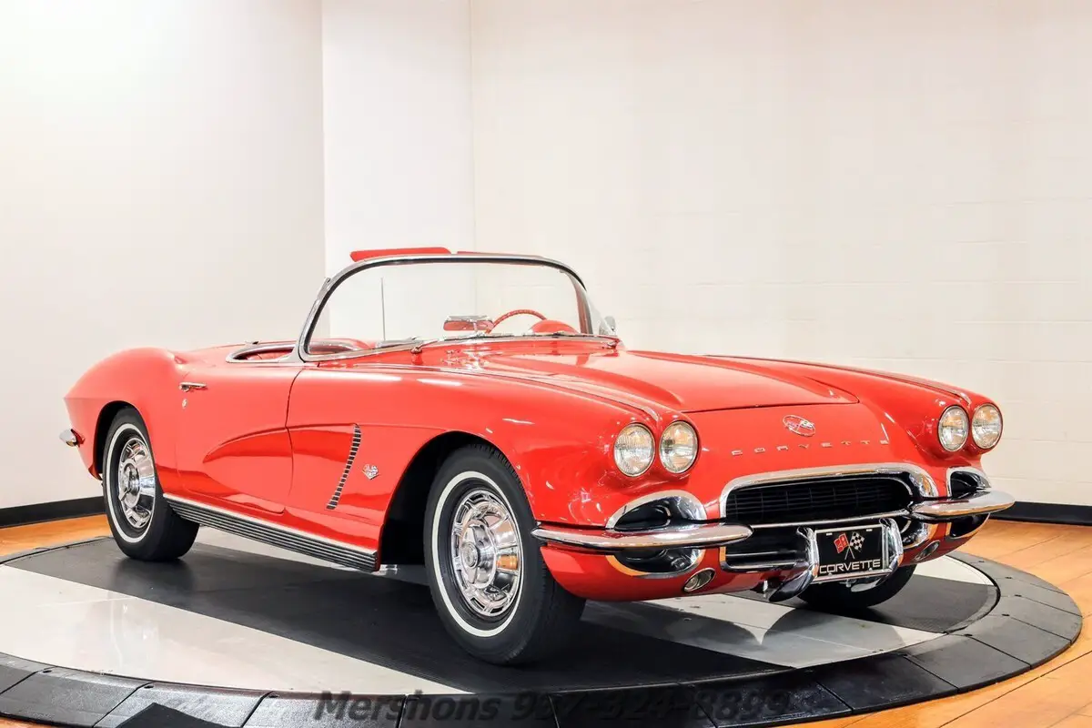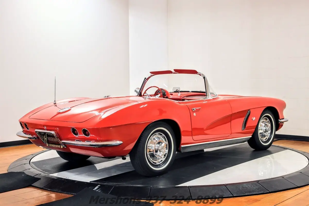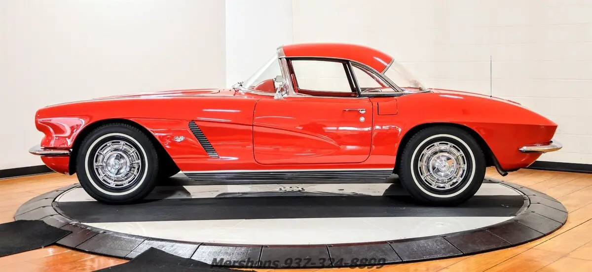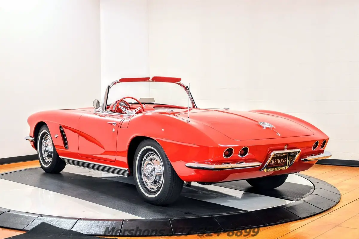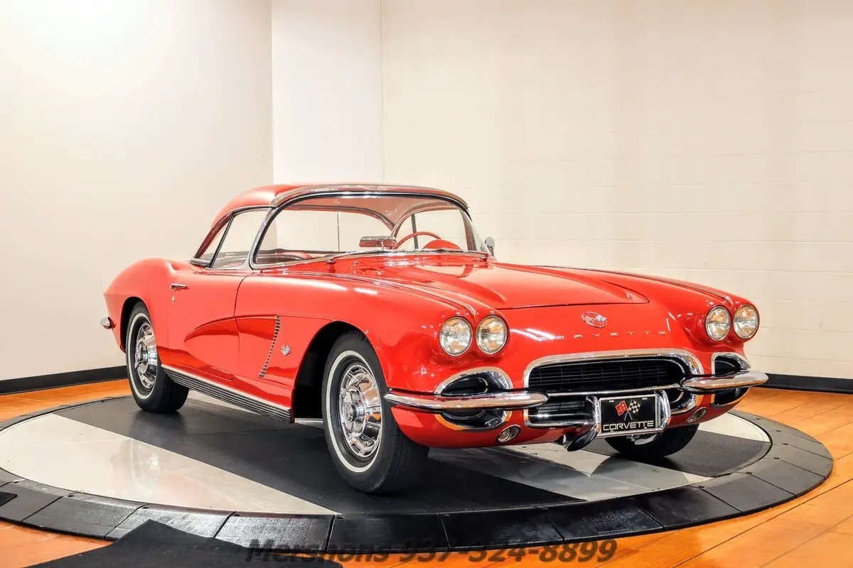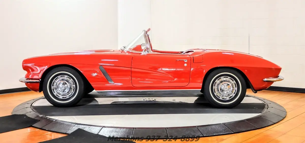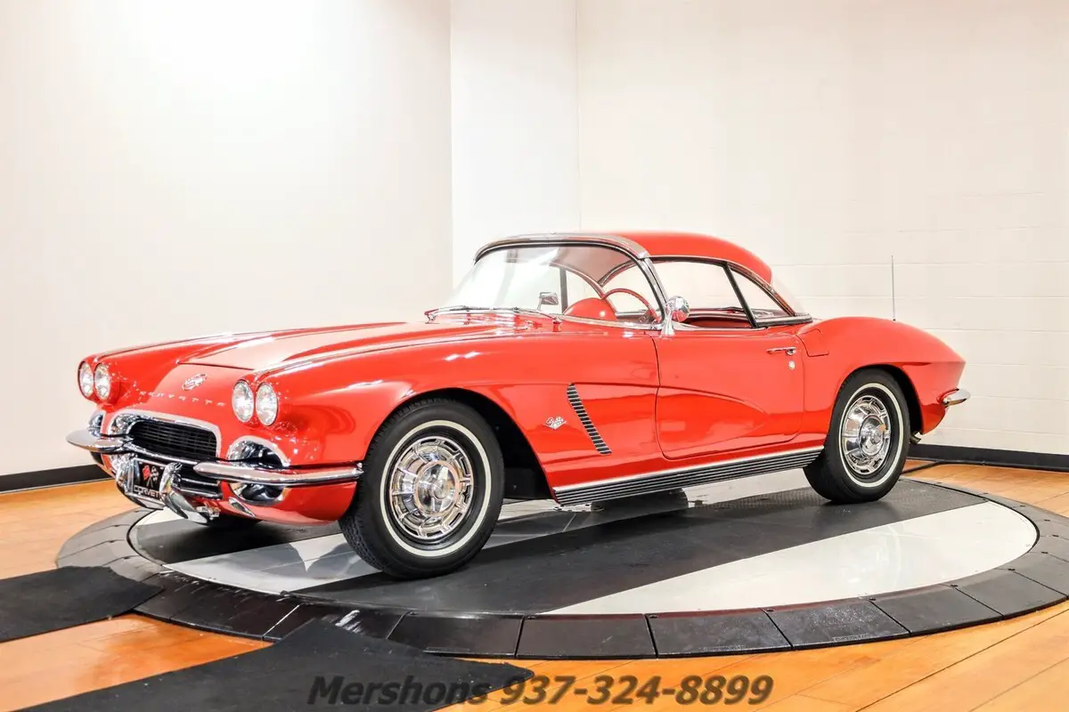 1962 Chevrolet Corvette Highly Desirable Roman Red over Red!! Fun to Drive 340 HP!! Both Tops!! Roman Red over a Red Interior and a White Convertible Top with an Auxiliary Hardtop. Casting Number ’3858174’ Period Correct 327 340 HP Paired to a 4 Speed Manual Transmission. Features Include Auxiliary Hardtop, Seat Belts, Courtesy Light, Stainless Wheel Covers wrapped in Thin Whitewall Radials and much more! The fit and finish through out is excellent, great cosmetics overall! Smooth Driving 62 corvette with great curb appeal! Just a Fun to Drive Corvette! And it looks Fantastic in Roman Red over Red! So please give us a call today, we would love to hear from you today! We KNOW our cars because We OWN our cars! Call today for more information! Financing and Door to Door Delivery Available, We take trades! Call Today! Now Accepting ALL Trades... Of Course We Prefer Corvettes and Classics, What Do You Have?
