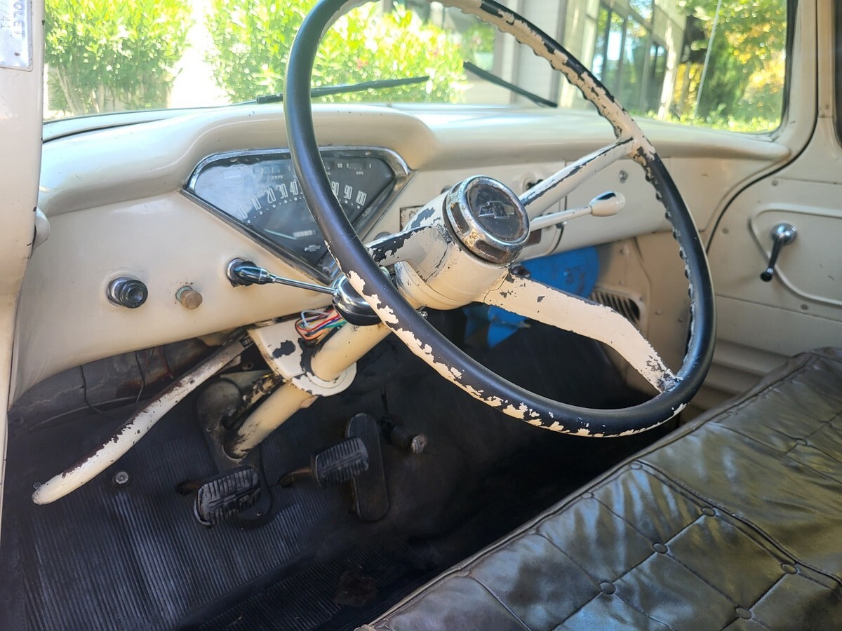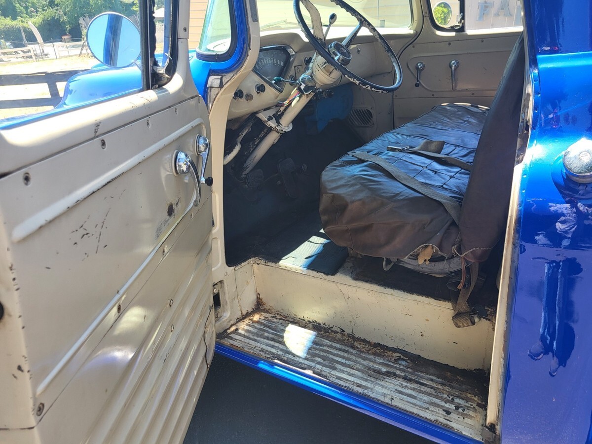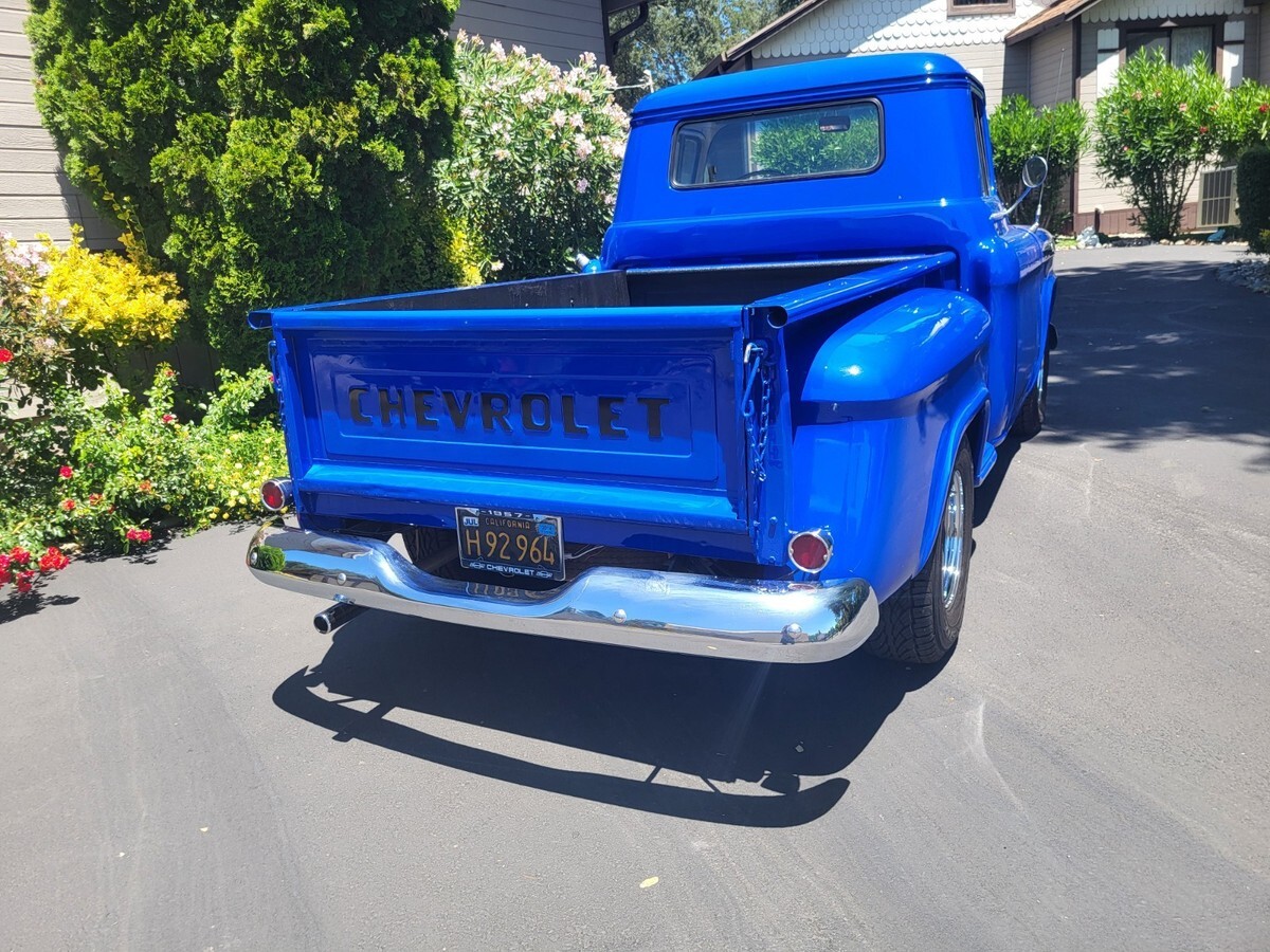 Very nice, sound mechanical 1957 Chevrolet 3100 Pickup, short bed step side. This is an original, second owner, 6 cylinder, 3 on the tree truck. We are selling this for a dear friend. It has nice paint, but body work could be better, no major dents, but there are prep flaws that show on close inspection, most people would not notice, paint looks good, shiny pretty color. There is no major rust, floors are original and sound. It has excellent tires, chrome wheels, baby moon hubcaps. The chrome is good to excellent, grille, bumpers, taillights, headlight bezels are all rechromed.The engine has good oil pressure, new radiator, thermostat and housing, all new hoses, new fuel filter, recent tune-up and oil change. The charging system works. The owner has included a rebuilt carb and a new aluminum radiator to replace down the road if and when needed, new battery last week. The rear end grease was changed, and installed new cover and gasket, along with new brakes and wheel cylinders. The interior is original, non-restored, but complete. Nice spray on bed liner. It has new exhaust system and ebrake cable and nice under carriage. Owner indicates his mechanic retired and did not hook up the new turn signal unit, the instructions come with the truck and unit is on the steering column. additionally, there are extra parts included with the truck, see the picture. Truck is currently on California non op. Potential buyers are encouraged to come inspect this truck or have it inspected. Be happy to answer any questions, or get info from owner, or provide additional pictures if requested.
