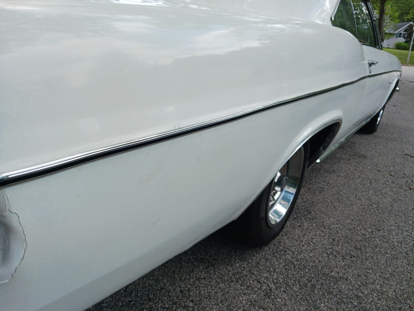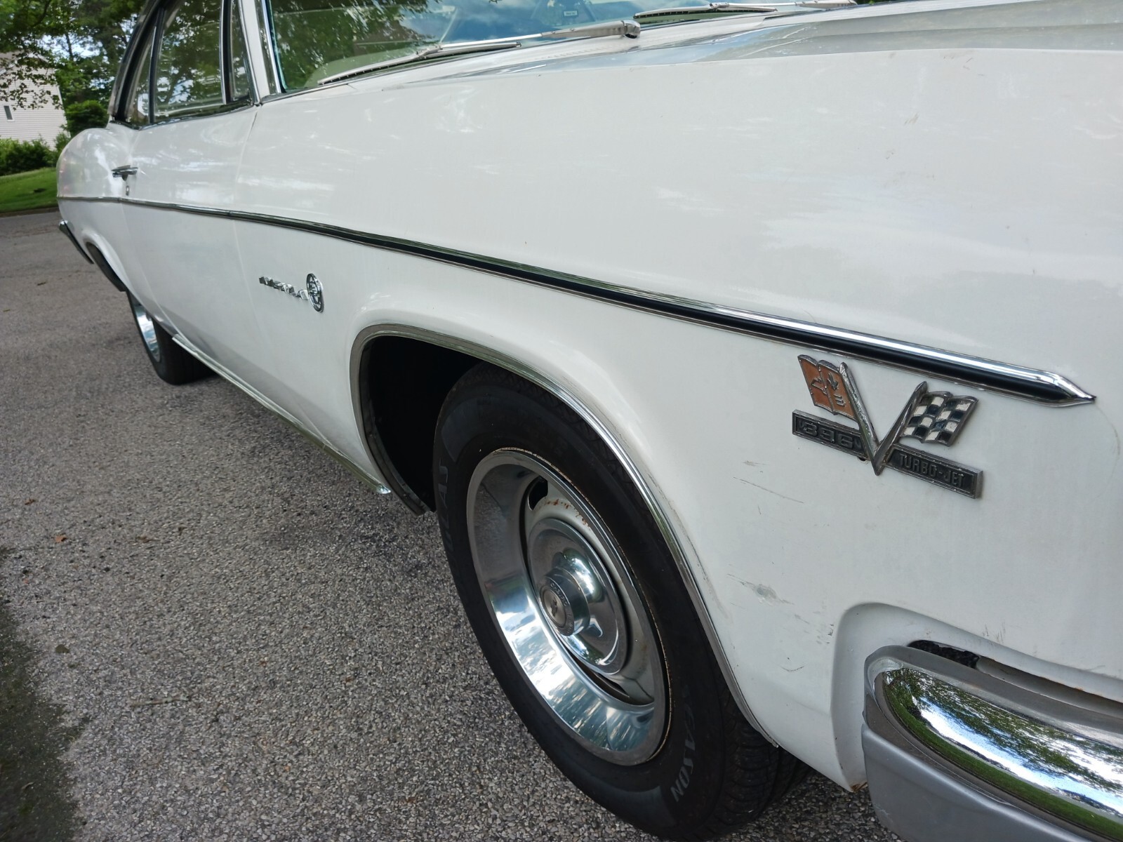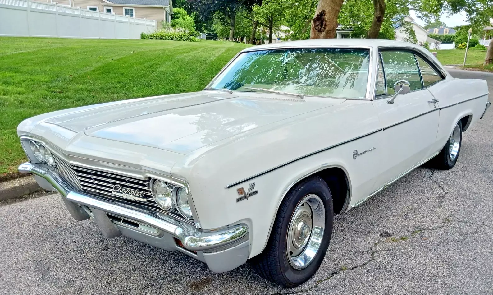 NICE 1966 CHEVY IMPALA COUPE (NON SS) WITH STRONG RUNNING 396CI V8 AUTOMATIC WITH UPGRADED DISC BRAKES, 44K ORIGINAL MILES, NEVER RUSTED AND READY TO DRIVE.Please LEAVE A PHONE NUMBER so I can reach you to verify you're a REAL BIDDER. Tired of scammers and ghost bidders.Auction MAY BE STOPPED AT ANY TIME for serious offer.Full Youtube Walkaround, startup and driving video here:https://www.youtube.com/watch?v=BGJzNICErBMCar has been collector owned all its life. Previous owner kept it in relatively good shape and occasionally used it to get some ice cream with his kids, run around town, the occasional cruise night and local car show. Body is VERY STRAIGHT and looks to have ALL ORIGINAL PANELS from what I could tell, but I'm no expert. Older paint probably 15-20 years old or so that shows well, a good 10-15 footer with some small imperfections, chips, scratches, and minor touchups. Doors open and close good, panel fit is very good. Overall a NICE ORIGINAL BODY with virtually NO RUST (a few bubbles at base of rear passenger quarter, nowhere else).Interior is VERY NICE and a lot of it was replaced within the last few years. NEWER carpet, NEW door panels, NICE dash pad, NICE seats (rears were redone recently). NO big rips or tears anywhere. NICE headliner as well. Overall a NICE DRIVER QUALITY INTERIOR.Under the hood the original 283 is long gone, replaced by a 396ci V8 with a mild camshaft, some internal mods, aluminum Intake, Edelbrock 750cfm 4bbl carburetor, headers, dual Flowmaster style exhaust, electric fuel pump and a few other minor upgrades. Fires right up and sounds good, idles good, performs well. Transmission shifts good. Brakes have recently been serviced and stop great, steers well without much play in the wheel. YOU CAN GET IN AND DRIVE THIS CAR TODAY!!!Underside is SOLID THROUGHOUT. NO patches, NO welding, SOLID TRUNK, SOLID FRAME, SOLID FLOORBOARDS.Overall this is a VERY NICE CRUISER that you an get in and use today and restore to your liking down the line. Obviously it's NOT perfect: radio not working, no heat/air, could use larger radiator for longer trips, perhaps a light bulb or two may need replacing. I'm sure there are other minor things I'm missing so please understand car is NOT A CREAM PUFF.Thanks and good luck bidding.