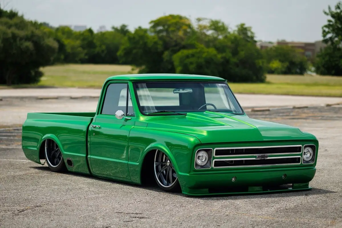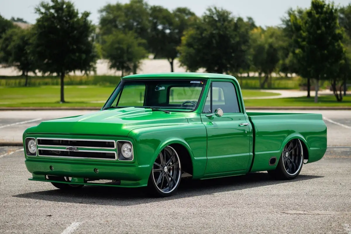 Earth Motorcars is excited to offer this amazing: 1967 Chevrolet C10 "The Grinch" Custom. A complete nut and bolt restoration, built to turn heads and win shows. Beautiful Show Truck.Features Include:Custom Built Fully Fabricated Chassis by PB Fab468CI BBC V8 Engine700R4 Auto Transmission (#8663548)Holley Sniper EFI SystemVintage Air Climate ControlRack and Pinion Power SteeringRidetech Air Suspension and Management SystemFully Custom Ford 9" by PB Fab w/3.73:1 GearsAll Custom PB Fab SuspensionWilwood Master and BoosterWilwood Four-Wheel Disc Brakes 6-Piston F 4-Piston RUpgraded Steel Braided Brake LinesCVF Racing Serpentine Belt DrivePatriot Exhaust Long Tube HeadersDual Side Exit Exhaust // Round-Straight Through MagnaFlow MufflersFully Custom InteriorRaised Wood Bed FloorCustom Front Valance and Rear Diffuser22" U.S. Mags Bastille WheelsStaggered 255/30/22 F 285/35/22 RLokar Aftermarket Floor ShifterCustom Sound Setup: Pioneer Head Unit in DashDual Focal Subwoofers behind Bench SeatUpgraded Gauge ClusterAftermarket Tilt Steering ColumnAnd so much more...All of our classic cars go through our rigorous inspection and items that need repair get fixed unlike cars bought at auctions, So rest assured that you are getting a quality classic car! All classics are sold Miles Exempt regardless of what the odometer shows. This vehicle may be eligible for our EXTENDED WARRANTY that covers a wide variety of components (certain exclusions apply).....Please ask your sales representative for details. Welcome to Dallas Fort Worth's Premier Lotus, Luxury, Exotic and Classic Cars Dealership. We specialize in offering the Finest Vehicles, Providing Outstanding Customer Service, Obtaining the Best Financing Options and Stocking a Large Selection of Luxury Vehicles, Exotics, Classic Cars and More! See for Yourself what Thousands of Customers have Discovered over the Years and Make your Next Purchase from Earth MotorCars! Our Goal is to Make you a Customer for Life! Learn more about us by calling 214-483-9040 or via e-mail at . Visit us on our Website at