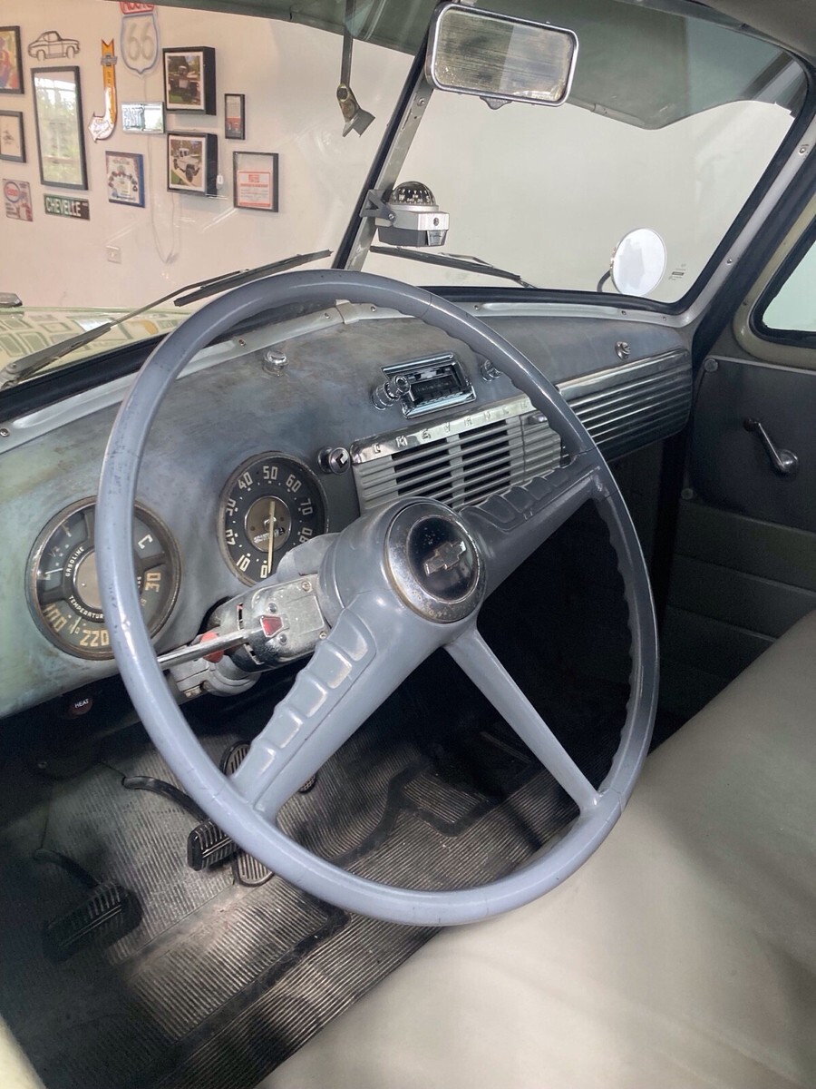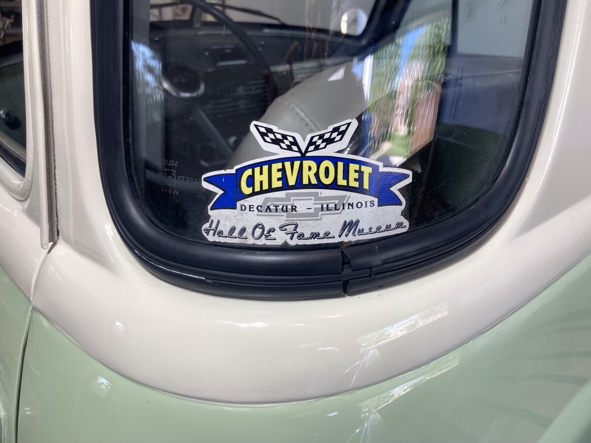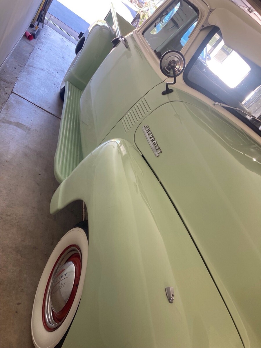 Mint green, with cream white top and grey interior. Great for car shows and just bopping around