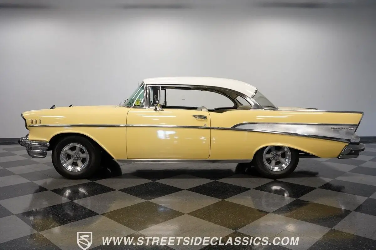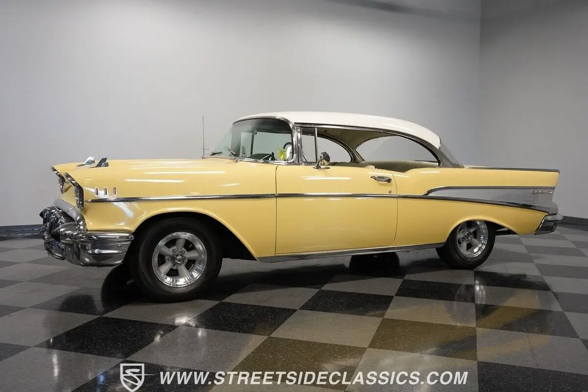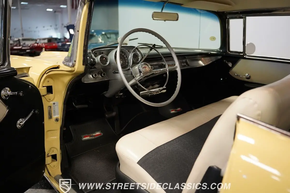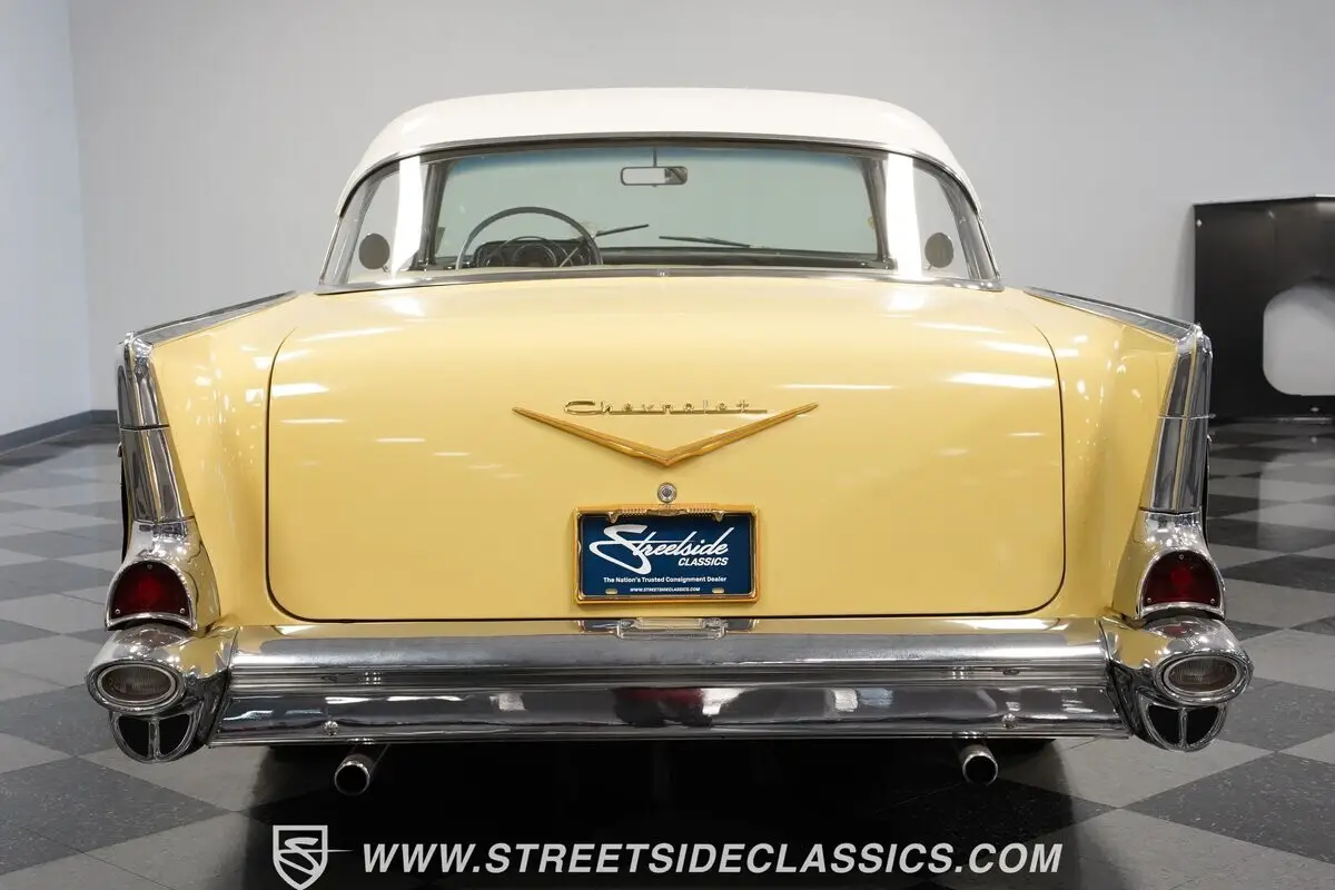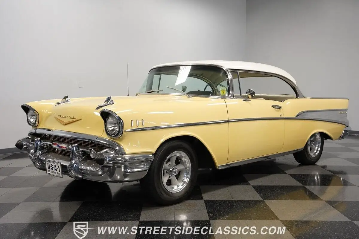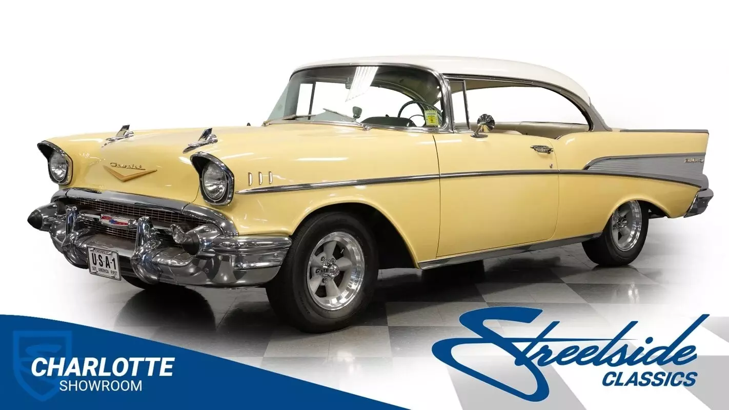 Vehicle Original VIN : VB57J228289Highlights: *Upgraded with Bel Air trim level *Desirable hardtop body style *283 V-8 *2-speed Powerglide transmission *Projects originality under the hood *Dual exhaust *12-inch American Racing Torq Thrust wheels *Accessory front bumper guards *Accessory tissue dispenser