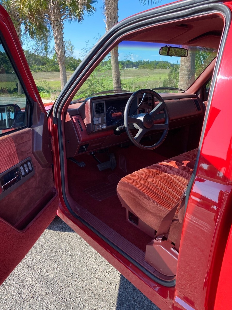 Selling my 1990 Chevy Truck with only 75K Miles. I purchased it from the daughter of the original owner after his passing. It has the 5.7-liter engine, with new injectors, water pump, A/C compressor, serpentine belt, pulley, belt tensioner, new valve stem seals, valve cover gaskets, heater core and much more. I had the truck painted as it had gray trim on the bottom and I wanted it all red. At that time, I also installed a roll pan on the rear with a hidden hitch behind the license plate. I also changed the shackles in the rear to level the truck. On the interior I had a vintage looking Santa Cruz radio installed, it allows your phone to connect via Bluetooth. I also had the windows lightly tinted with ceramic tint, which does not allow UV to penetrate through. I have all paperwork from the time it was purchased until now, including the original window sticker. I also have all original parts that were removed. I have owned the truck for 2 years and am selling as I am running out of space in my garage and don't want to leave it outside. The truck runs and drives Great. If you are interested or have any questions, please don't hesitate to send me a message. I am going to run a 10-day auction at NO RESERVE, with a buy it now price of $9,500. Happy Bidding!
