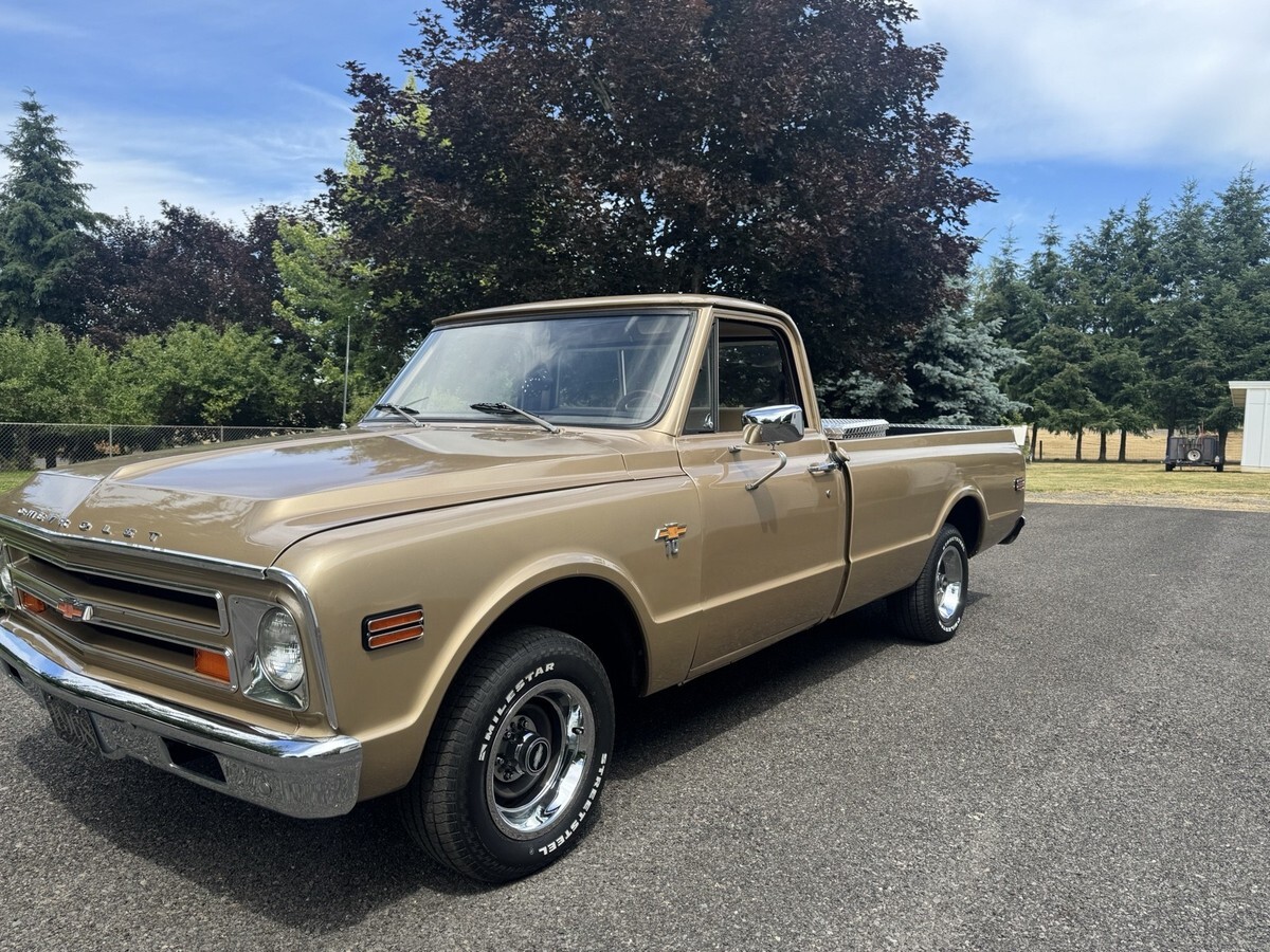 This 1968 Chevrolet C-10 is a modified vehicle with updates to the interior and drivetrain, making it a standout choice for car enthusiasts. The owner has had it for 1 year and has put 92000 miles on it, running smoothly for car show appearances. The gold color adds a unique touch to this classic vehicle, making it a standout choice for those looking for a clean and well-maintained option.