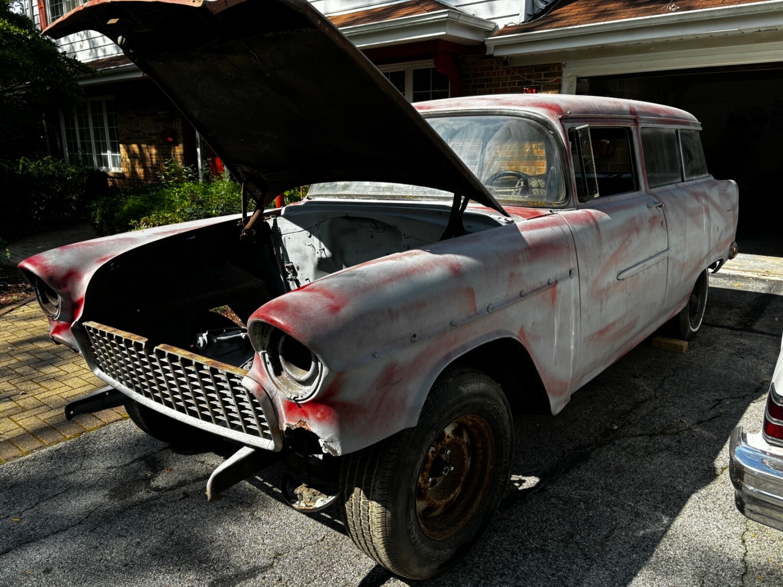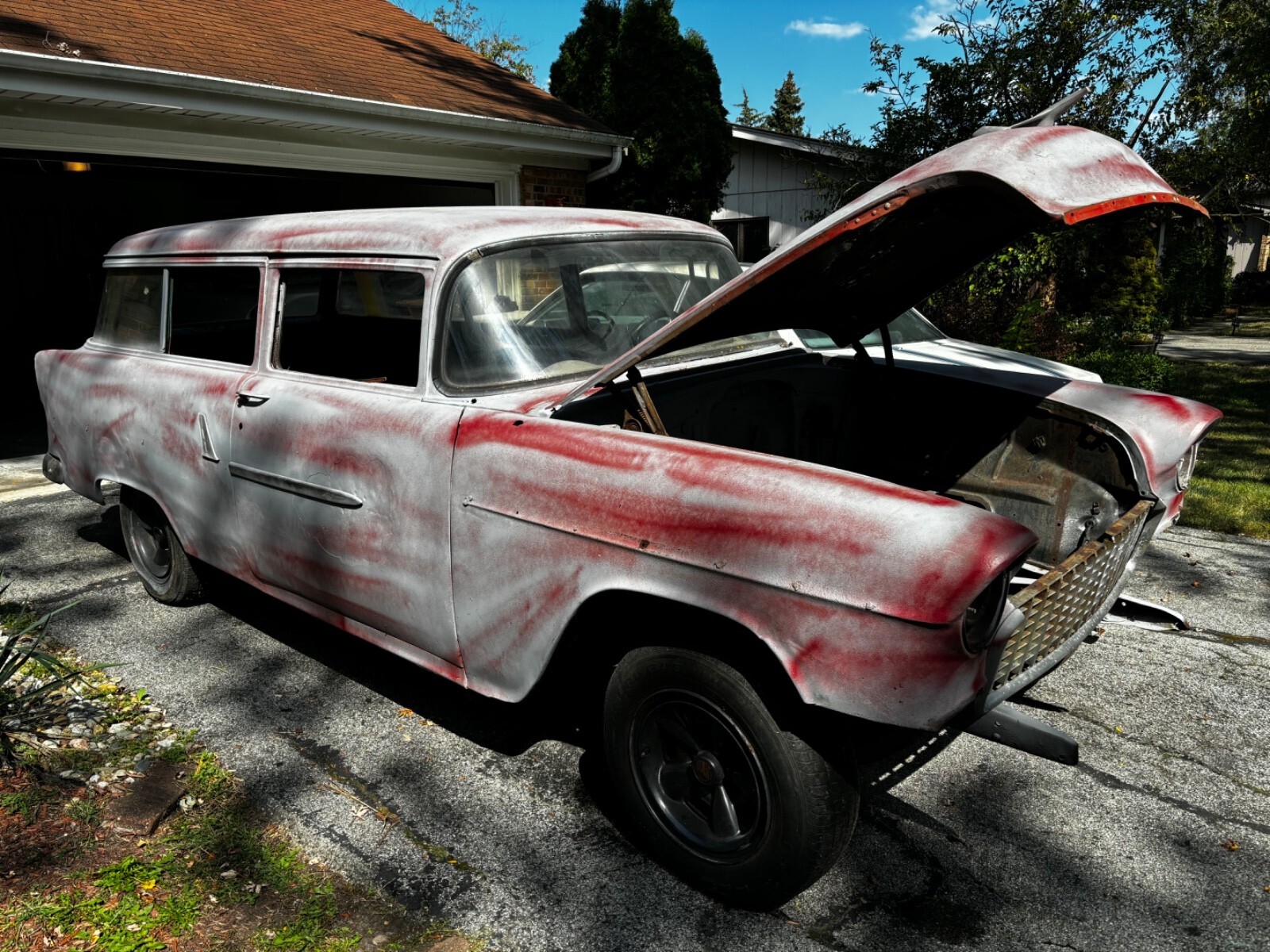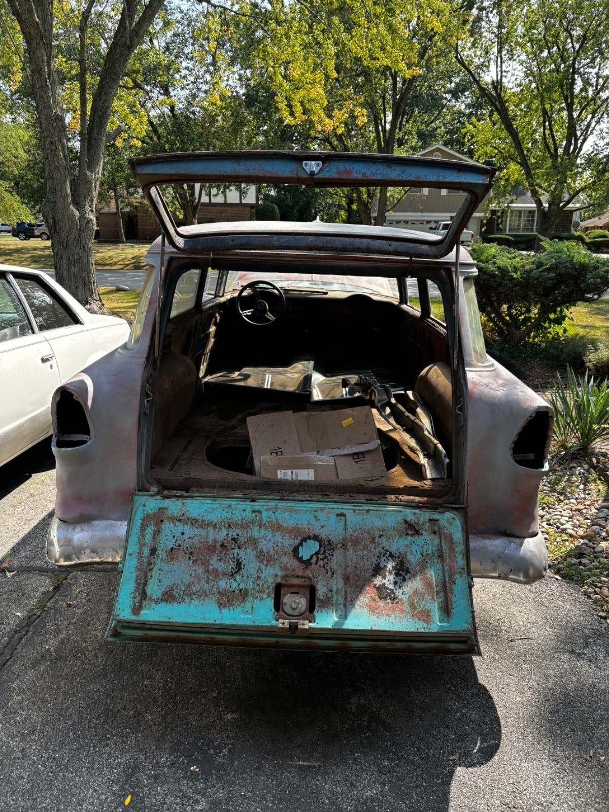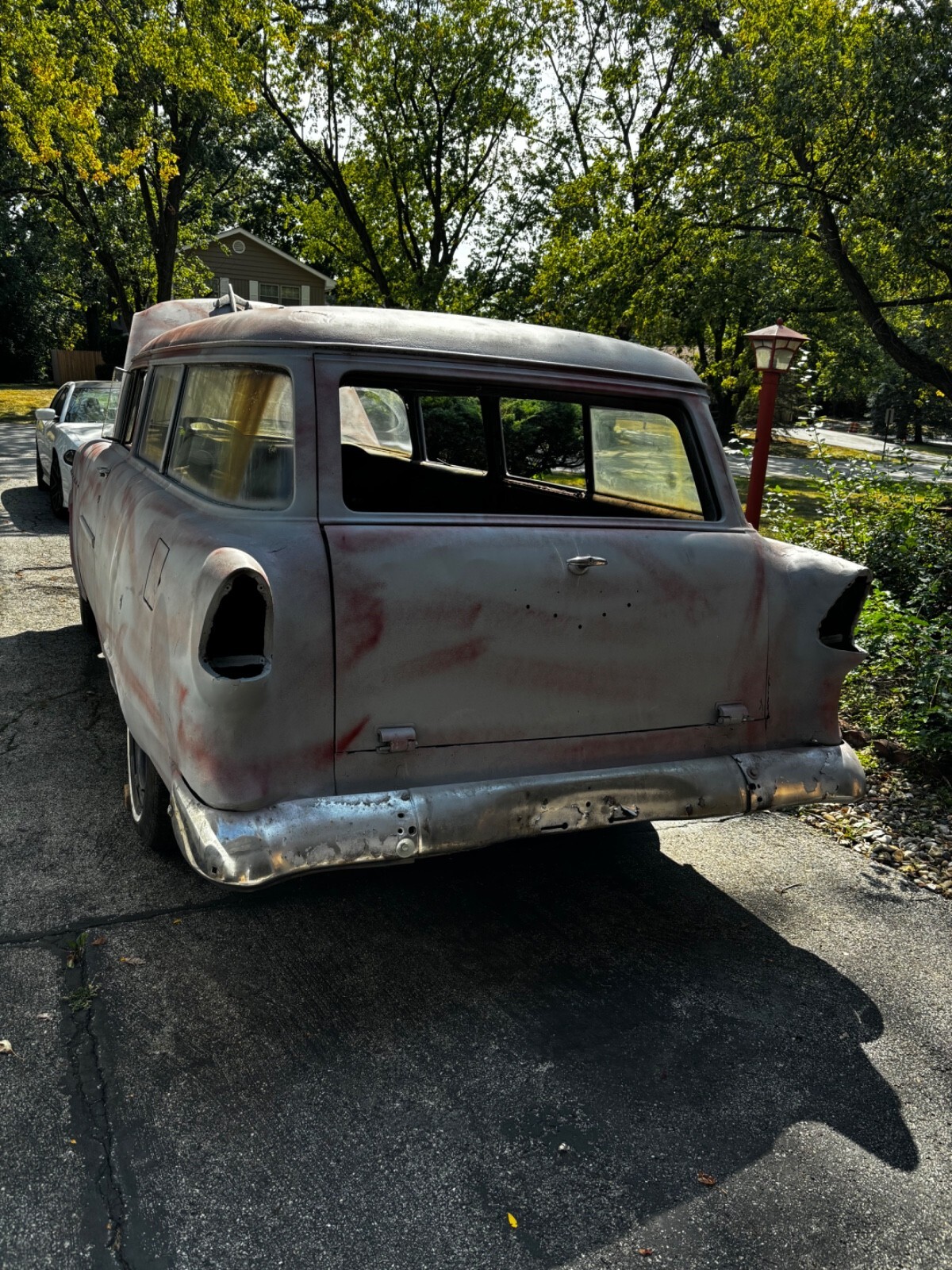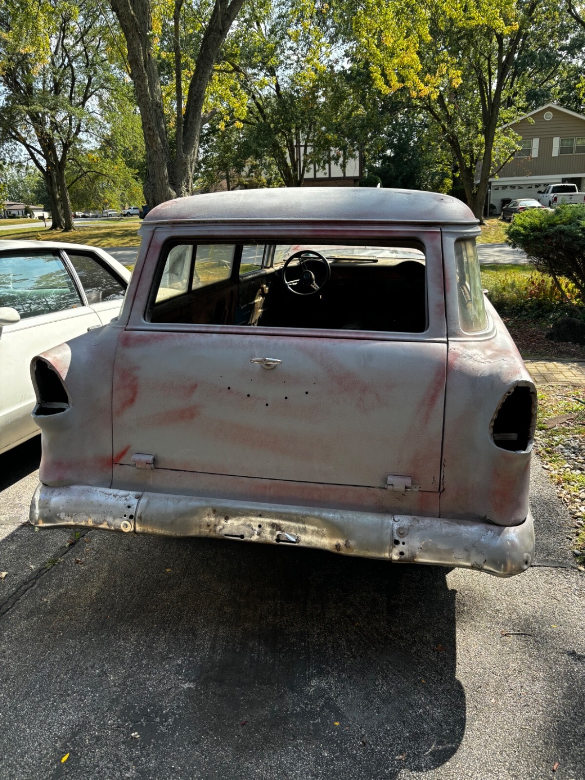 1955 2dr Chevy wagon 150 model. Is a complete restoration. Body is pretty solid due to the previous work being done before I recieved. Comes with new floor pans, braces, rear seat, front seat is there but is just the frame. have all dash pieces, light bezels and a bunch of other misc parts to put it back together. No Drivetrain. I never had it. Clear title. SOLD AS IS