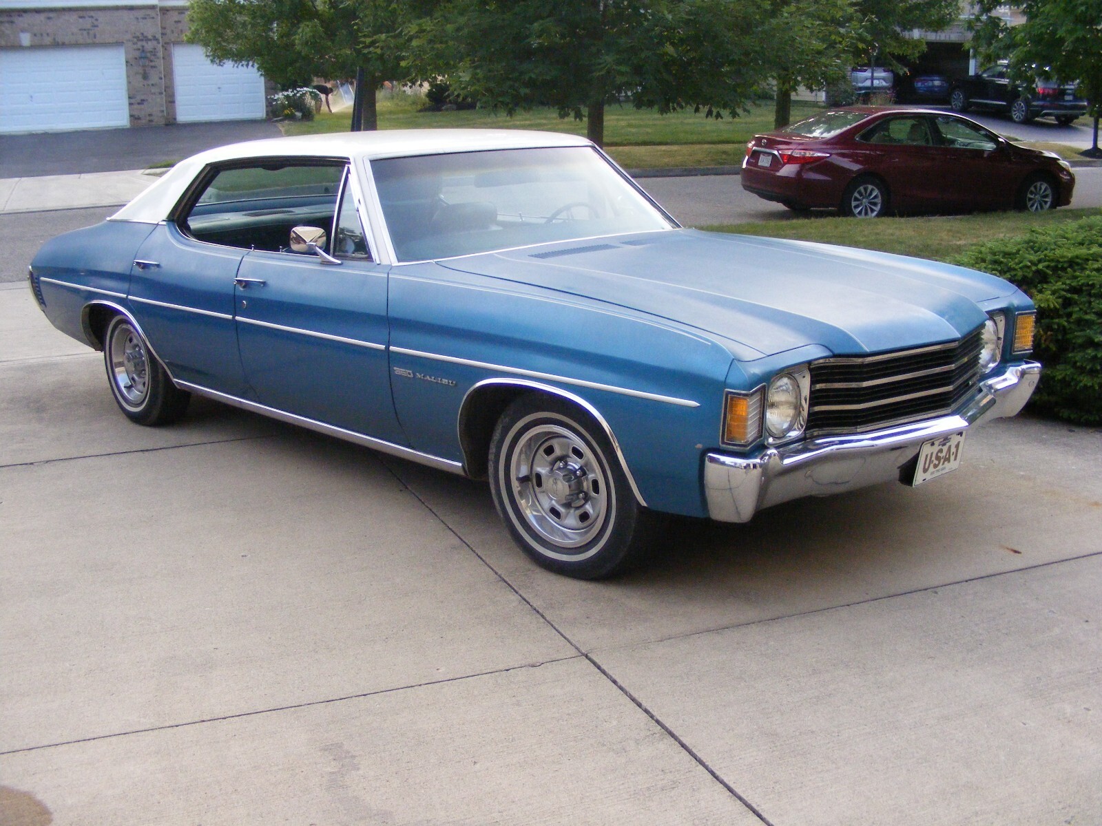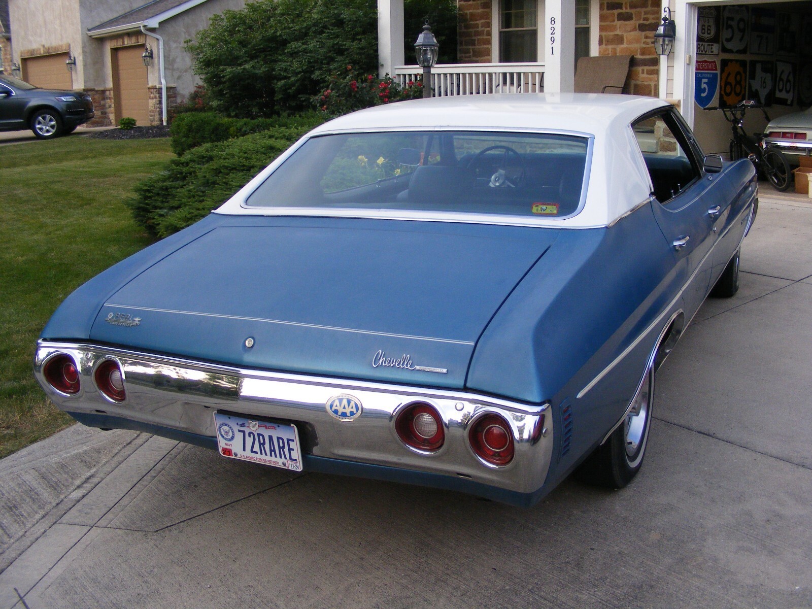 I'm selling my 1972 Chevelle Malibu sport sedan (4-door hardtop). This is a very rare and attractive body style which always attracts positive comments. Its colors of Mulsanne Blue with a painted roof in Antique White are striking and give it a very sporty appearance.According to the Protect-o-plate warranty booklet, it was ordered for use by the Wichita Zone Office of Chevrolet. It was then sold through Perl Chevrolet-Buick in Coffeyville, KS (a town of 10,000 located 100 miles east of Wichita) to a 74 year-old lady named Edna Kuntz (I believe her last name was pronounced "Koonce"). Edna took detailed notes in the back of the owner's manual about the car's maintenance history which was mostly done at Perl Chevy and Fuller Chevy in Beloit, KS. According to info I obtained during a visit to Coffeyville, she died in 1987 at the age of 89 and owned this car till the end of her life. It passed through 2 or 3 other owners before I bought it in 2021. These are some of its options: Malibu trim (1), Sport Sedan body (2), 350 2-barrel engine (3), TH-350 automatic trans (4), A/C (5), power steering (6), power brakes (7), tinted glass on all windows (8), tilt steering column (9), sport steering wheel (10), floor mats (11), AM-FM stereo with 4 speakers (12), painted roof (13), side impact strips (14), Rally wheels (15), white-wall tires (16), rear defog (17), trunk mat (18), trunk light (19), right side mirror (20), F41 sport suspension (21) Note: I have never seen another 4-door GM car with sport suspension...it rides beautifully and handles like a musclecar! This is what is referred to as a "hard-loaded" car and was probably used by the Wichita Zone Office manager to visit local dealerships (during cleaning of the car I discovered a pen from the St Louis Zone Office which will be included with the car's documentation). The car's original AM-FM stereo has been replaced by an AM radio that sits in the original radio's location. Below the dash I installed a Sony AM-FM-CD-USB stereo with 4 Pioneer Audio speakers...it sounds awesome! I would dearly love to keep this car, but my wife has stage 4 cancer and I'm selling several cars as a result. This is a beautiful driver that has many new parts: brakes, shocks, battery...it doesn't need anything other than paint and interior work. It draws favorable attention wherever it goes. I can be reached at 614 sevensix 958 sixtyeight. I expect a call within 24 hours of the end of the sale and a $500 down payment. Payment is by cash in person and you will receive a clear notorized Ohio title. Thanks and happy bidding.
