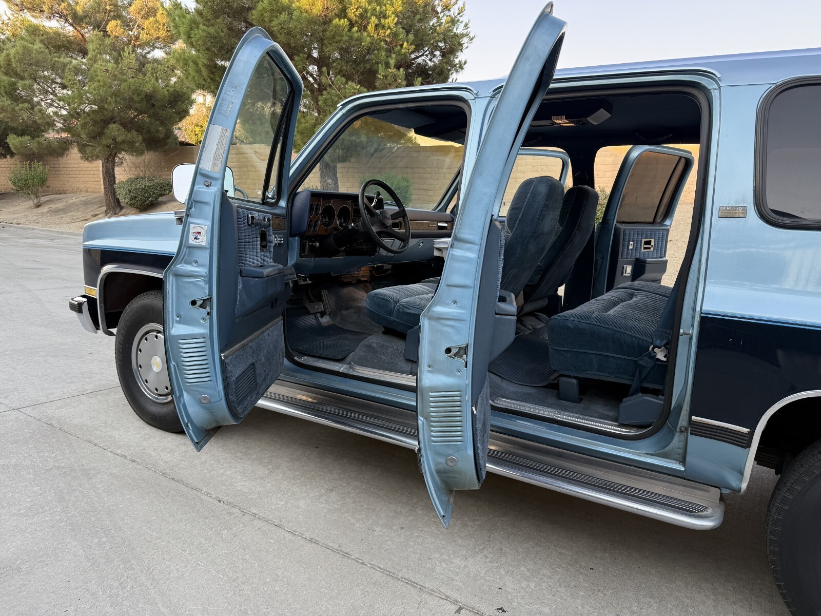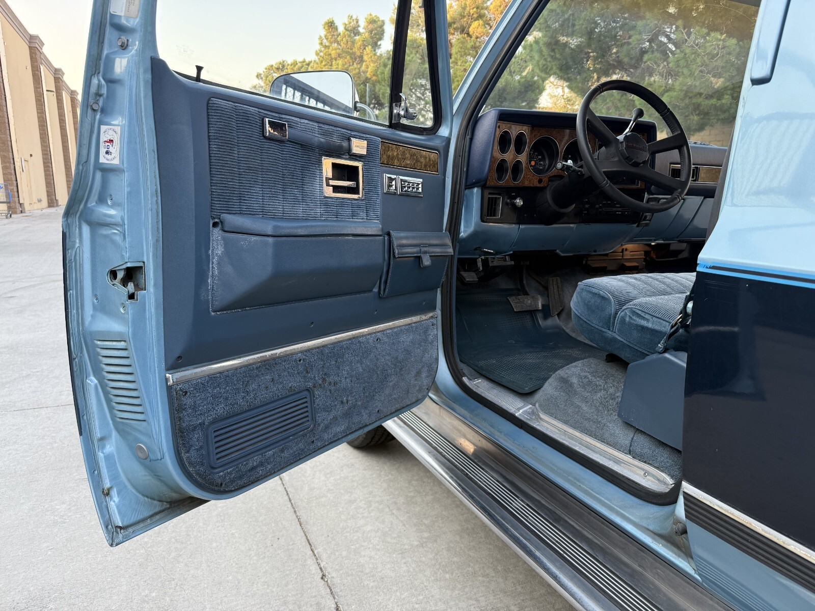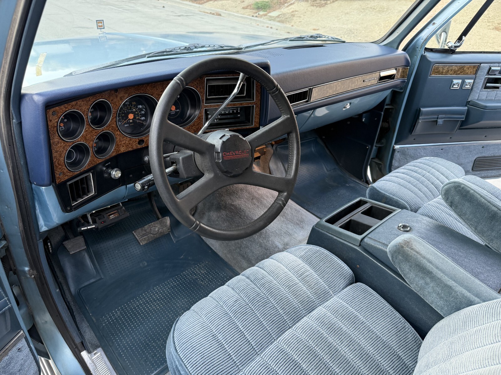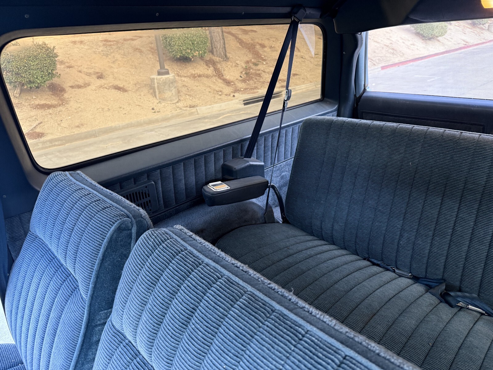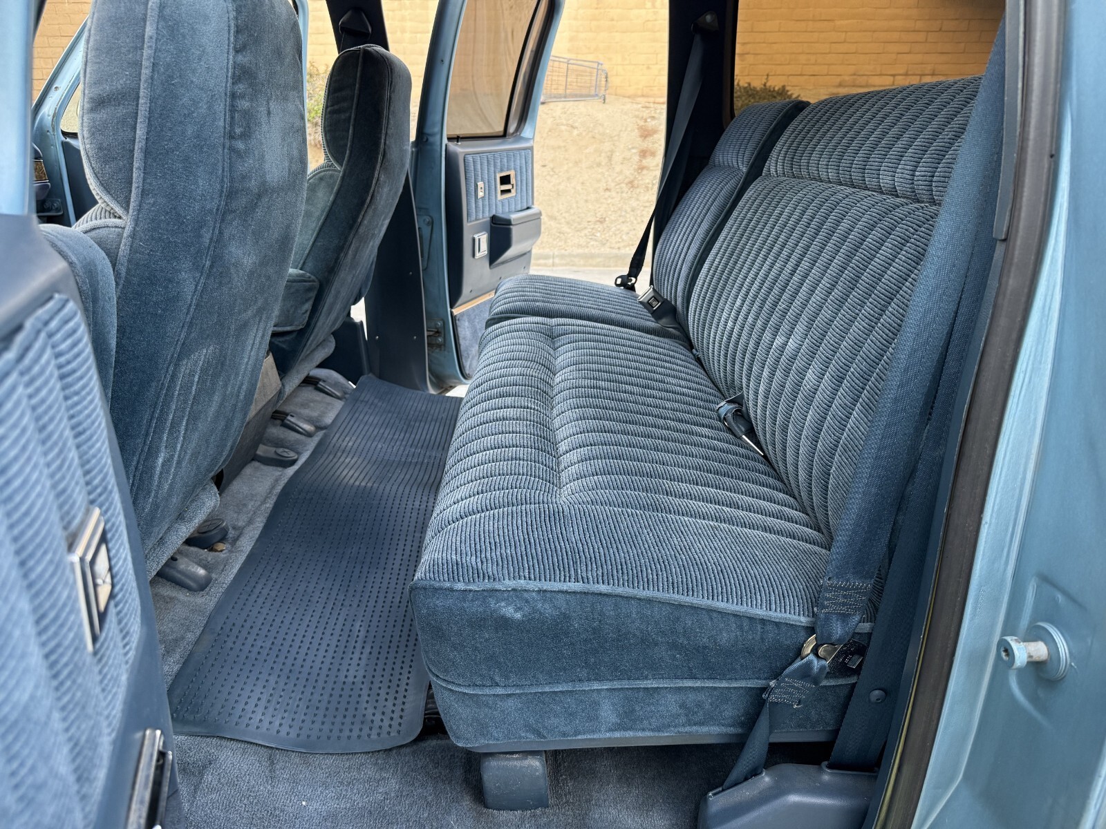 Interior is in great shape.. still smells like new.. no pet, no kid, non smoker owner.. the blue fabric seats are in great shape, the headliner was just redone and looks excellent, carpets and door panels are all in great shape.. all gauges work in orde, dash looks grea, all interior lights and electronics work in order, horn work, cruise control work, all power windows wor, power door locks work intermittent ( switch ? ) front and rear A/C works great . rear gate window works.. heater does not work.. factory radio turns on but will need a new antenna.. factory books and papers.. spare tire and tools all intact.. overall a very nice clean interior ..