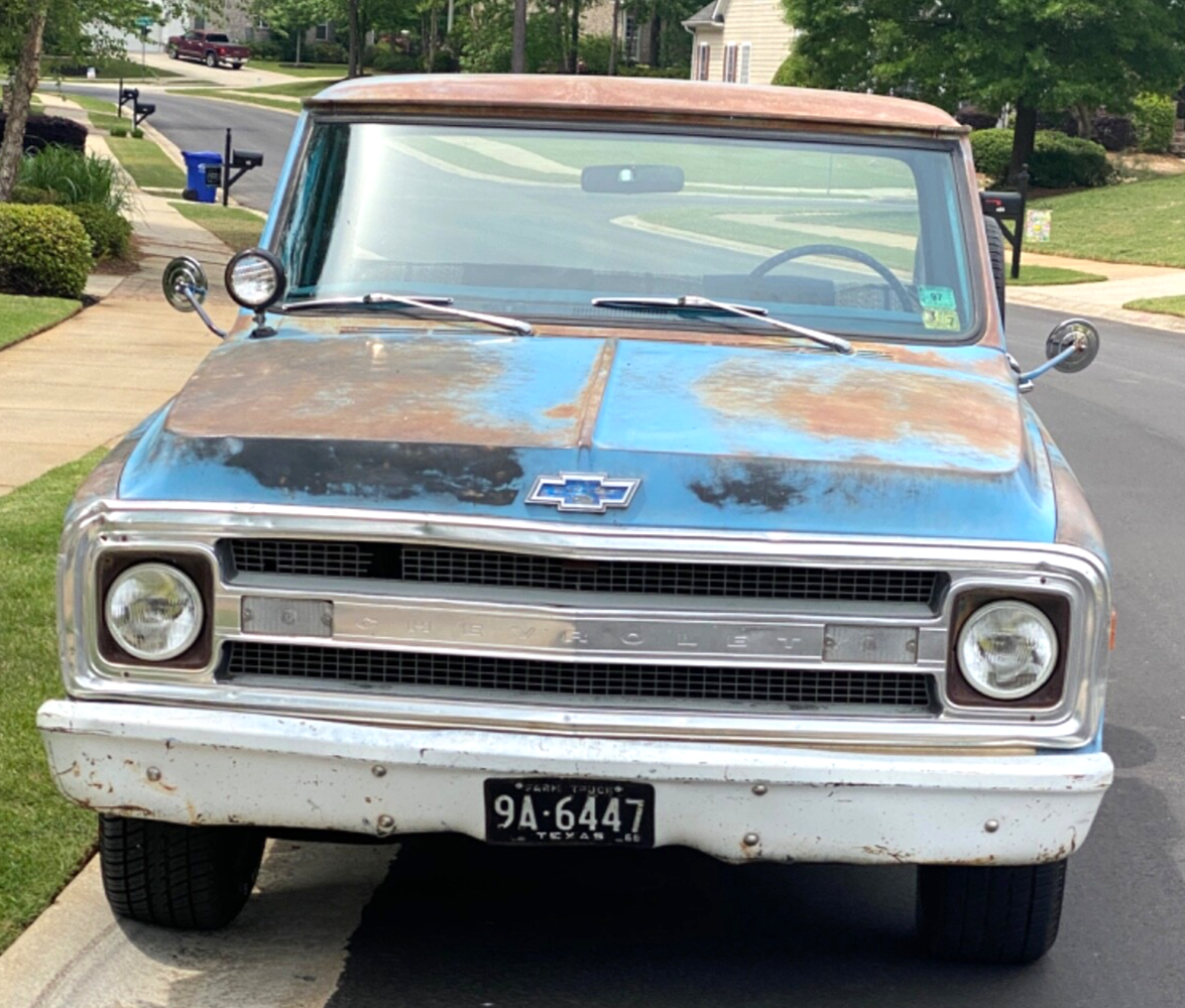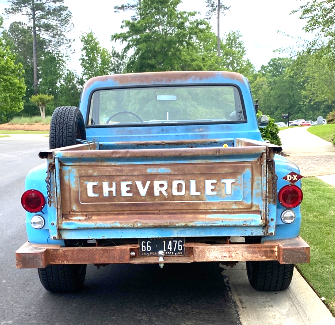 1969 Chevrolet Short Bed Step-side Pickup Truck. Original Six Cylinder 250, 3 speed on the column. Texas truck that is very solid with all original panels. Off road since 97, dry stored. Original light blue paint with incredible original weathered Texas patina being maintained. No fake patina, linseed oil or other foolishness. Very cool - it is all genuine with great eyeball.Original radio delete plate & ashtray.Rebuilt most everything from front to back with new parts including oak bed. Smooth running inline engine with no noises or smoke or known issues with strong even compression. Original 3:73 12 bolt rear end. Excellent running and fun driving. Draws attention everywhere It goes. Drive anywhere with confidence. This is a great running, starts every time, good old truck.