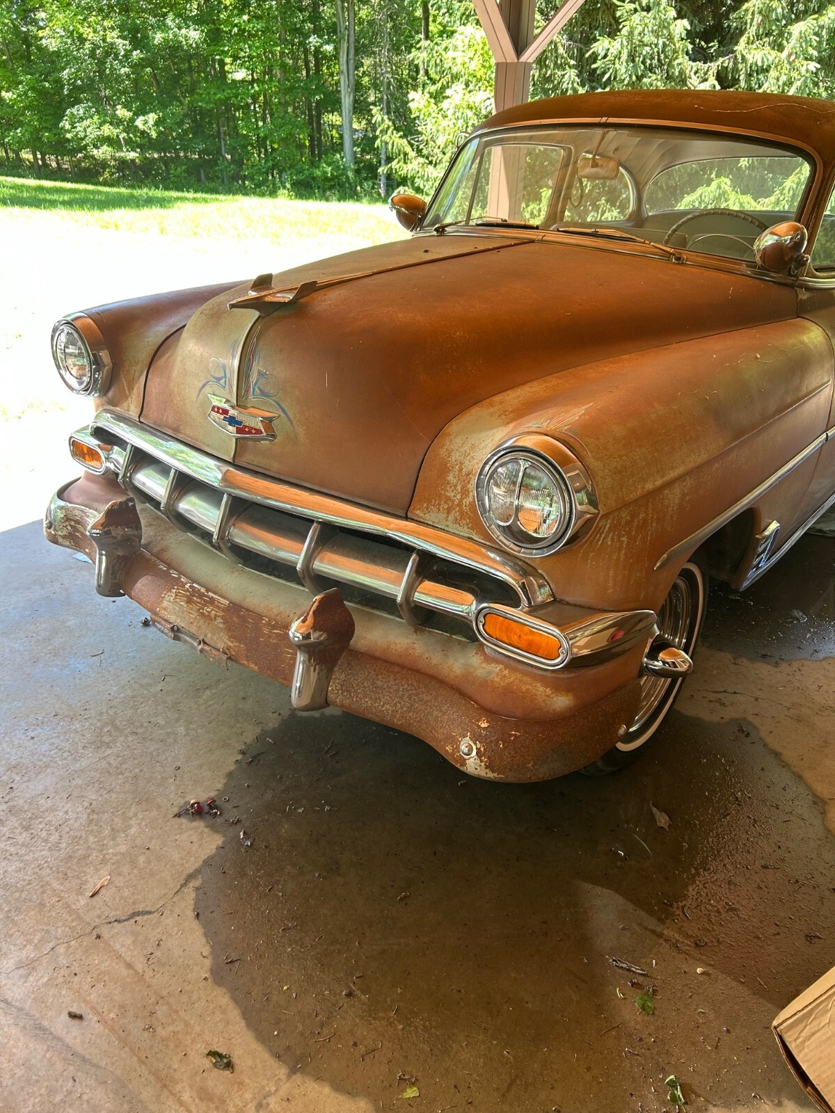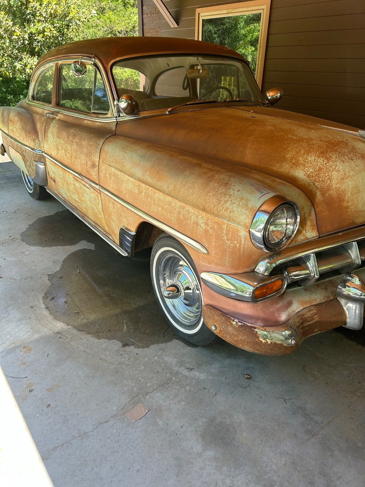 My cousin owns this very nice 54 Chevy. 235 6 cylinder rebuilt and runs like new. It’s a three on the tree and shifts great. Runs and drives very good. I’m listing it for him. Thx for looking!