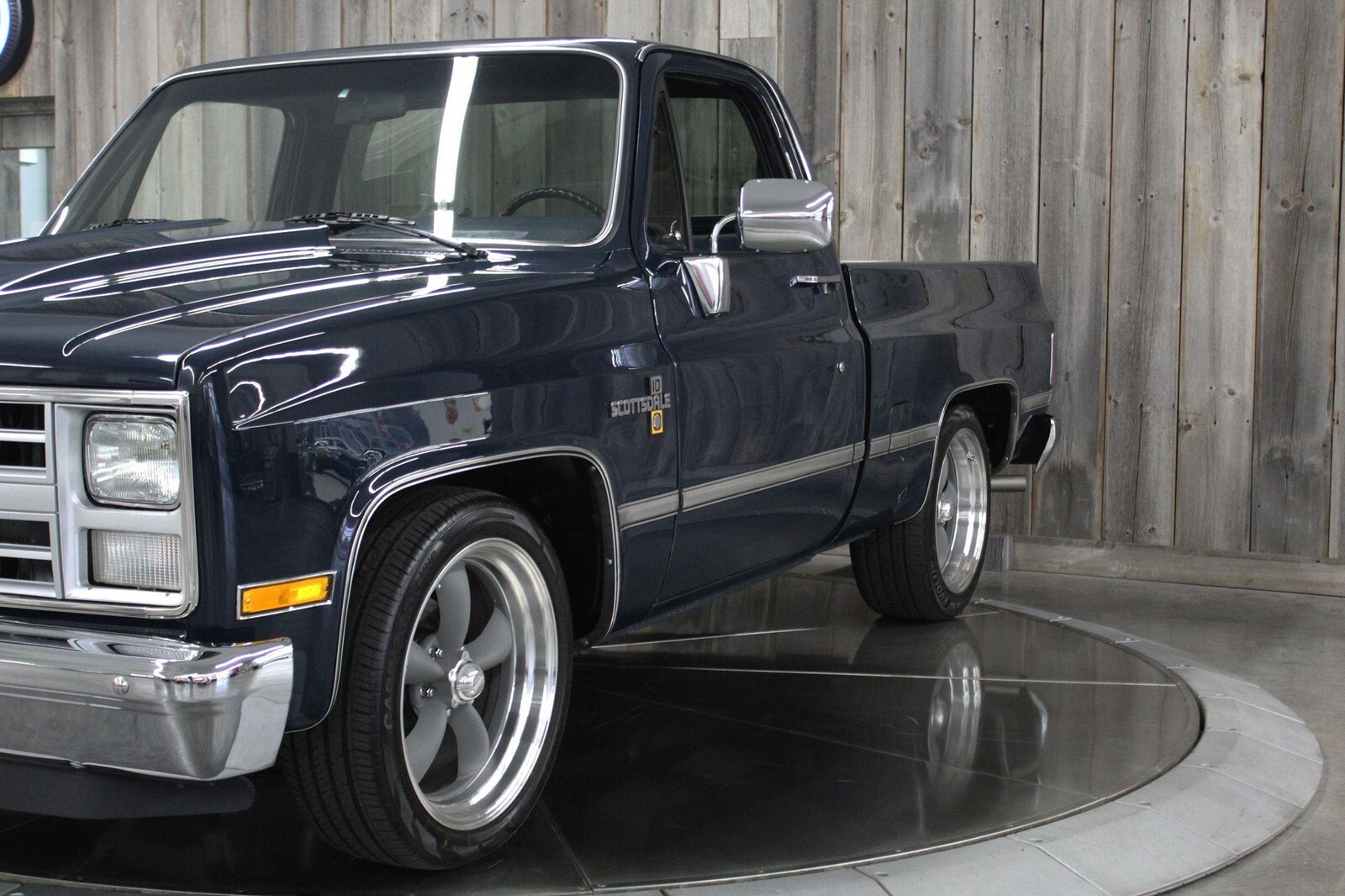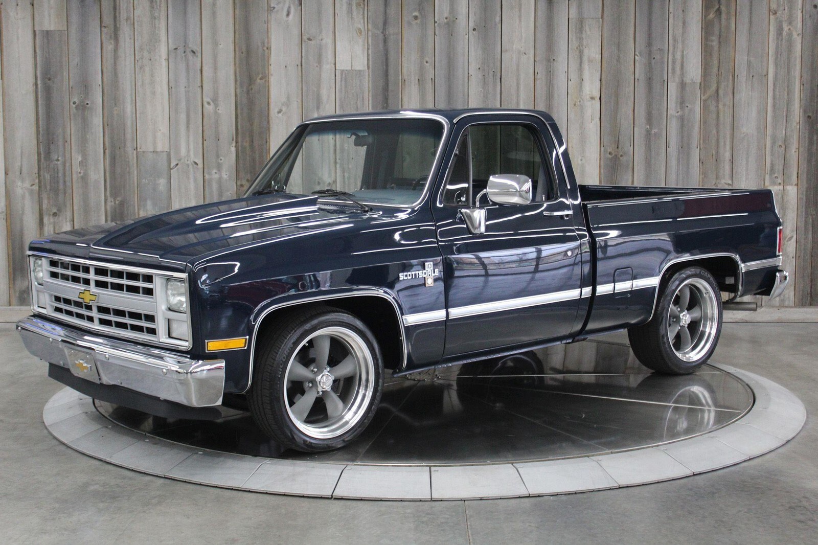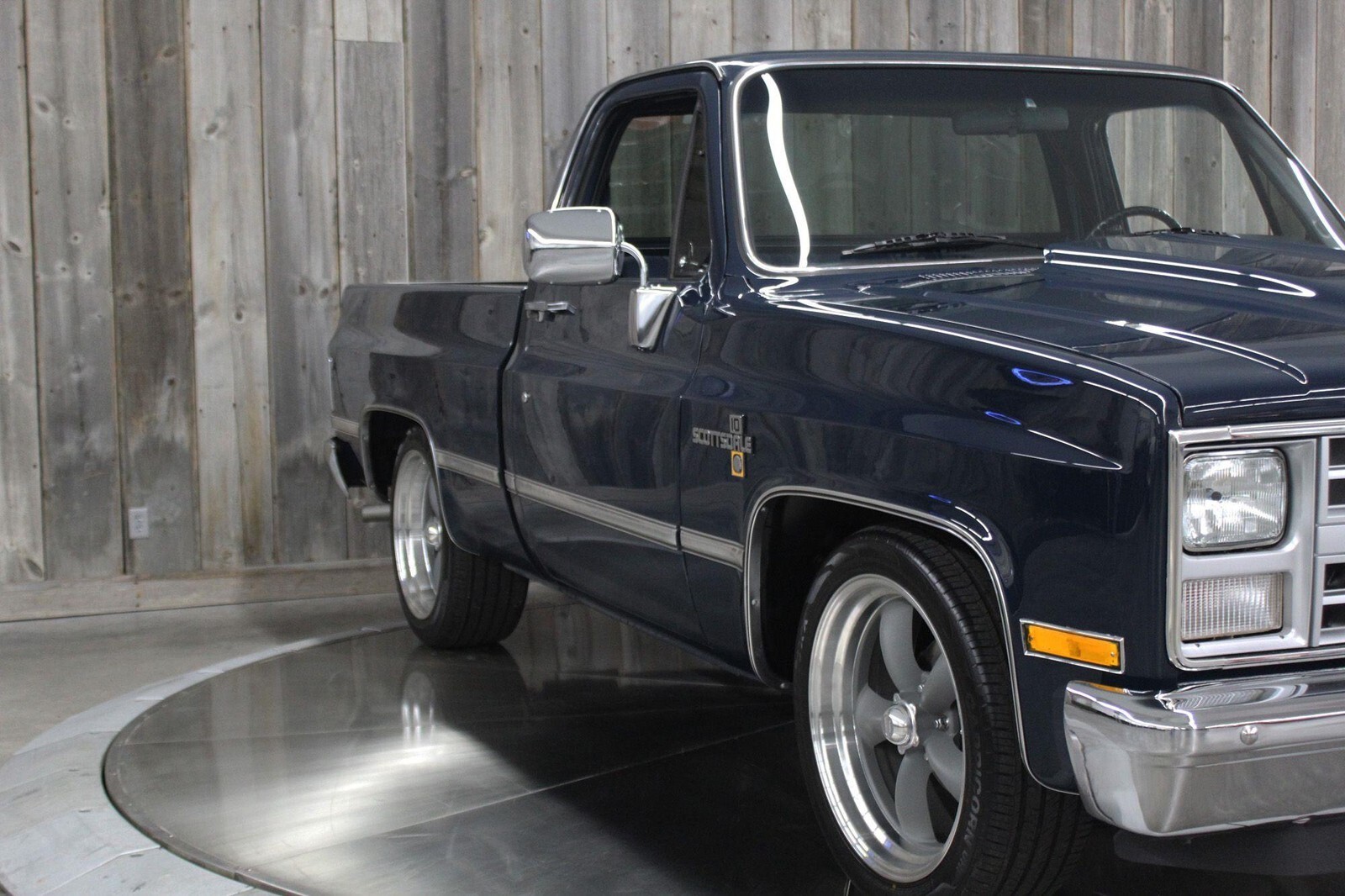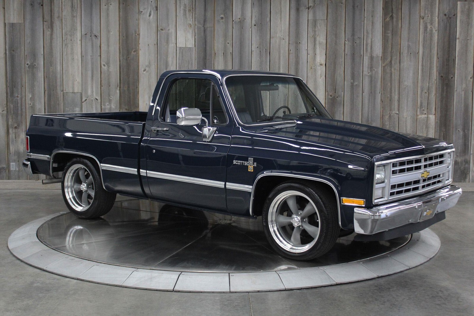 Restored C10 Scottsdale Square body Pickup with a 6.0 LS conversion. Fully toughened up 4L60E 4spd. Automatic transmission to withstand the power of the LS. The transmission was professionally fortified in December 2024 using a Trans-Tec Overhaul kit, Wide 2-4 Band, 9 Clutch 3-4 Pack, Corvette Servo, Beast Sun Shell, Superior Shift Kit, and Precision Reman Torque Converter. Summit aluminum intake, Fitech EFI throttle body, polished aluminum coil covers, cold air intake, and Hedman Headers. Metal Cowl induction hood. Modern AC unit (blows cold), new alternator, heater works, power brakes, and power steering. Dual electric fans, aluminum radiator, new shocks, braided stainless steel transmission cooling lines. New battery, new front inner fenders. New rubber weather strip and seals. All new headlight bezels, and new front grill. Beautiful new Midnight blue paint, new front and rear chrome bumpers, new emblems and trim. New front and rear PGW glass, new PPG side glass but they have a few scratches. New outside mirrors, tailgate cap, new brushed aluminum tailgate decorative trim panel with CHEVROLET script, new American racing Torque Thrust wheels, Front tire size 245/45 R20 rear tires 275/45 R20. There is a new gas tank, a new dual exhaust, and a new aftermarket AM/FM radio with newer speakers, seat belts, and Dakota Digital gauges. New door panels and dash pad. New black carpet, rubber floor mats with Chevy logo. New leather upholstered bench seat. The truck runs great, its VERY strong, it drives smoothly, and sounds fantastic. Did I mention POWER, this thing Moooves! Miles on the restoration are 42 miles. (Validate entire description for accuracy before bidding/purchasing)
