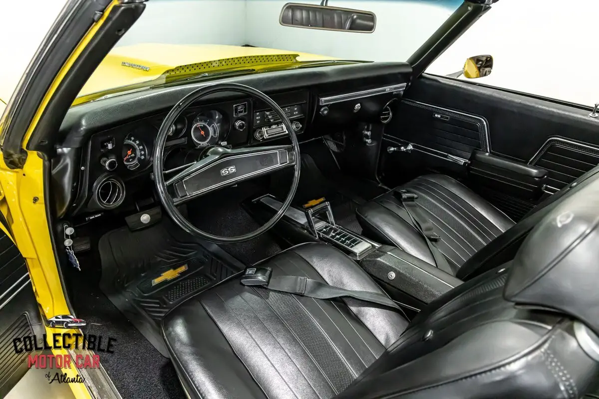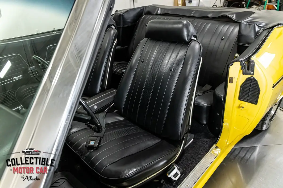 Finished in a vibrant Yellow paint that highlights its bold body lines, this Chevelle commands attention wherever it goes. A 1.5-inch cowl hood adds an aggressive touch, and the like-new black convertible top-which is power-operated-offers convenience and style. Clean glass all around completes the crisp, well-sorted exterior presentation.