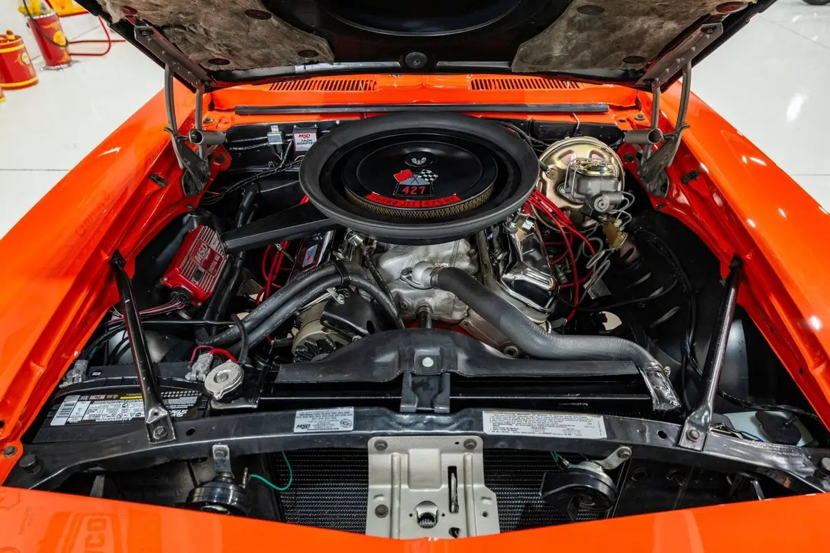 This particular tribute ups the ante with a 1969 iron block 427 featuring aluminum heads to spec as the famous L89 427 option. In addition, is has been upgraded with an MSD ignition system, a bigger cam, and ceramic-coated headers paired with a 3" exhaust pipe system. It has significantly more power than a stock L72, making this car an incredible sleeper.