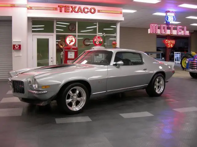 Custom Built Pro Street, beautiful Hugger orange paint, custom black interior, 383 ci stroker engine, Holley Performance dual feed 4 bbl, polished aluminum intake, aluminum heads, Hooker ceramic headers, MSD Pro billet ignition, K&N filter top air cleaner, billet valve covers, Milidon oil pan, power steering, Wilwood power 4 wheel disc brakes, billet pulley’s & brackets, aluminum radiator with electric fan, 350 reverse manual valve body transmission, custom bucket seats, TCI shifter, tilt column with Grant wheels, Autometer custom gauge cluster, custom sounds system, roll cage with removeable side bars, X-pipe dual exhaust, frame connectors, narrowed 9” rear axle with 3.89 posi, ladder bar with adjustable coil-over suspension, 29X18.5-15LT Michey Thompson Sportsman rear tires, 185/75R14 fronts, 14 & 15” chrome American Racing Torque Thrust wheels, custom fuel cell, front & rear spoilers, cowl hood, split bumper front end, One Bad Bowtie!