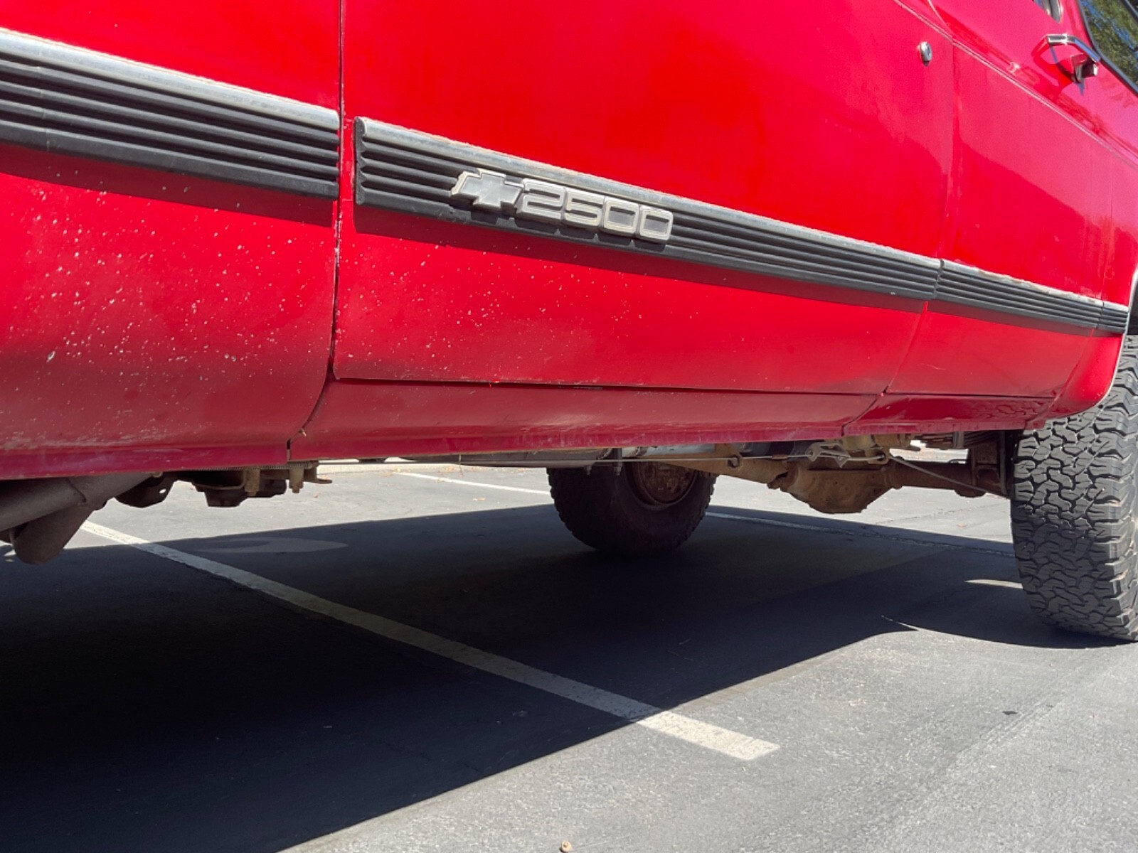 Body: I believe the truck has been painted once, the reason is the clear coat is almost all gone accept the right rear quarter and it just looks newer than 1990. ZERO rust, the frame is rust free, body mounts everything is rust free.