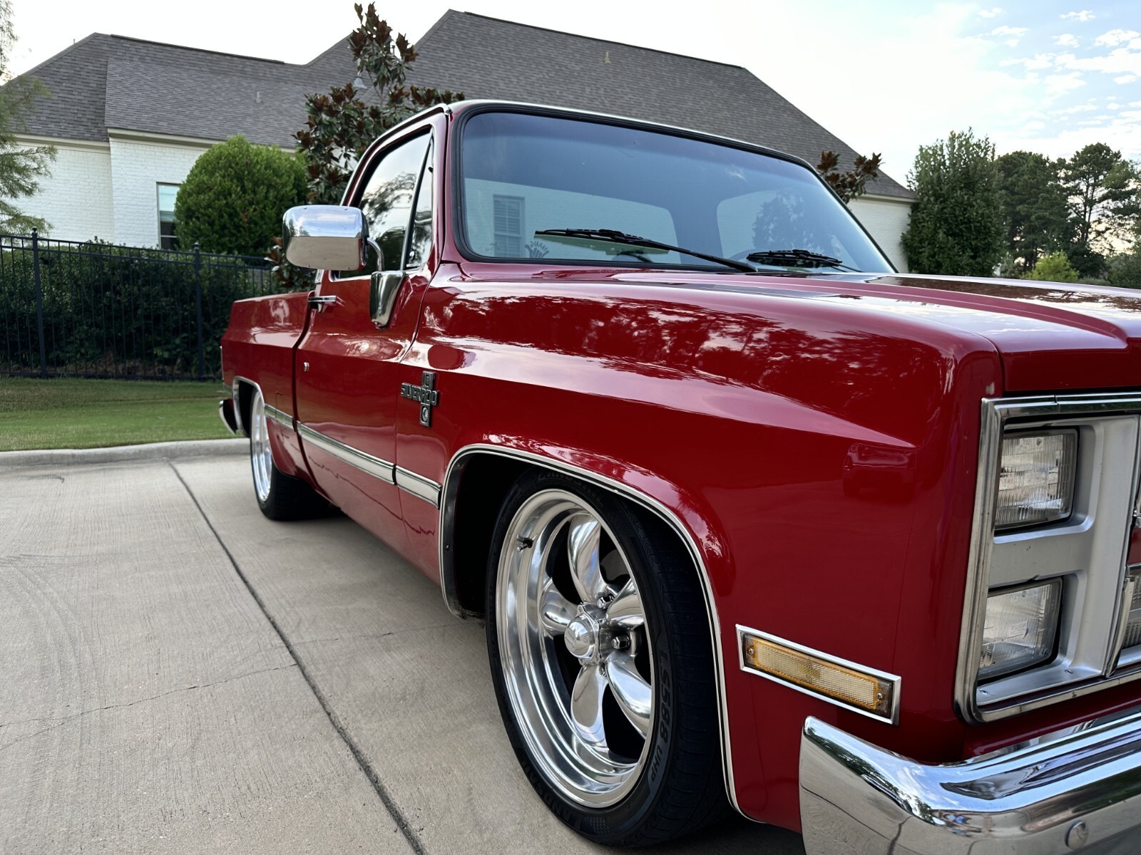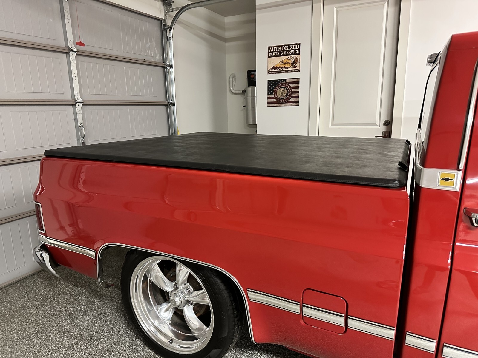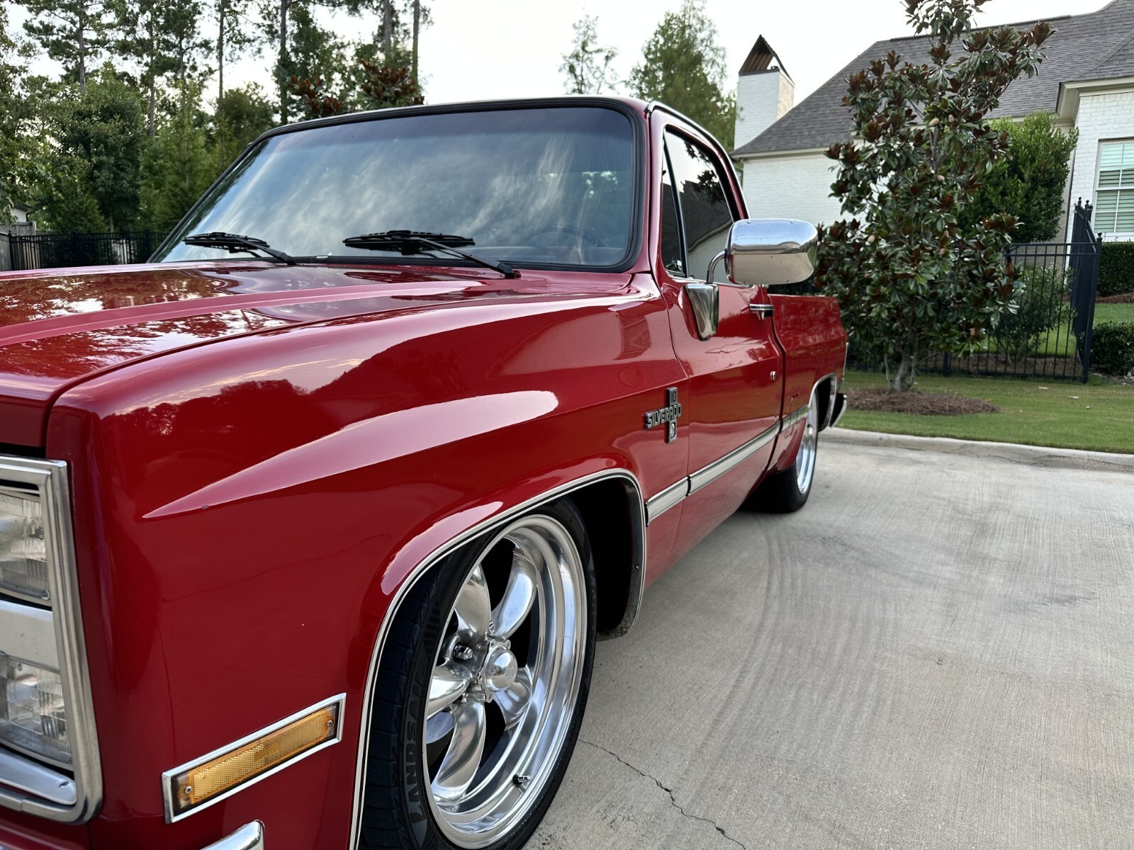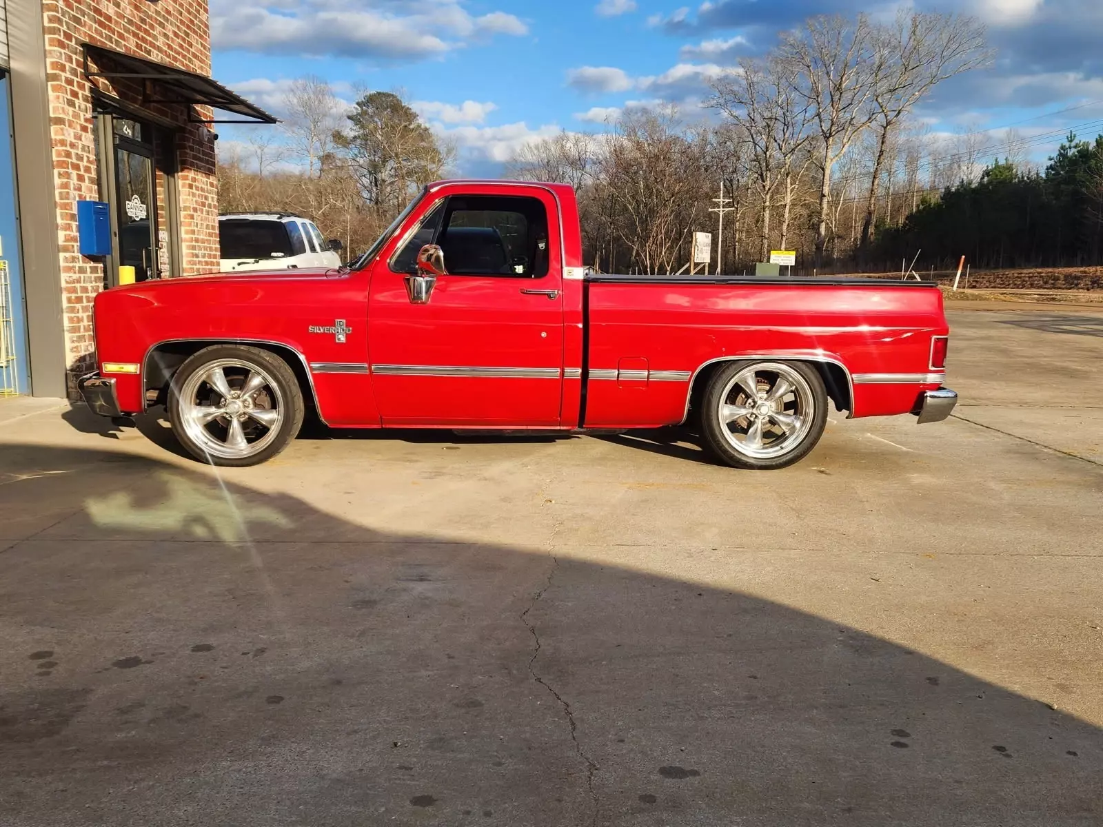 Last of the Square-Bodies! This 1987 Chevrolet Silverado R10/C10 is painted in GM Bright Red driver quality paint.Optionsinclude: red interior with red Snowden custom bench seat and cup holders, Retro Sound with Bluetooth radio, power windows, power locks, cruise control, polished steering wheel with chrome tilt lever, chrome shift lever, new carpet and carpet floor mats, glass is good condition with medium tinting, folding black vinyl bed cover with plastic bed liner, American Racing Torque 20" polished chrome 9" front and 11" inch rear wheels, new Lansing 45x20 tires, QA1 Coil-Over front suspension, professionally lowered 4" front and 6" rear. The powerplant is aGM 6.1L LS Vortex engine with "shorty" headers to include 3" welded dual exhaust pipes that turn down past rear axle and Flow-Master series 50 mufflers, with a fuel-saving GM L480 4 speed overdrive, automatic transmission. The Odometer shows 11,000 miles with 17,000 miles on engine and transmission. Drive shaft was professionally balanced to ensure smooth ride. This is a superb running truck in excellent driving condition. Full recent service so it is ready to drive and enjoy!