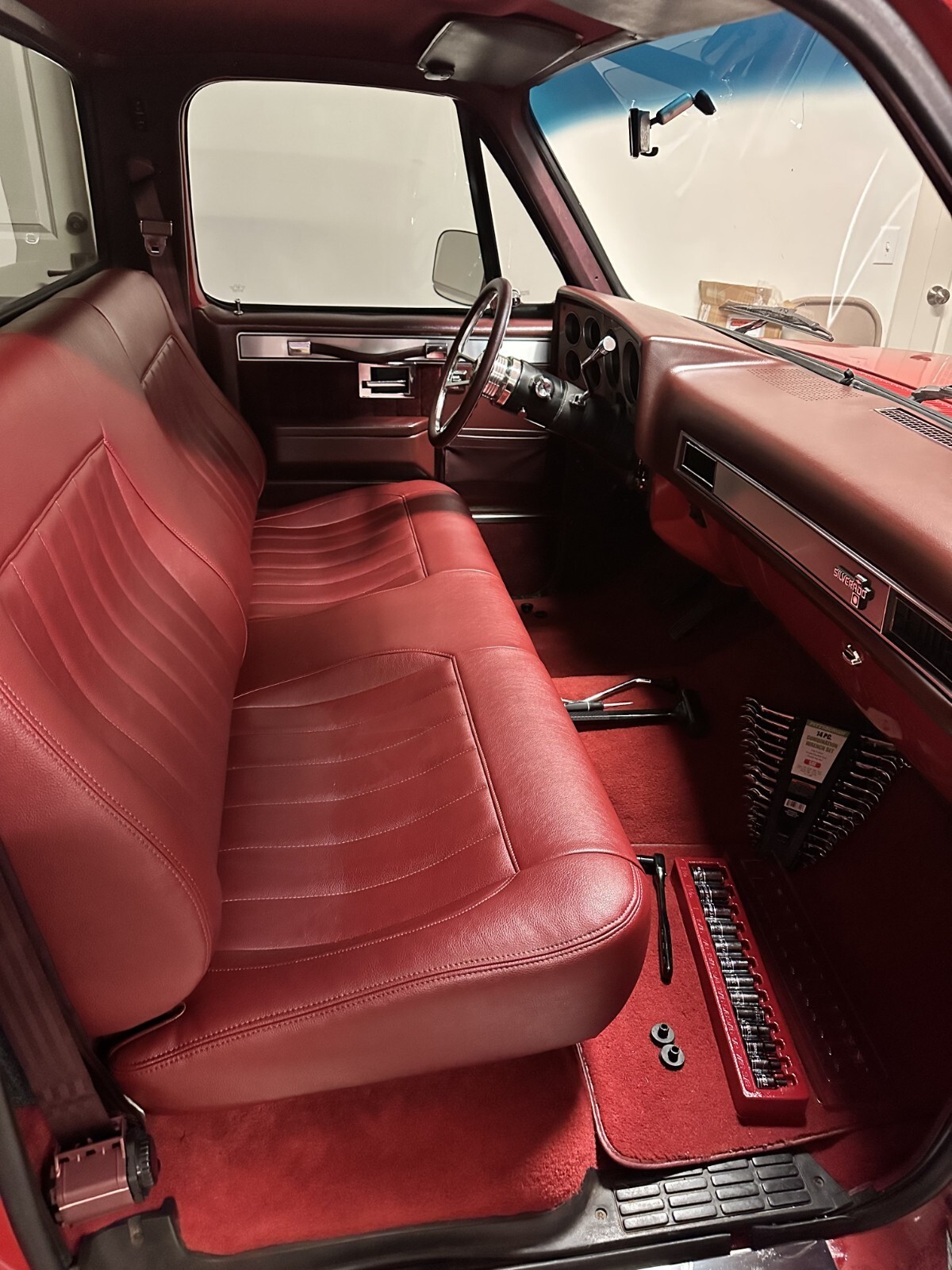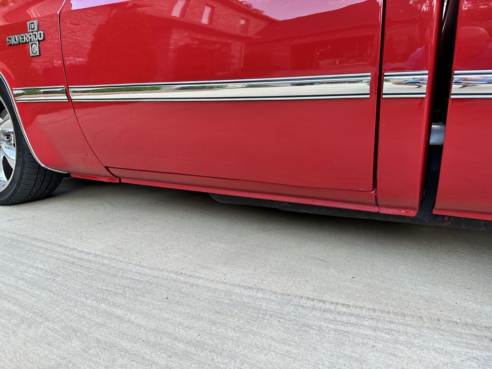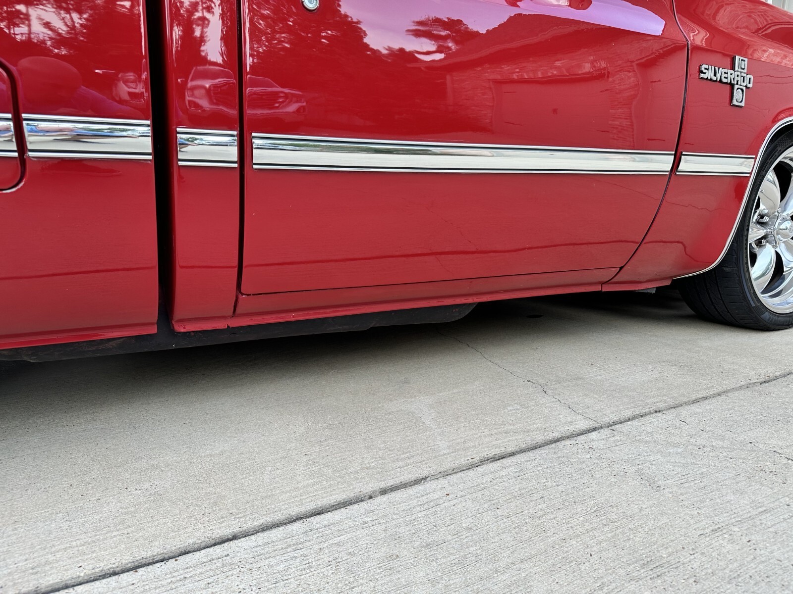 Last of the Square-Bodies! This 1987 Chevrolet Silverado R10/C10 is painted in GM Bright Red driver quality paint.Optionsinclude: red interior with red Snowden custom bench seat and cup holders, Retro Sound with Bluetooth radio, power windows, power locks, cruise control, polished steering wheel with chrome tilt lever, chrome shift lever, new carpet and carpet floor mats, glass is good condition with medium tinting, folding black vinyl bed cover with plastic bed liner, American Racing Torque 20" polished chrome 9" front and 11" inch rear wheels, new Lansing 45x20 tires, QA1 Coil-Over front suspension, professionally lowered 4" front and 6" rear. The powerplant is aGM 6.1L LS Vortex engine with "shorty" headers to include 3" welded dual exhaust pipes that turn down past rear axle and Flow-Master series 50 mufflers, with a fuel-saving GM L480 4 speed overdrive, automatic transmission. The Odometer shows 11,000 miles with 17,000 miles on engine and transmission. Drive shaft was professionally balanced to ensure smooth ride. This is a superb running truck in excellent driving condition. Full recent service so it is ready to drive and enjoy!