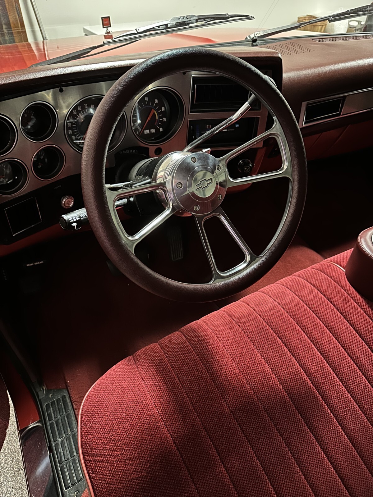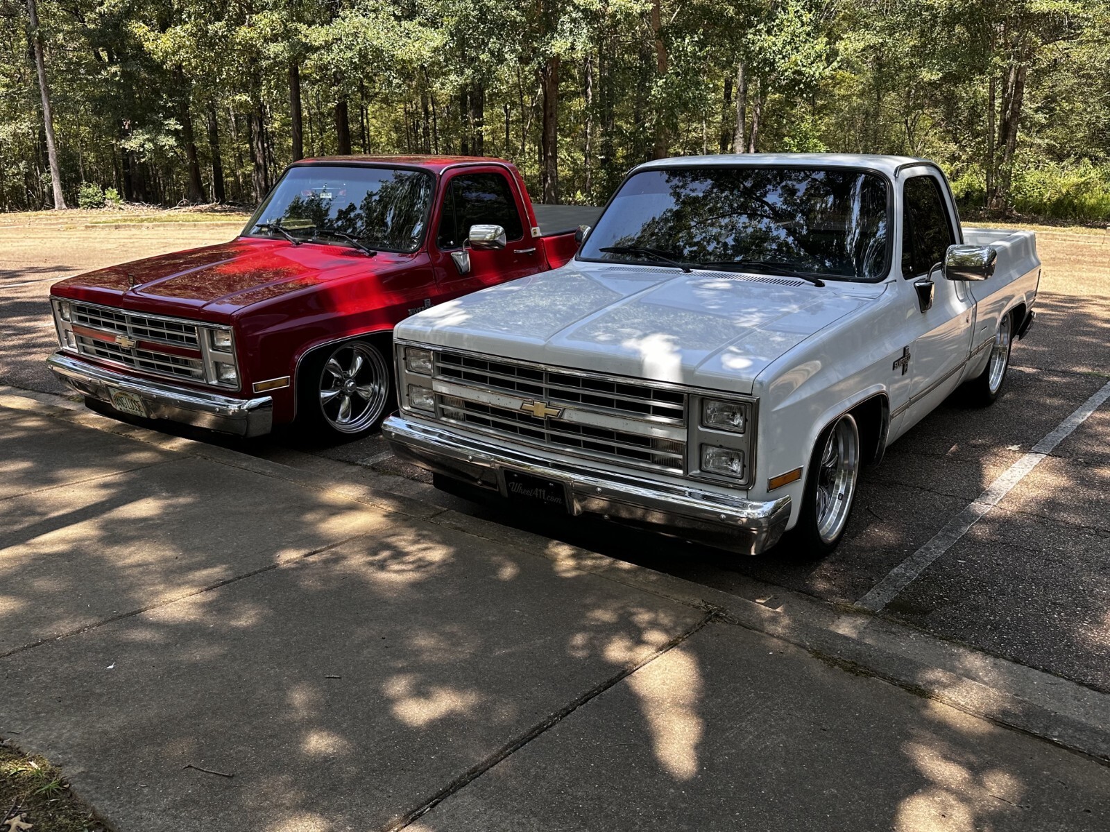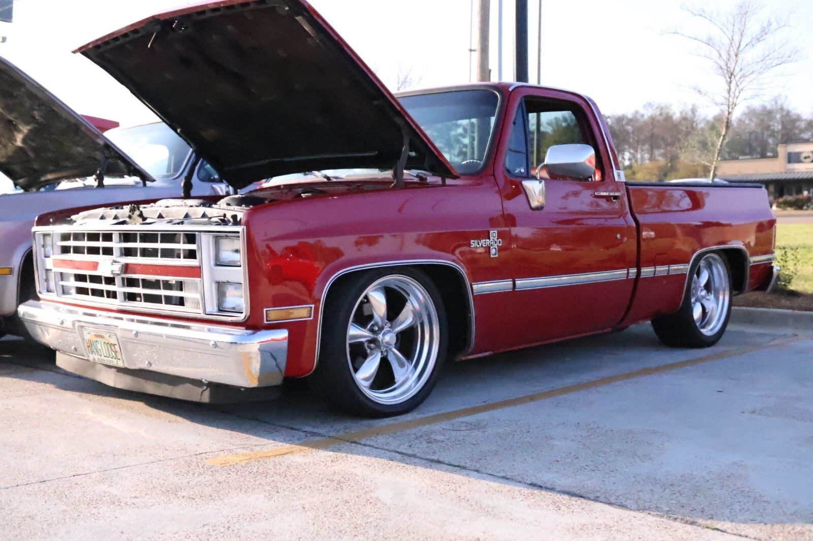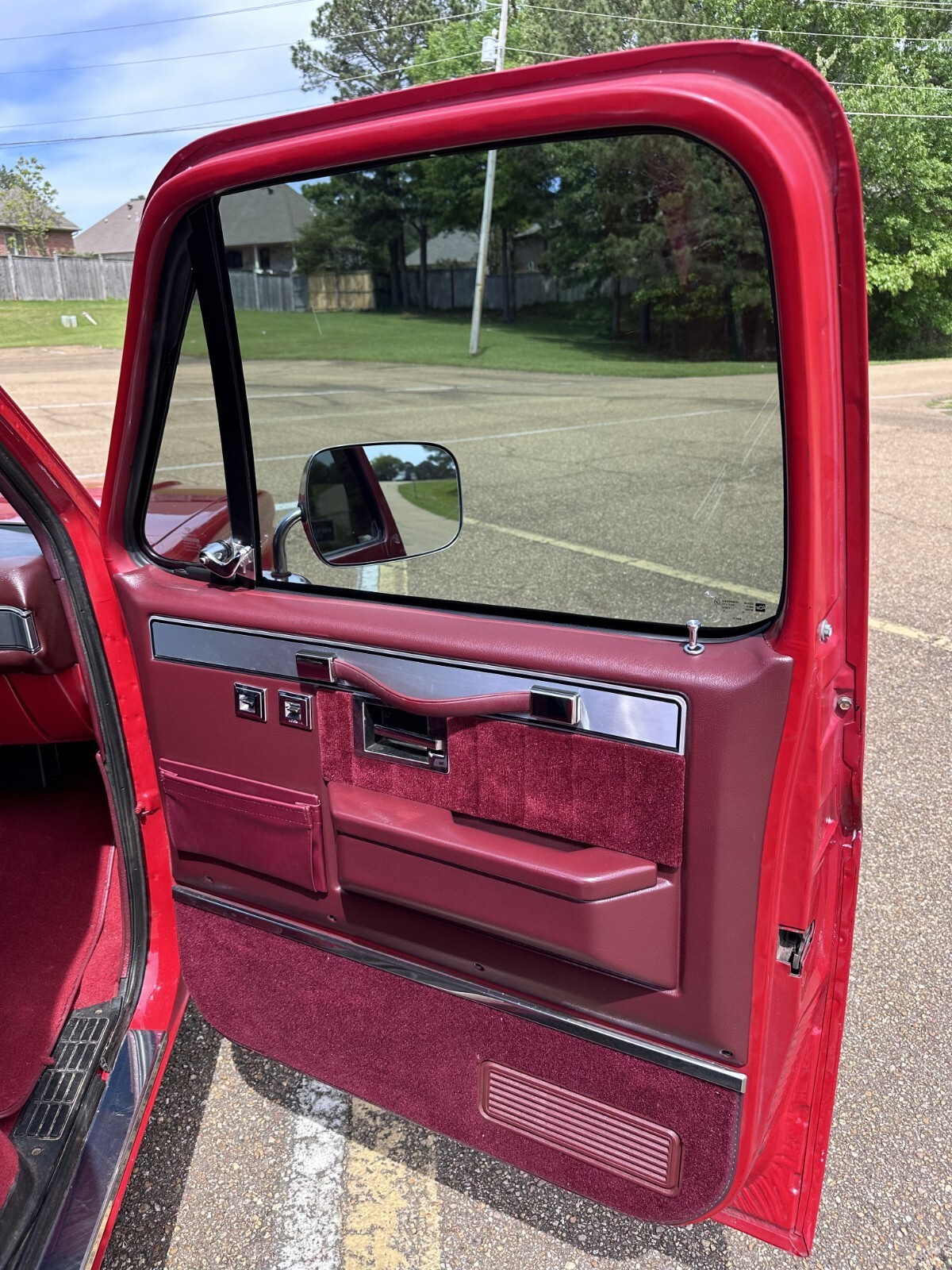 Last of the Square-Bodies! This 1987 Chevrolet Silverado R10/C10 is painted in GM Bright Red driver quality paint.Optionsinclude: red interior with red Snowden custom bench seat and cup holders, Retro Sound with Bluetooth radio, power windows, power locks, cruise control, polished steering wheel with chrome tilt lever, chrome shift lever, new carpet and carpet floor mats, glass is good condition with medium tinting, folding black vinyl bed cover with plastic bed liner, American Racing Torque 20" polished chrome 9" front and 11" inch rear wheels, new Lansing 45x20 tires, QA1 Coil-Over front suspension, professionally lowered 4" front and 6" rear. The powerplant is aGM 6.1L LS Vortex engine with "shorty" headers to include 3" welded dual exhaust pipes that turn down past rear axle and Flow-Master series 50 mufflers, with a fuel-saving GM L480 4 speed overdrive, automatic transmission. The Odometer shows 11,000 miles with 17,000 miles on engine and transmission. Drive shaft was professionally balanced to ensure smooth ride. This is a superb running truck in excellent driving condition. Full recent service so it is ready to drive and enjoy!