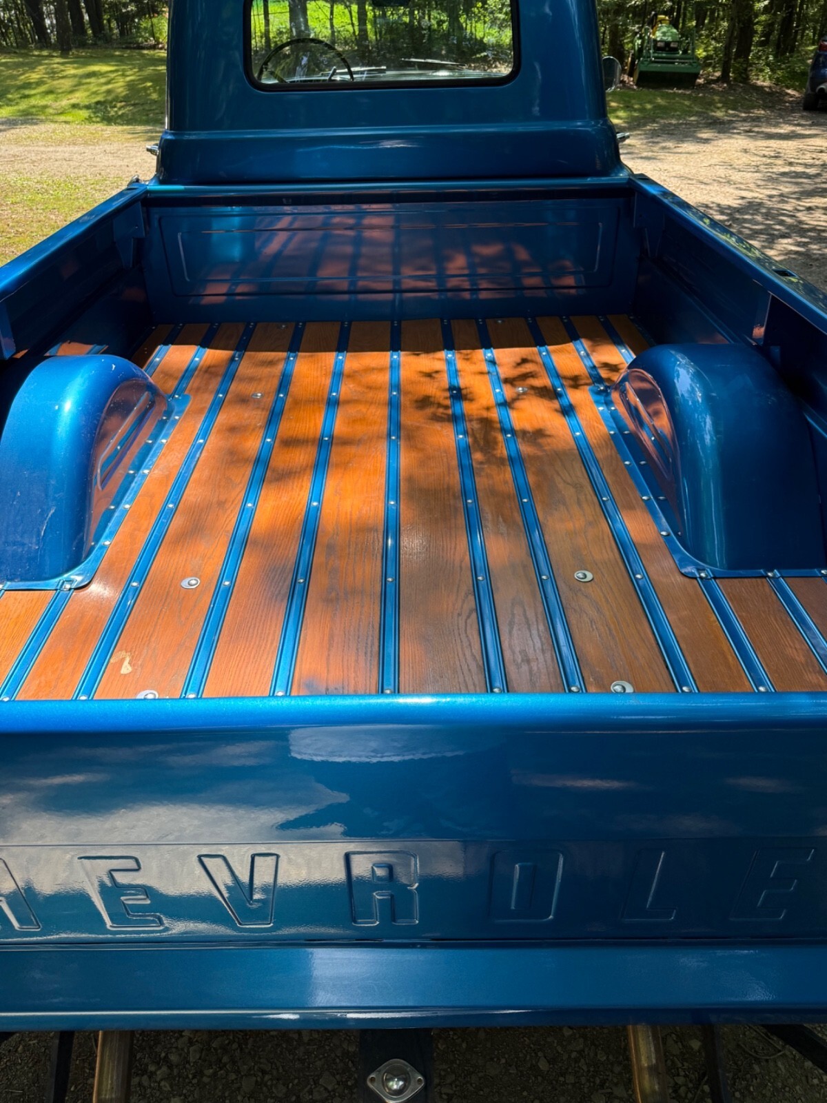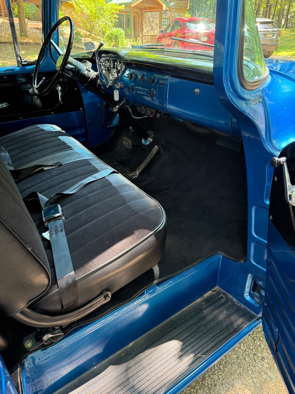 This truck is VERY solid and I have over $60,000 in brand new parts and labor invested including freshly rebuilt era correct 283 engine with Turbo Hydromatic 350 automatic transmission, power steering, power brakes, tilt steering column, Vintage Air heat, new exhaust, radiator with electric fan, all new wiring, fuse box, new electronic speedometer, battery. Less than 300 miles since all of the upgrades. There is only one area of rust and it is on the roof as shown.