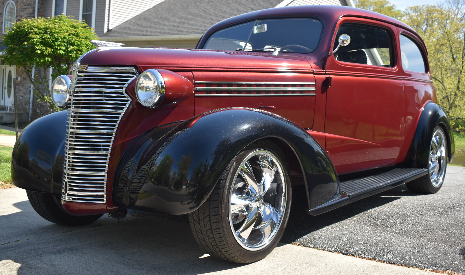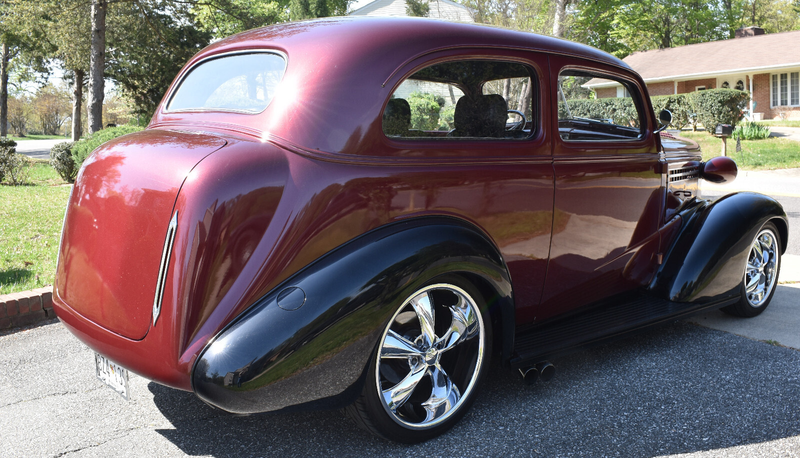 OVERALL: This is a great running and fun ’38 Chevy Street Rod that shows well and could easily manage a long trip or a cruise to the local drive-in. Doors close easily and poppers function with no issues.