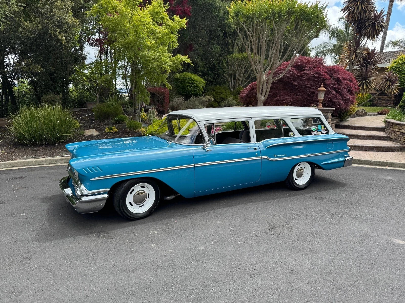 1958 CHEVY YEOMAN WAGON, 348 TRI POWER, 7OO OVERDRIVE,DISC BRAKES, FLOWMASTER MUFFLERS, ALSO POWER CUT OUTS. JUST TOOK IT ON A 500 MILE ROUND TRIP. REBUILT REAR END, ALL NEW FRONT SUSPENSION, NEWER TIRES,CUSTOM HEADERS.